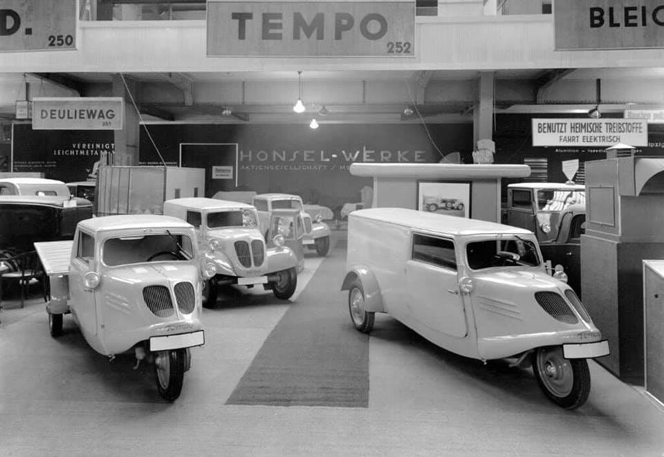 Le premier Tempo T1 a été créé en 1928 dans un magasin de charbon, un tricycle avec la zone de chargement devant le siège du conducteur, entraîné par un moteur JLO. Les premiers véhicules fabriqués en interne étaient les T6 et T10.
