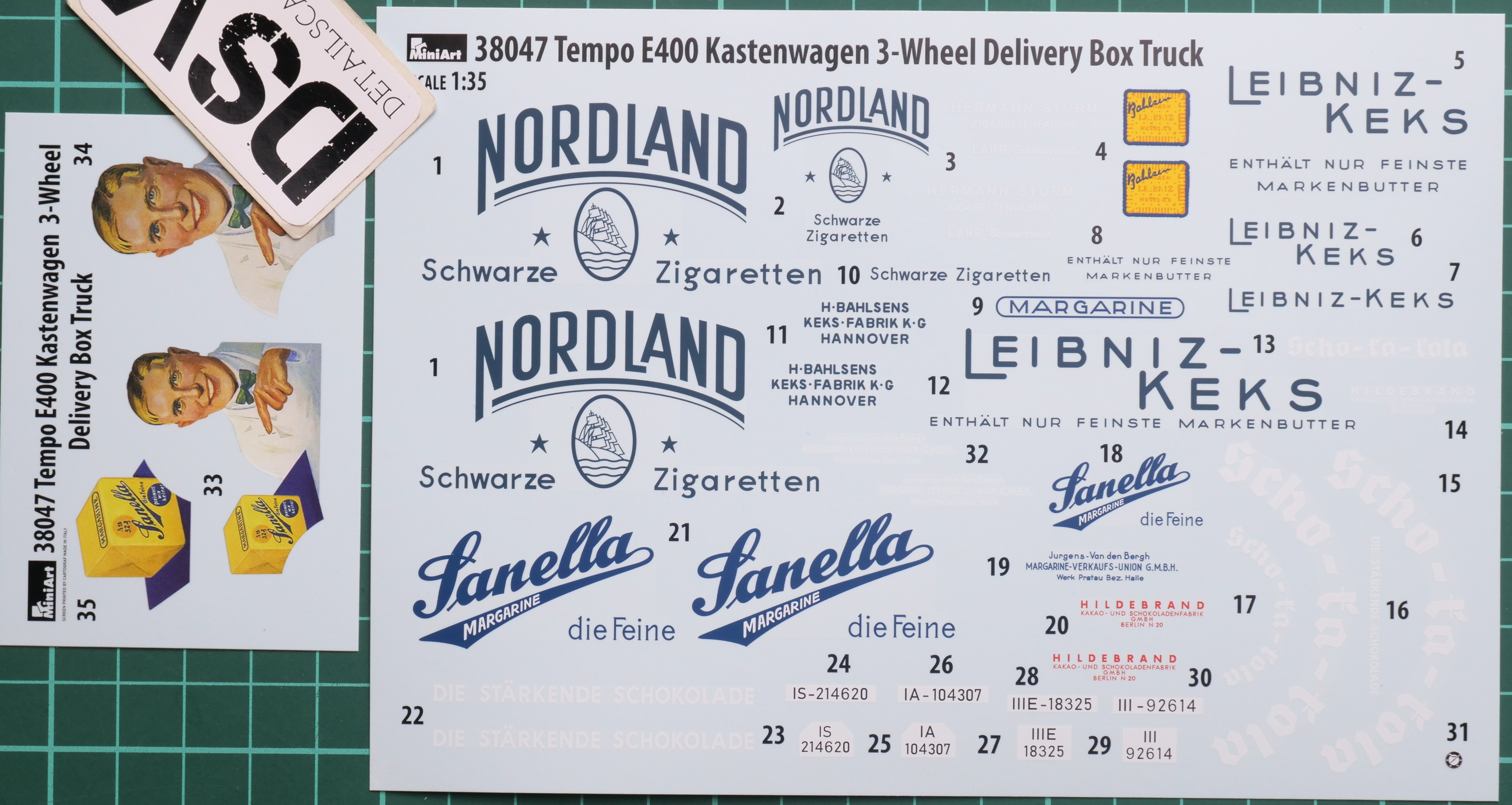Le kit comprend 2 feuilles de décalcomanies. Les 2 sont imprimées dans une belle qualité et disposent d’options intéressantes à reproduire. Bien-sûr, l’accent sera mis sur les écritures de boîtes de fret. Vous pouvez les voir sur la photo ci-dessous.