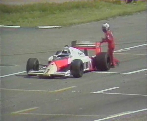 Heureusement que les 2 McLaren ont pris le départ de la course à Kyalami. Cela était dû à un accident massif du matin de course qui a détruit l’Osella-Alfa Romeo de Piercarlo Ghinzani et a brûlé les mains et le visage du pilote italien, le forçant à manquer la course. En conséquence, McLaren a eu environ 30 minutes de temps supplémentaire pour réparer un raté qui s’était développé dans le TAG-Porsche de Lauda et qui nécessitait un remplacement complet du système électrique. Si Ghinzani n’avait pas chuté, Lauda aurait été contraint de partir dans la voiture de secours, ce qui aurait laissé Prost sans démarreur car sa propre MP4/2 a subi une panne mécanique de pompe à carburant alors que la grille s’éloignait lors de leur dernier tour de chauffe. Prost a pu partir dans la réserve depuis la voie des stands (converti à la hâte à ses réglages comme c’était celui de Lauda pour le week-end) et a effectué l’un de ses pilotes de marque pour être le seul autre pilote à terminer le tour de tête avec son coéquipier, bien qu’il ait commencé son dernier tour quelques secondes seulement avant que Lauda ne prenne le drapeau.
