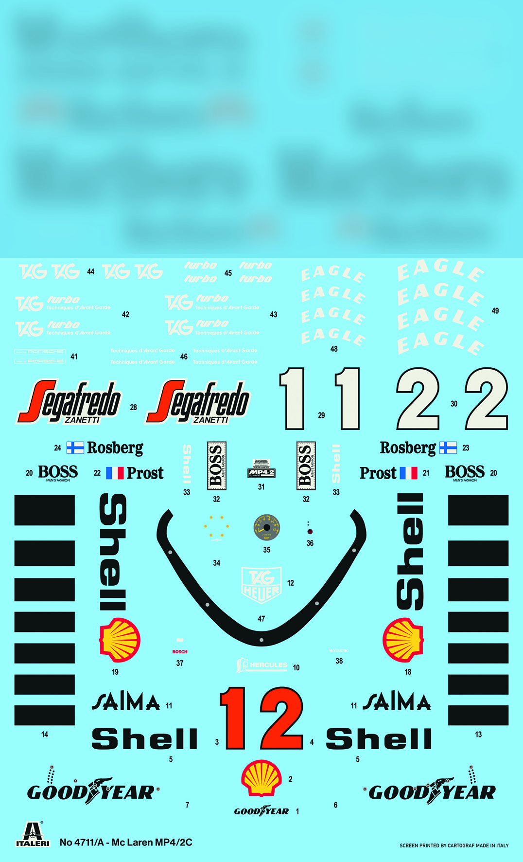 Le site Web Italeri : « Chers amis maquettistes, nous avons le plaisir de vous présenter en avant-première les premières images de notre nouveau kit à l’échelle 1/12 dédié à une voiture qui a marqué l’histoire de la Formule 1 : la légendaire McLaren MP4/2C.