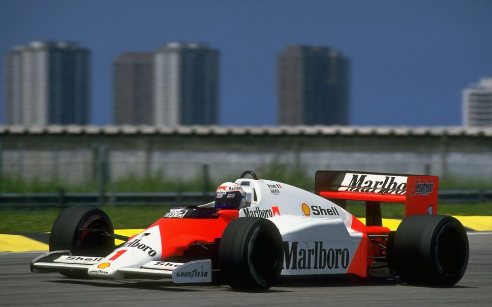 En 1986, la Williams FW11 avait dépassé McLaren en tant que meilleure voiture ; notamment, le kilométrage de la MP4/2 n’était pas aussi bon qu’en 1984, le réservoir de carburant étant passé de 220 litres à 195 litres (la consommation de carburant du TAG a été affectée par l’augmentation des vitesses). Nelson Piquet avait quitté Brabham pour rejoindre Nigel Mansell chez Williams et les 2 se livraient une bataille interne féroce, tandis que Prost construisait intelligemment son total de points et arrachait 4 victoires sous le nez des coéquipiers de Williams. Son 2e championnat du monde a été remporté plus par la furtivité que par la vitesse, car il était désormais clair que le moteur TAG Porsche avait dépassé son meilleur niveau. Le moteur V6 TAG-Porsche produisait environ 850ch (634kW, 862 PS) en version de course en 1986 contre 900ch (671kW, 912 PS) des moteurs Honda, Renault et BMW. En qualifications, BMW a été classé le plus puissant à 1'400ch (1'044kW, 1'419 PS), les moteurs Renault et Honda avaient environ 1'200ch (895kW, 1'217 PS). Ferrari aurait eu la même puissance que les Honda, mais leur Ferrari F1/86 n’était pas compétitive sur toutes les pistes, sauf les plus lisses, et n’était généralement pas une menace.