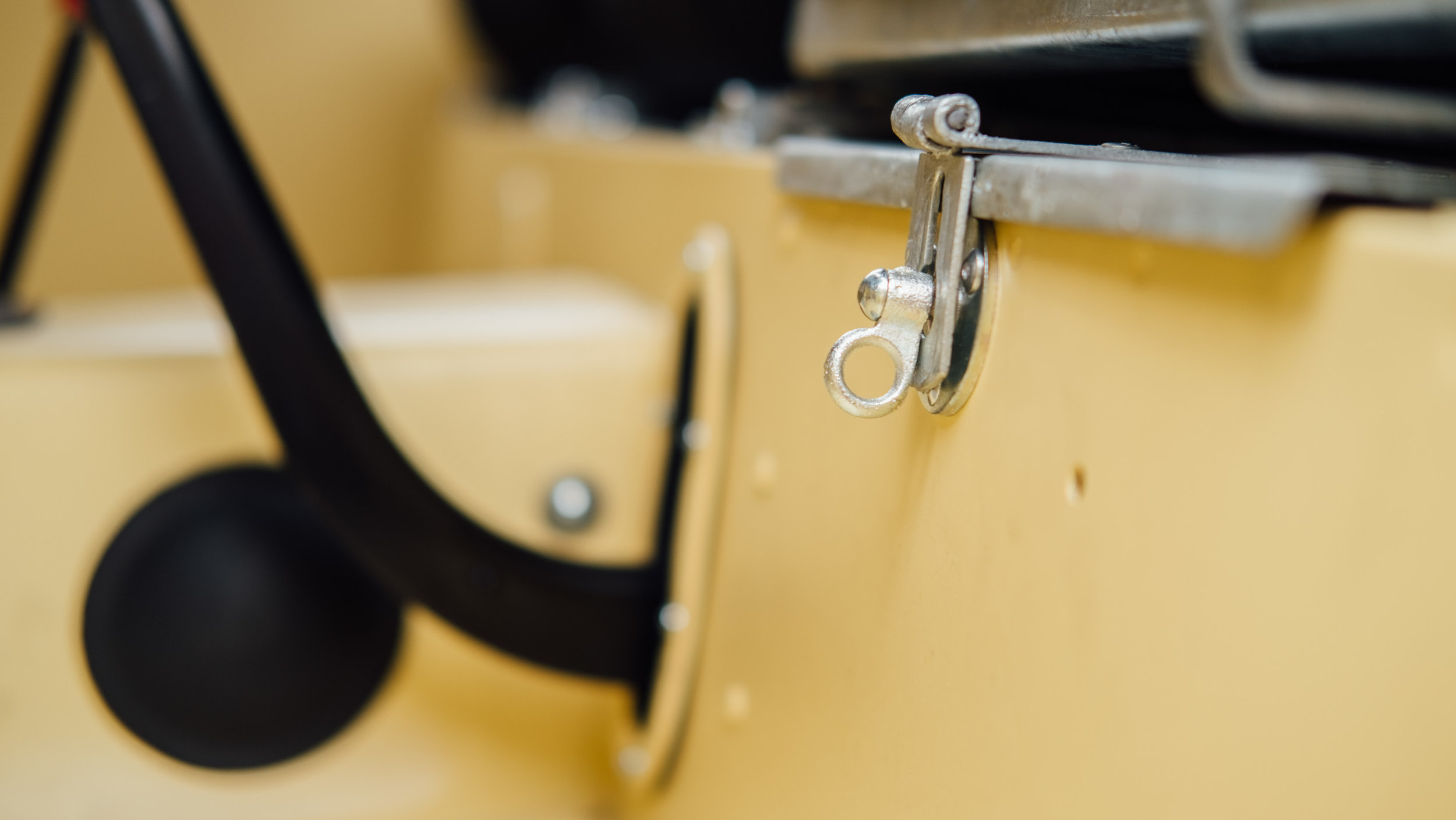 Extérieurement, le Stage One V8 est immédiatement reconnaissable à sa calandre avancée en grille métallique et à son capot long, celui-là même qui équipera les 90/110 quelques années plus tard.
