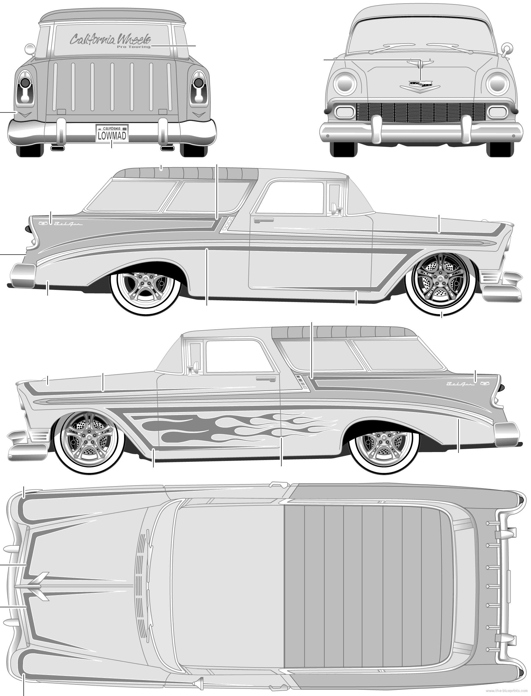 Les Chevrolet ont reçu un lifting. Cela a donné aux Chevrolet une calandre pleine largeur plus conventionnelle, satisfaisant les clients qui n'aimaient pas l'avant de 1955. Les Nomad portaient désormais la même tôle intérieure et arrière que les autres Bel Air, sans la garniture unique de l'original. Un tableau de bord rembourré était désormais disponible. Pour 1956, Chevrolet a caché le bouchon d'essence derrière un feu arrière rabattable sur le côté gauche.
