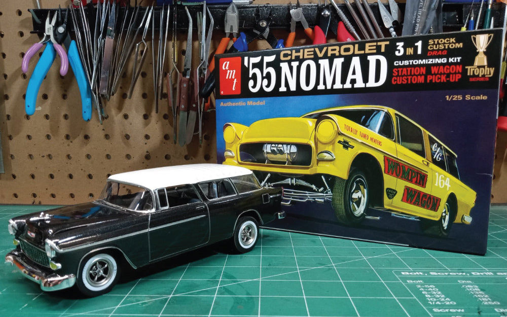 UN JOYAU CLASSIQUE : La Chevrolet Nomad 1955 à l’échelle 1/25 d’AMT est le projet de personnalisation 3-en-1 parfait pour les maquettistes sérieux qui recherchent une construction nostalgique. Ajoutez-le à votre collection dès aujourd’hui !
