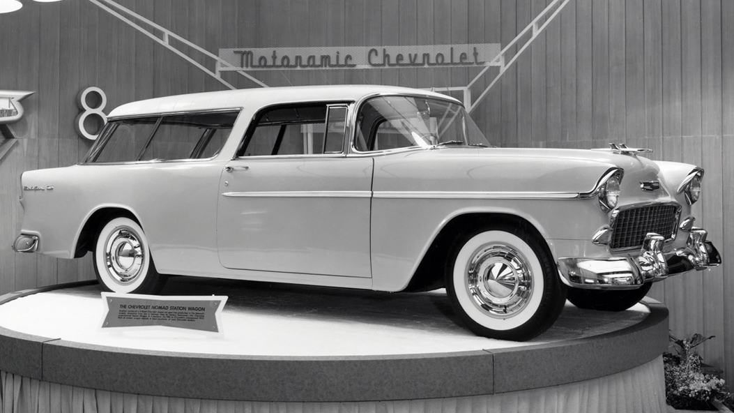 Lorsque le projet Nomad a été déposé chez General Motors, il portait le nom de Corvette Nomad. En effet, des ingénieurs avaient déposé un toit de break sur une Corvette. L'idée a été tellement bien accueillie par le public que le concept a été mis en production. Le modèle a fait ses débuts en 1955. Les 2 portes n'aidaient pas beaucoup pour l'accessibilité. Le nom Nomad (« nomade ») n'était utilisé que sur les Chevrolet Bel Air. Sur les séries 210 (moyen de gamme) et 150 (bas de gamme), on utilisait le nom « Handyman » (« bricoleur »). Tout l'arrière de la voiture, à l'exception de la porte, était vitré et toutes les fenêtres étaient coulissantes.