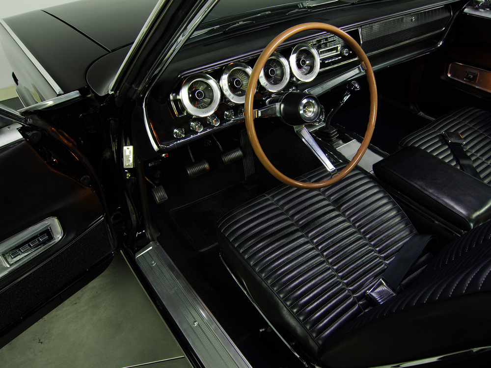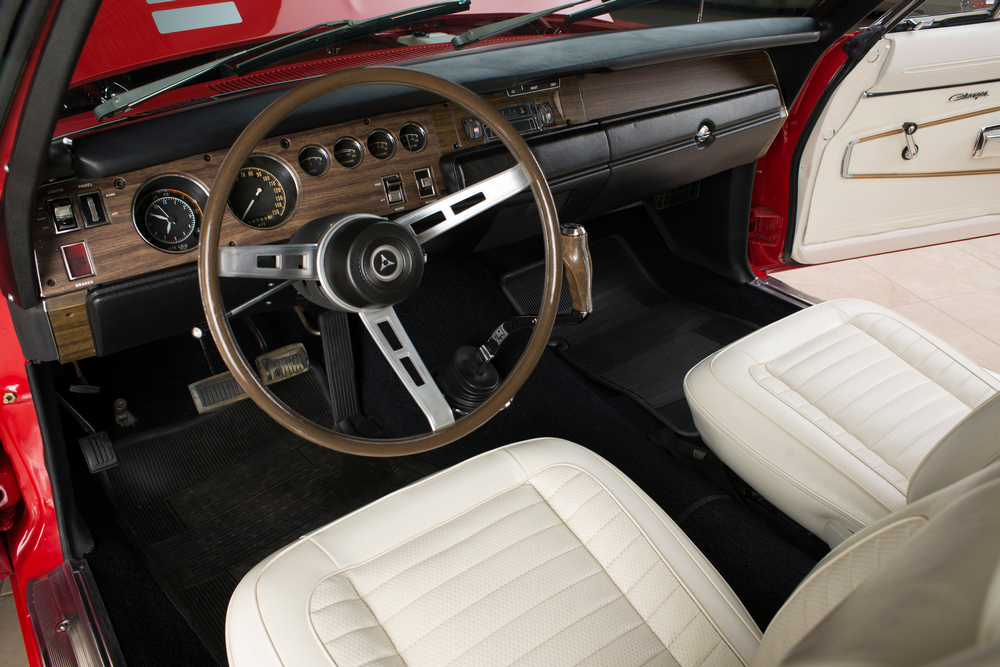 À l’intérieur, la Charger de série comportait un volant en bois, 4 sièges baquets individuels et une console intégrale de l’avant à l’arrière. Les sièges arrière et le rembourrage de l'accoudoir central arrière ont été rabattus vers l'avant, tandis que la séparation du coffre a été rabaissée, ce qui a permis un espace de chargement généreux. De nombreuses caractéristiques intérieures étaient exclusives à la Charger, notamment des panneaux de porte, des éclairages de courtoisie, ainsi que des garnitures haut de gamme et des revêtements en vinyle. Le tableau de bord n’a pas utilisé d’ampoules classiques pour allumer les jauges, mais un courant électroluminescent pour éclairer les 4 compteurs circulaires chromés, les aiguilles, la radio, l'indicateur de position du levier de vitesses dans la console, ainsi que les commandes d’horloge et de climatisation. Le tableau de bord logeait un compte-tour de 0 à 6'000 tr/mn, un compteur de vitesse de 0 à 240km/h, ainsi que l'alternateur, la jauge de carburant et les jauges de température en équipement de série.