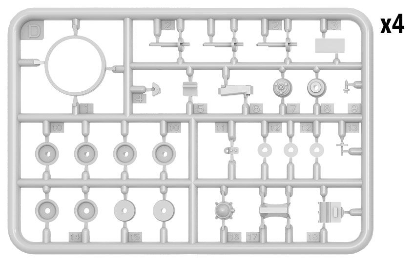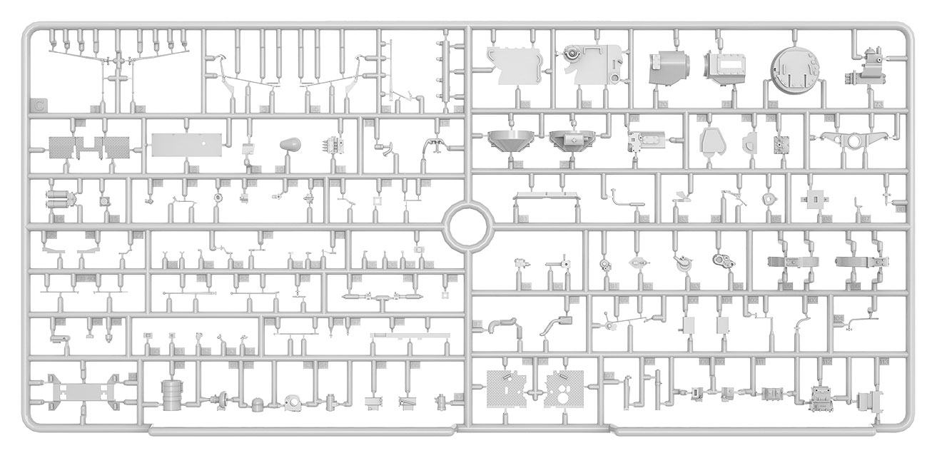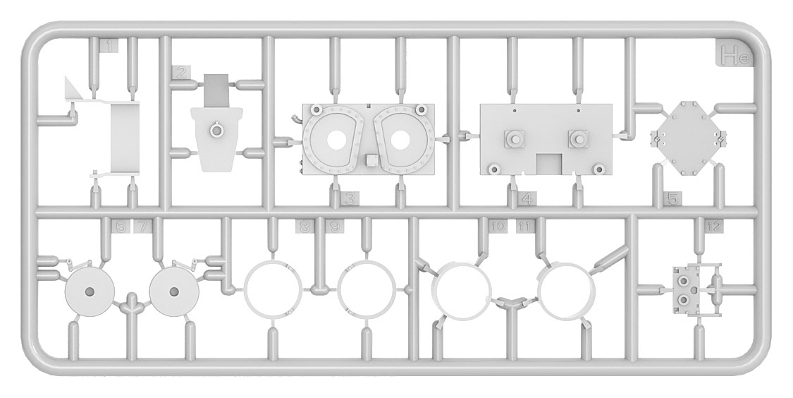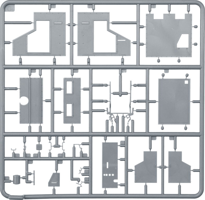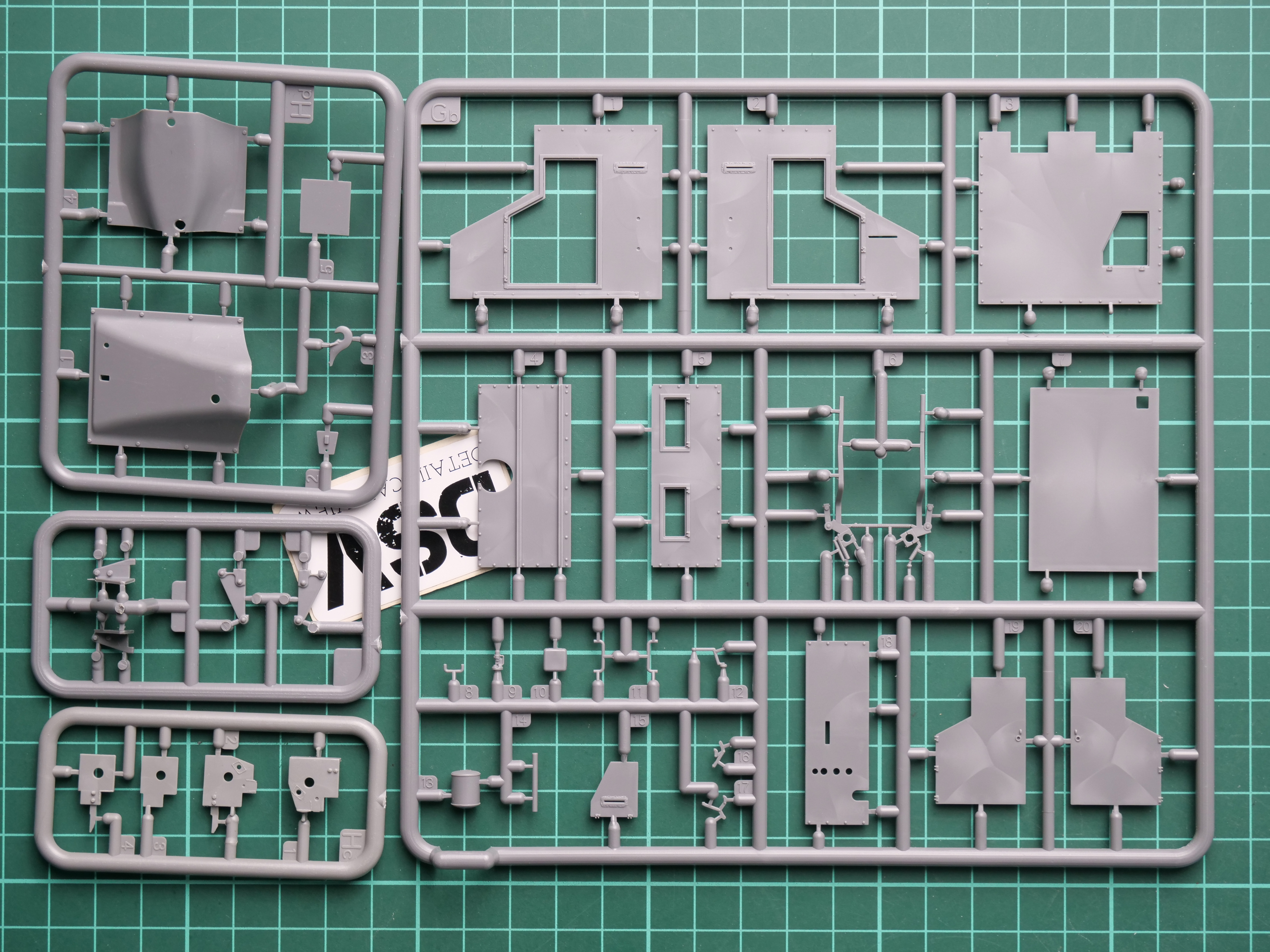 Les panneaux de blindage sont moulés sur la grappe séparée. Les portes sont séparées ici et peuvent être ouvertes sur votre modèle.