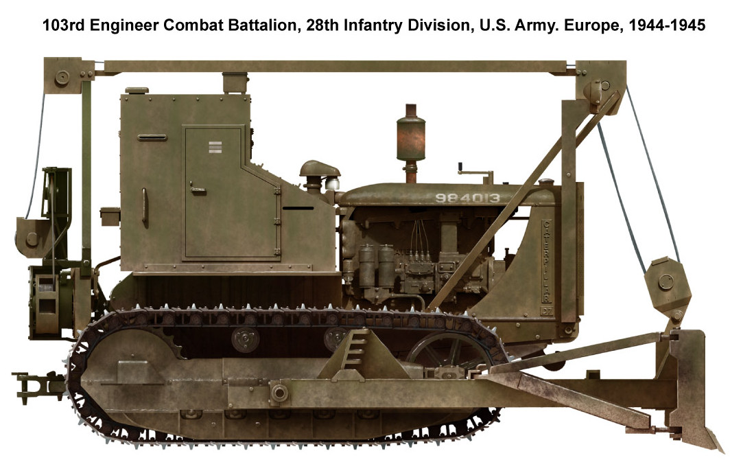 103e bataillon de combat du génie, 28e division d'infanterie, armée américaine. Europe, 1944-4945 :