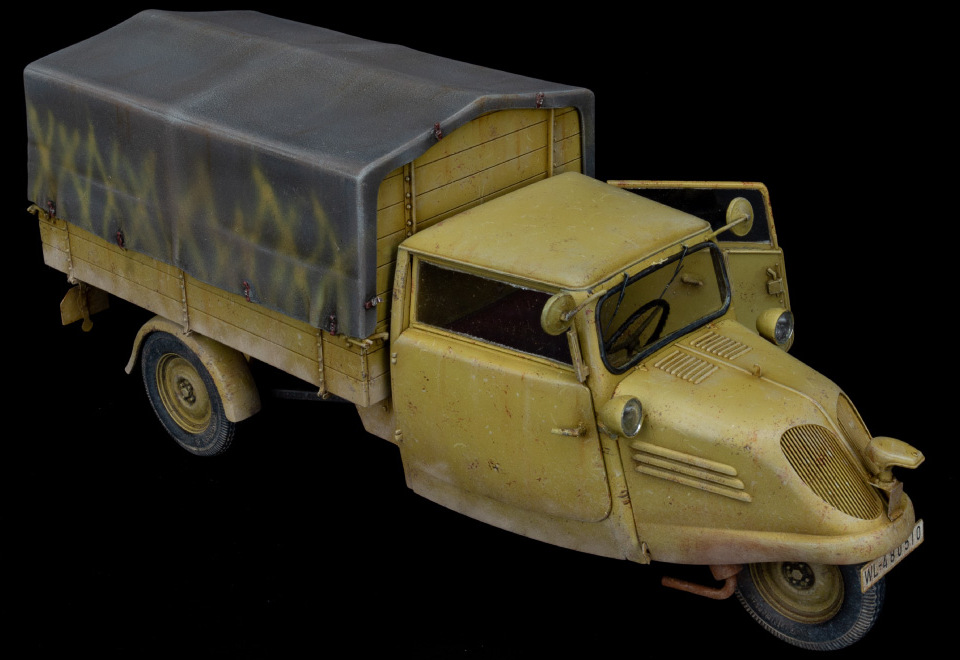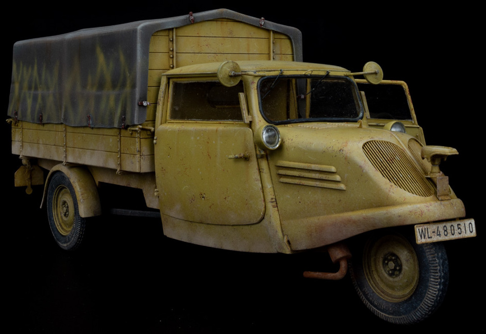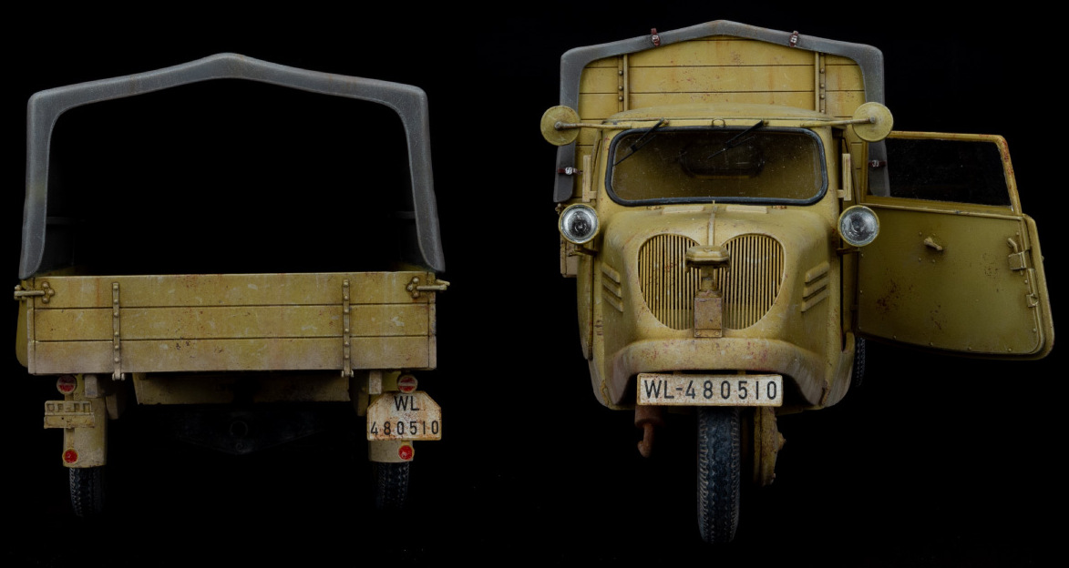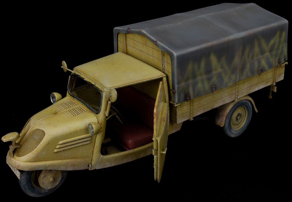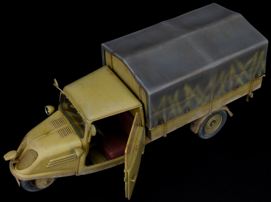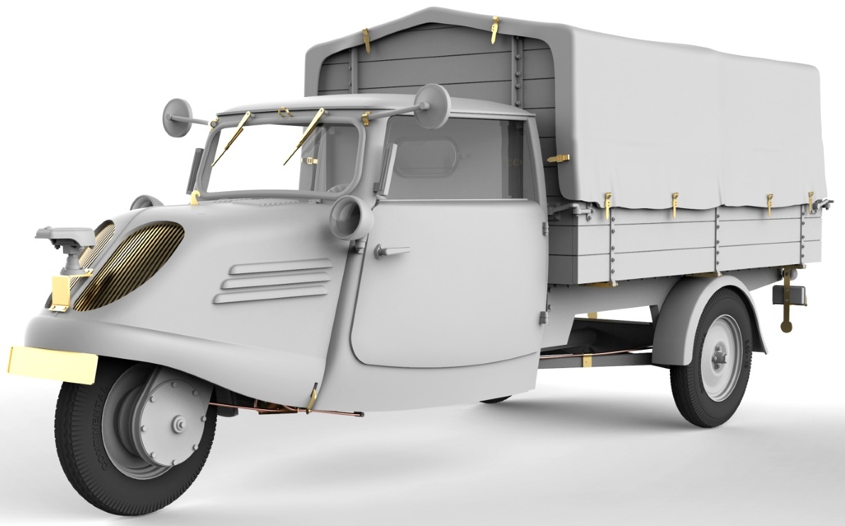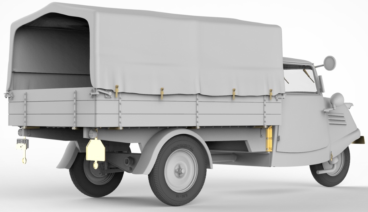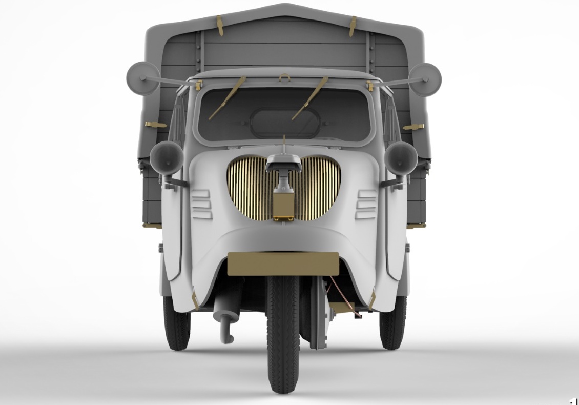 À partir de 1933, outre le tricycle, qui dispose désormais d'une cabine de conduite fermée devant la plate-forme de chargement, des berlines décapotables à 4 roues et des petites fourgonnettes de livraison avec caisses sont également fabriqués.