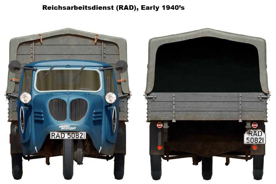 Pendant la Seconde Guerre mondiale, les fabricants ont été obligés par la dictature nazie de produire des armes et des accessoires ainsi que du matériel militaire pour la guerre. Seuls quelques-uns ont été autorisés à continuer à produire des véhicules civils. Le Standard E1 était le dernier tricycle cargo construit par Gutbrod. Le carrossier Rometsch fabriquait des cuisines de campagne, des véhicules militaires Borgward.