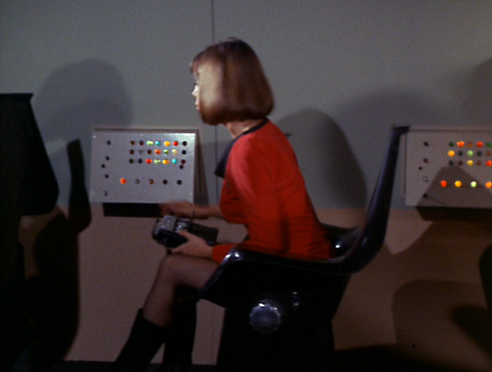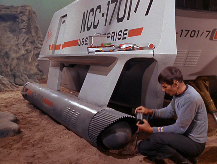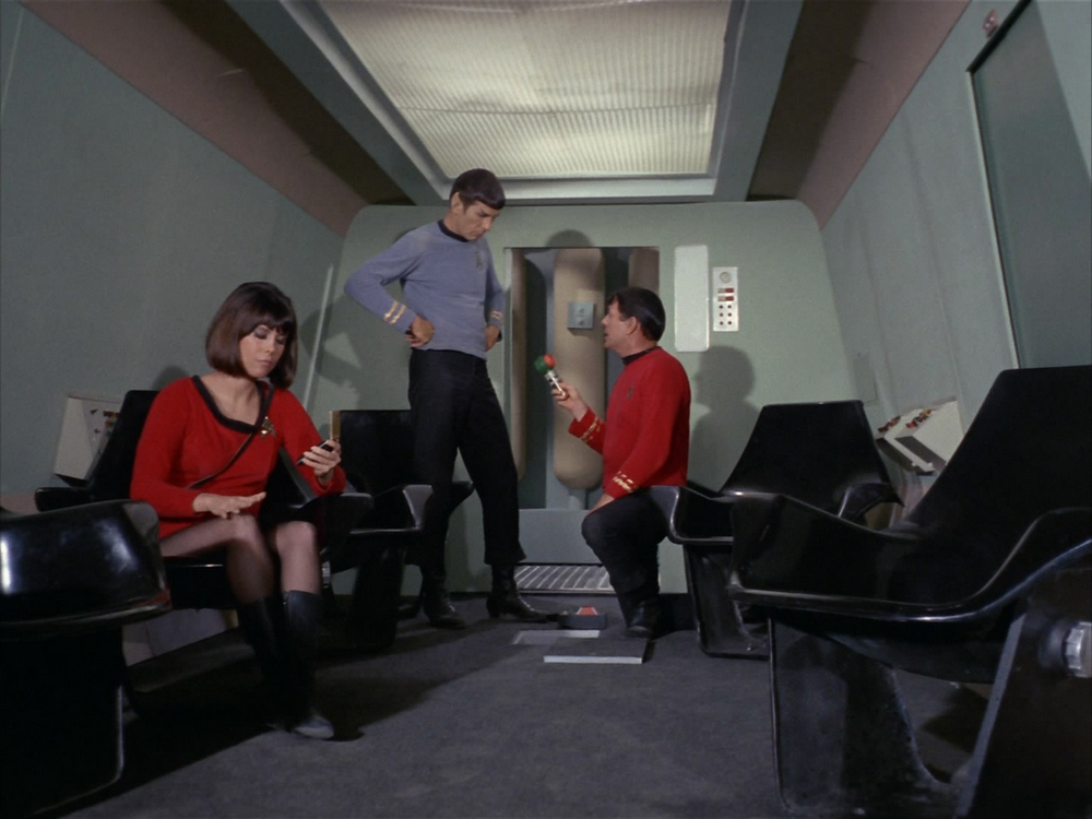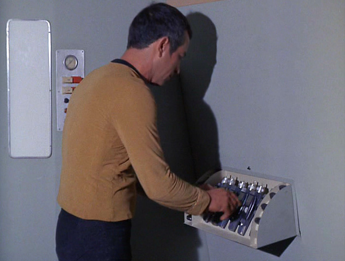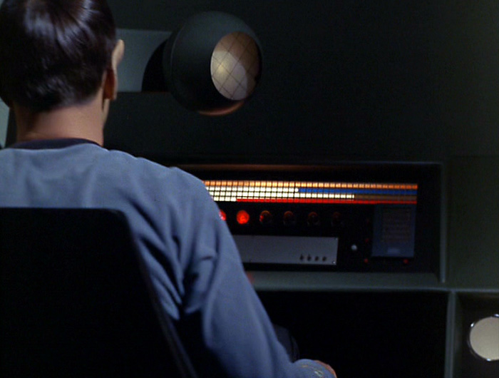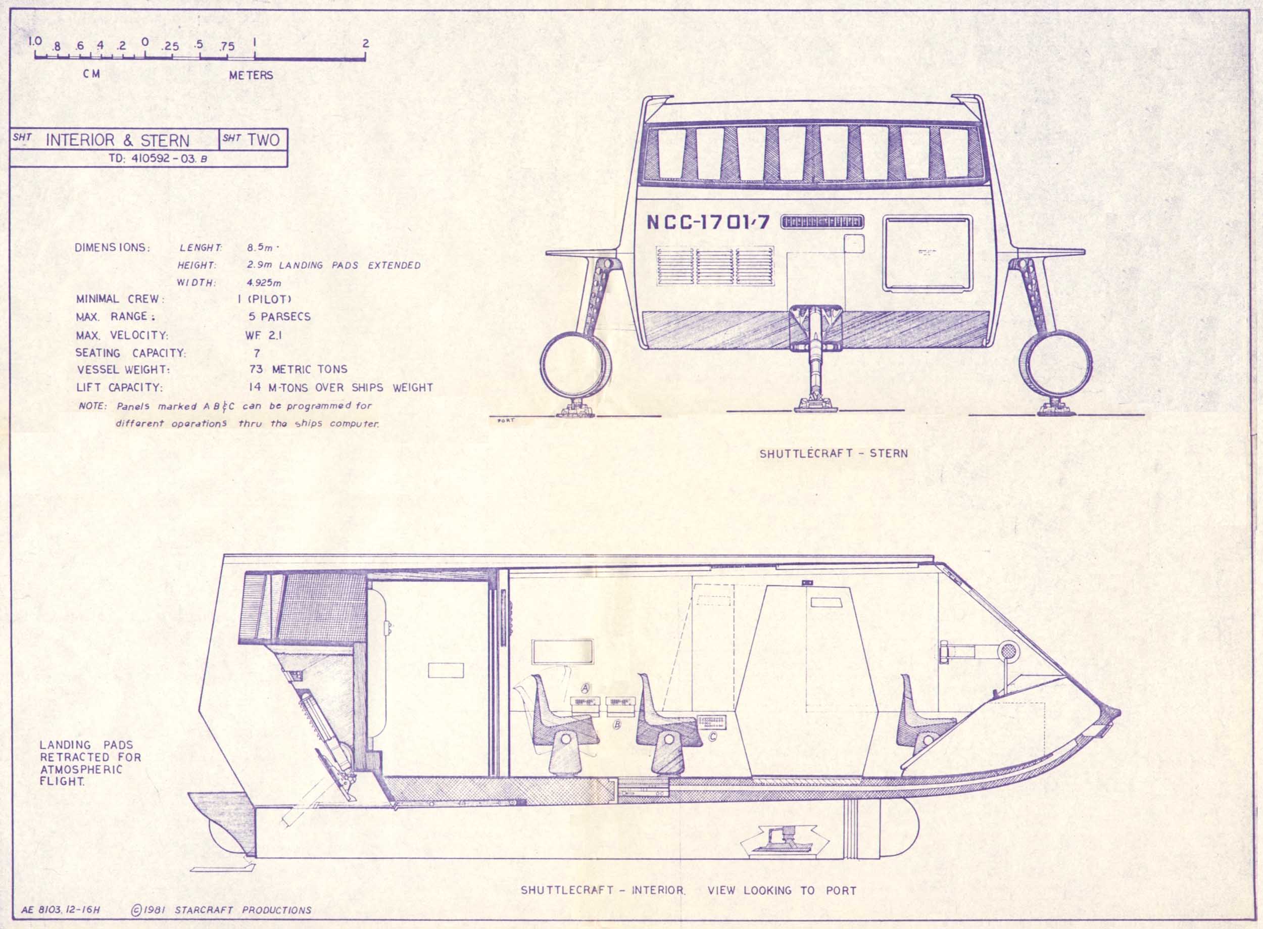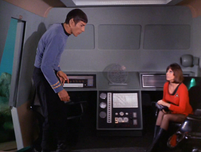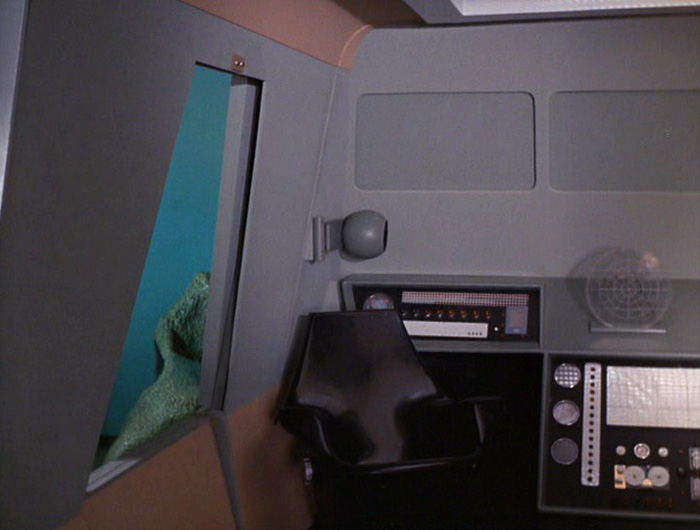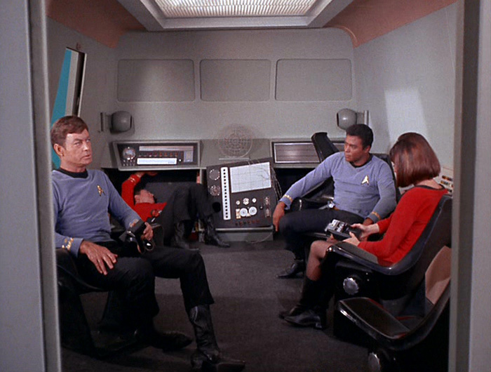 Dans l’une des histoires de Gene Coon, « Guerre, amour et compagnon » (s2e9, Metamorphosis), une description disait qu’il n’y avait pas de portes ou d’ouvertures en preuve, puis une fois que nous sommes entrés à l’intérieur, 4 ou 5 entrées et les gens ont continué à entrer dans la chose. Je suis allé voir Coon et je lui ai dit : « M. Coon, qu’est-ce que je vais faire ? » Il m’a dit : « C’est ton inquiétude ! » Jefferies a également conçu une console de contrôle, mais ne considérait pas cela comme un élément majeur. « Nous avons juste essayé de trouver quelque chose qui semblait raisonnable ; un certain instrument qu’ils devraient avoir, par rapport à ce qui pourrait être fait automatiquement sur l’Enterprise. À moins que vous n’ayez eu une histoire impliquant entièrement une navette, cela aurait été une chose si rapide et transitoire que cela aurait été un effort gaspillé ».