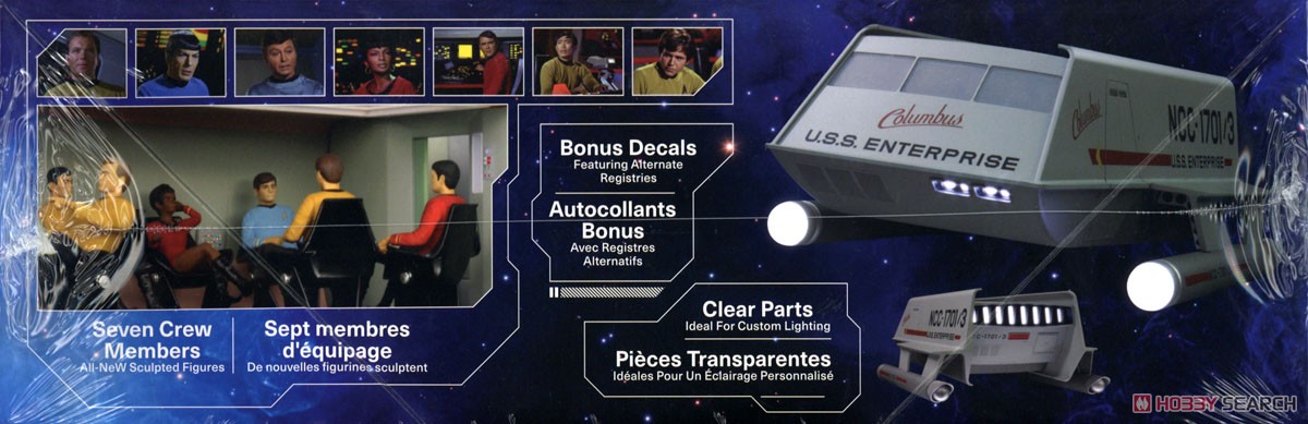 Ce kit présente les détails que les maquettistes exigeants attendent. Il présente des détails authentiques entièrement recherchés à l'intérieur et à l'extérieur. De la console de commande au compartiment arrière à l'intérieur, des phares avant aux moteurs à impulsion à l'extérieur. Ce kit offre tout !