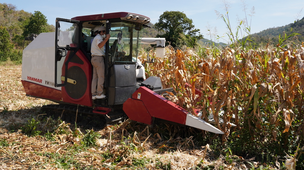 La récolte du riz a été effectuée par la moissonneuse-batteuse YH1180 équipée de la fonctionnalité avancée de SmartAssist-Remote (SA-R) pour la gestion de la ferme et d’un volant de type rond. La moissonneuse-batteuse est équipée du mode linéaire pour une direction automatique en ligne droite qui permet également une maniabilité libre du volant. Il s’agit d’une nouvelle technologie Yanmar qui permet à l’opérateur de contrôler plus facilement la moissonneuse-batteuse, de se concentrer sur l’utilisation de l’équipement de travail autre que les déplacements. La moissonneuse-batteuse est également équipée d’un capteur de rendement de la trémie à grains pour estimer avec précision les rendements de la récolte. Le système SmartAssist-Remote mis en œuvre sur le YH1180 prend en charge la gestion de l’exploitation avec des fonctionnalités avancées qui contribuent à la productivité agricole de la Thaïlande.