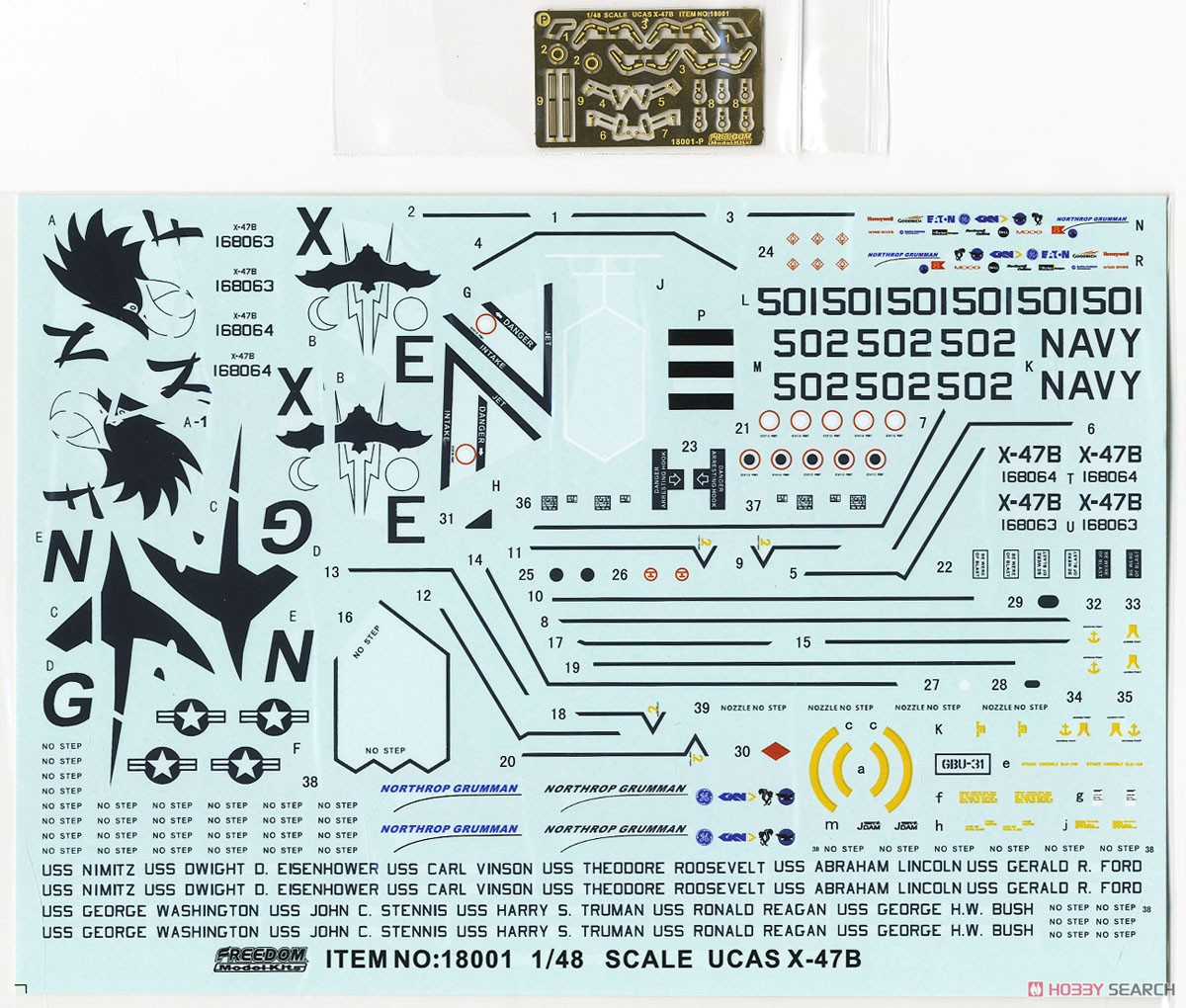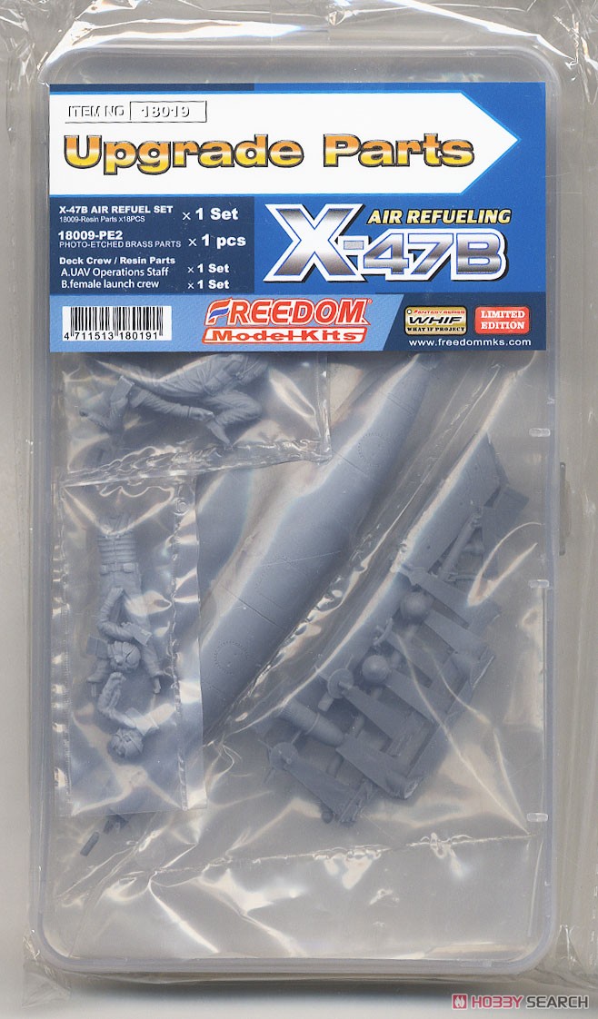 Ce kit en édition limitée est livré avec 2 figurines en résine et représente le X-47B s'il avait été rénové en tant qu'avion de ravitaillement en vol. La soute du train d'atterrissage et la soute à armes peuvent être sélectionnées ouvertes ou fermées ; des décalcomanies pour plusieurs marquages sont inclus, tout comme les pièces photodécoupées.