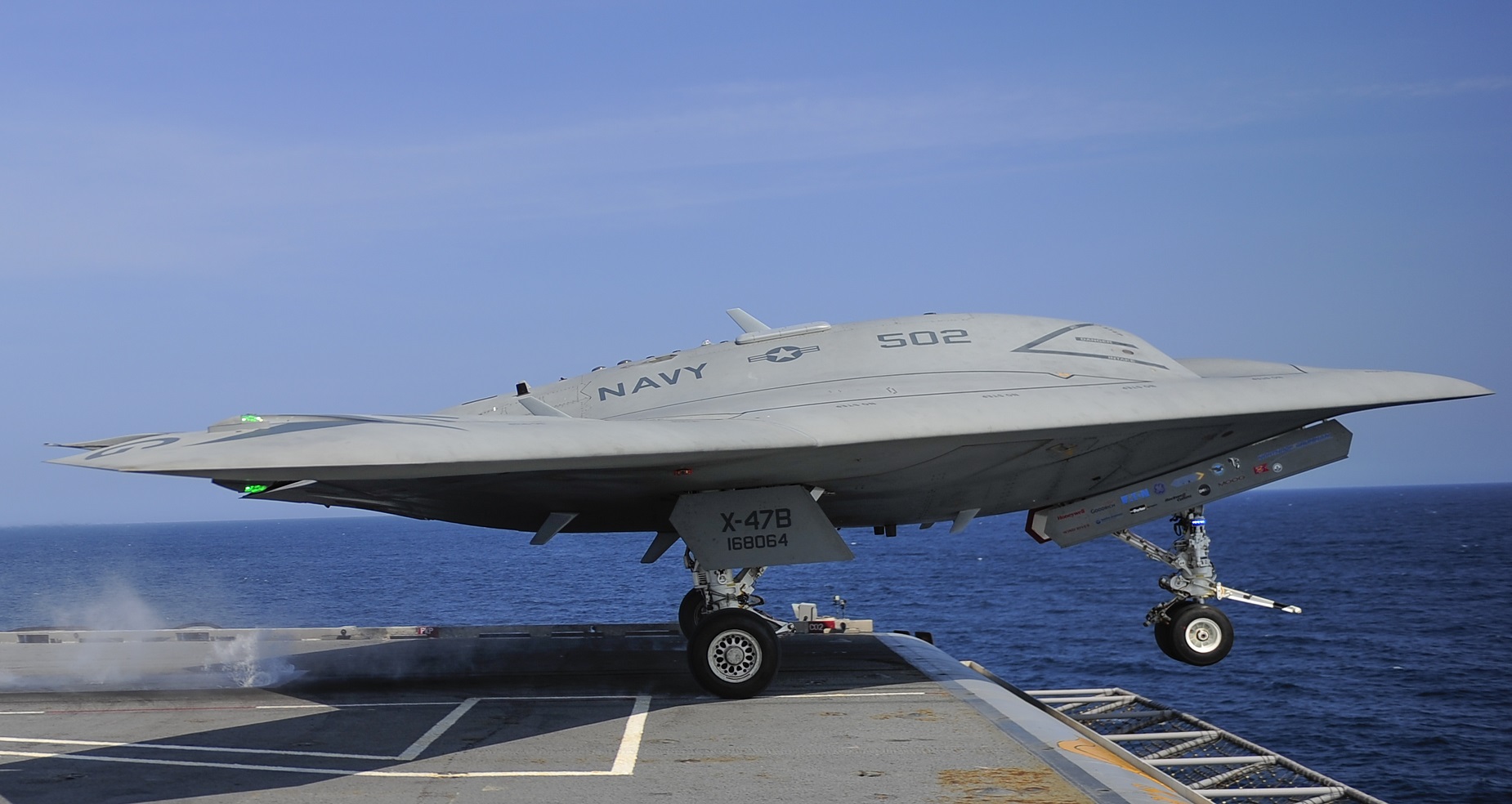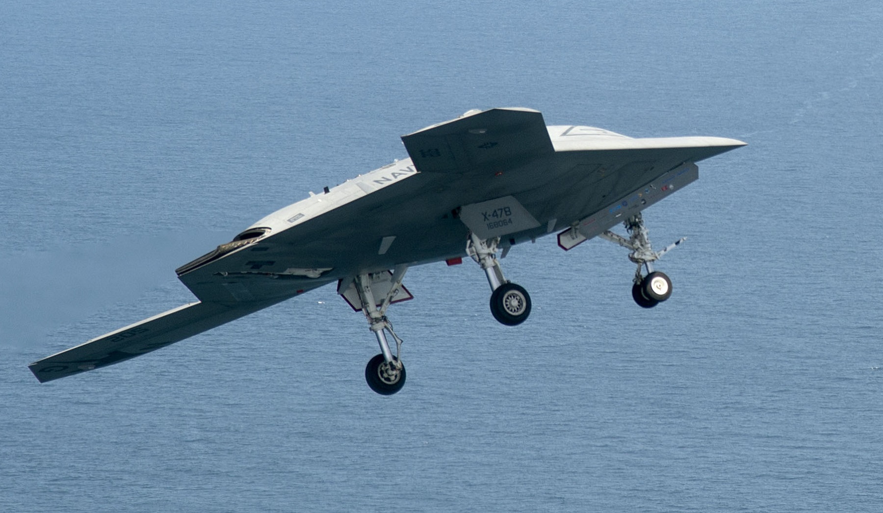 Le 10 juillet 2013, le X-47B a décollé de Patuxent River et a atterri sur le pont du George H.W. Bush, effectuant le tout premier atterrissage arrêté d'un drone sur un porte-avions en mer. Il a ensuite effectué avec succès un 2e atterrissage arrêté sur le George H.W. Bush, mais une 3e tentative a été détournée vers le centre de vol de Wallops en Virginie en raison d'un problème technique. L'un des 3 sous-systèmes de navigation du drone est tombé en panne, ce qui a été identifié par les 2 autres sous-systèmes et signalé à l'opérateur, qui a suivi les procédures pour interrompre l'atterrissage. La Marine a déclaré que la détection du problème démontrait la fiabilité et la capacité du X-47B à fonctionner de manière autonome.