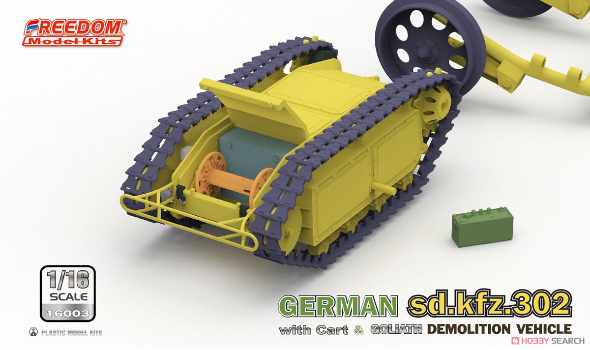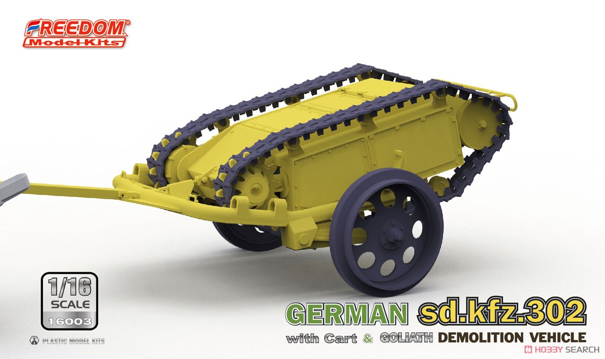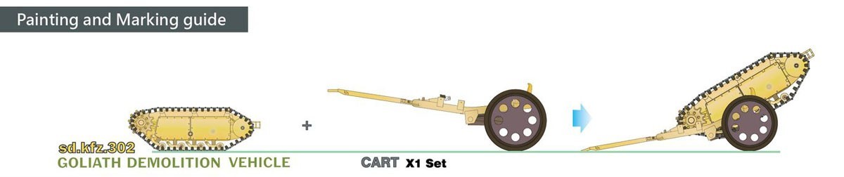Ce nouveau kit de maquette du véhicule de démolition Sd.Kfz.302 Goliath équipé d’un chariot de Freedom Model Kits est le complément parfait à votre collection.