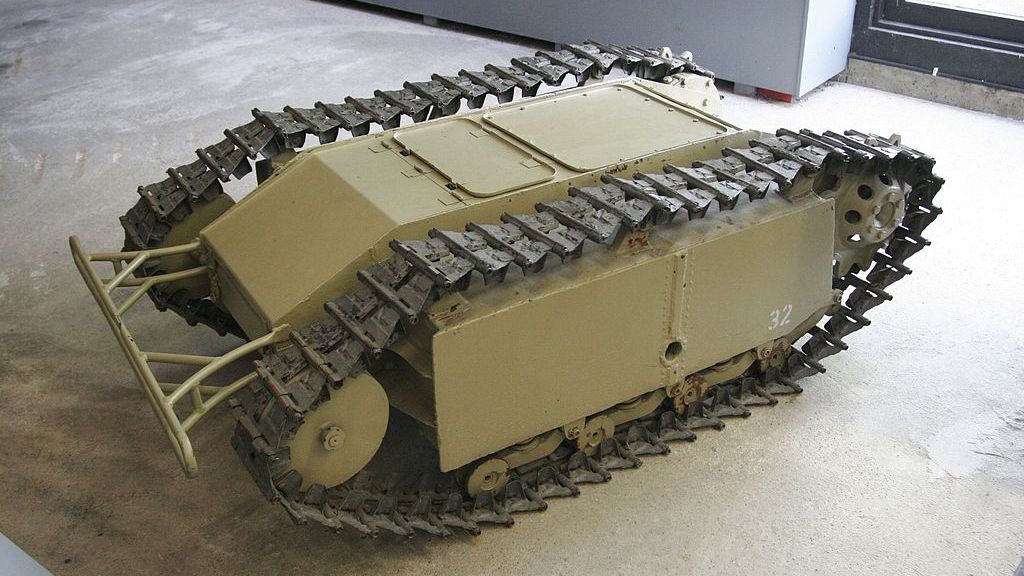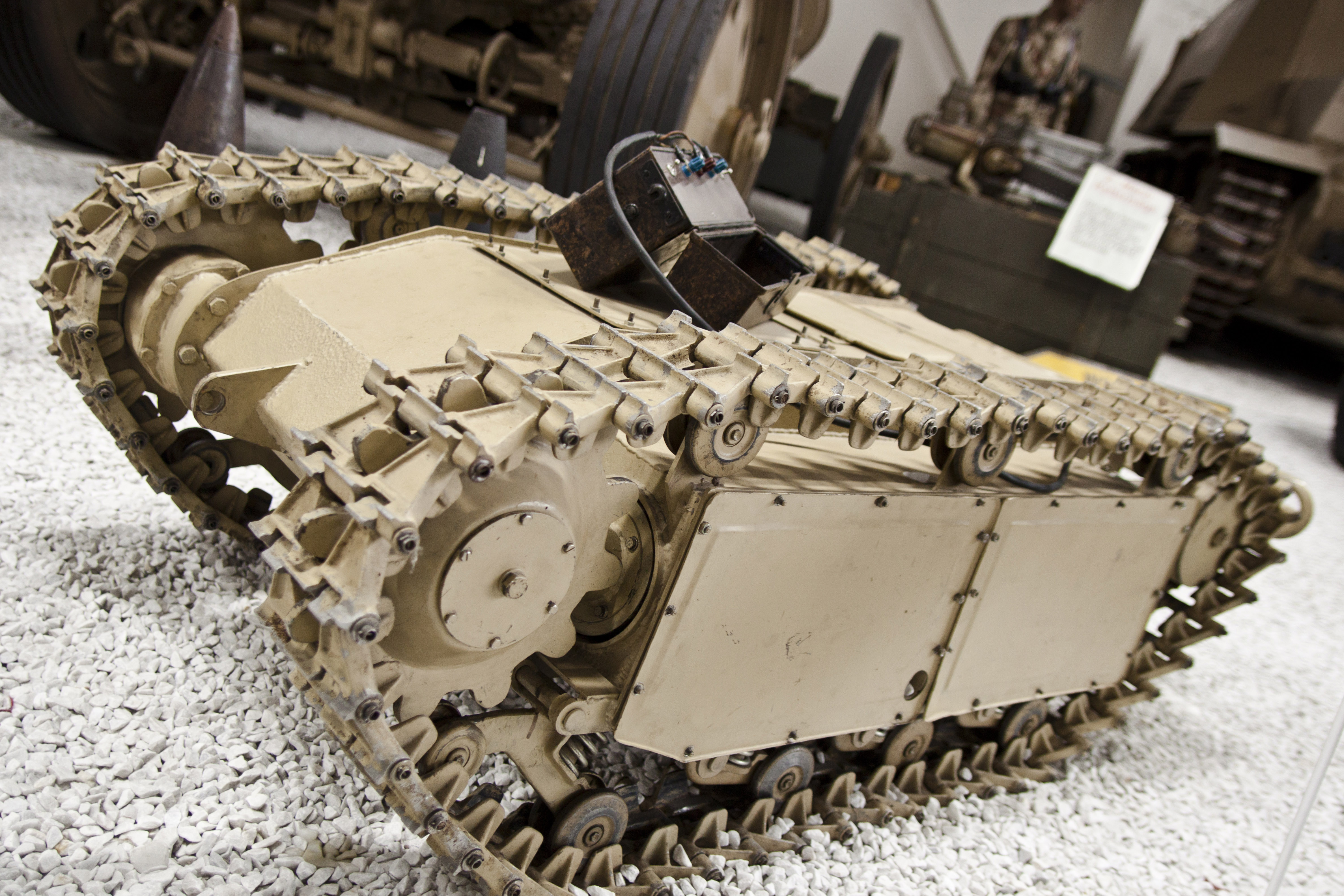 Le Goliath est un transporteur d'explosifs légers doté d'un explosif intégré pouvant atteindre 100 kg utilisé par la Wehrmacht et qui est contrôlé à distance par fil pour courir et s'autodétruire sur une piste sans fin.