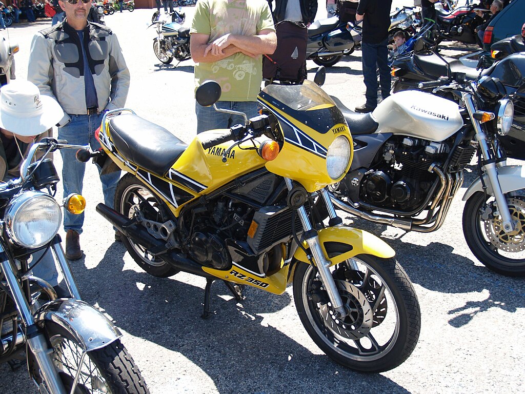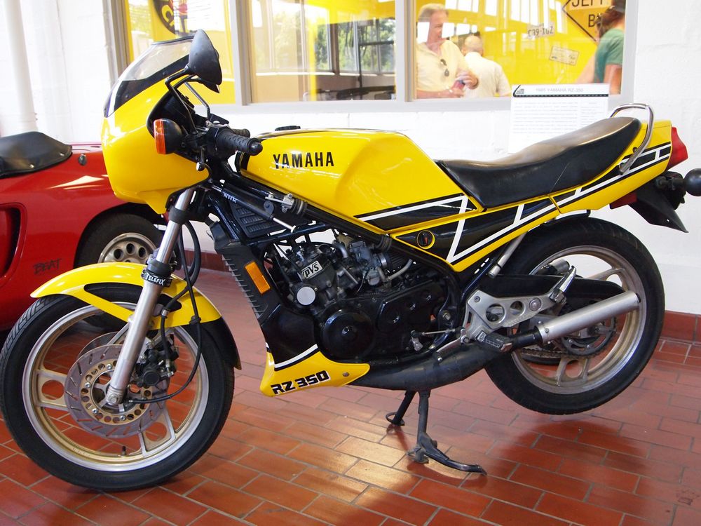 Il y a eu plusieurs modèles, la RZ350F de 1985, la RZ350F2, la N, NF de 1986-1992 et la RZ350RR de 1992-1995 qui a été produite au Brésil. L’image de droite est un modèle avec une « chambre d’expansion » de rechange qui était un système d’échappement à haut débit et haute performance, dépourvu de convertisseur catalytique et d’autres éléments de contrôle de la pollution des gaz d’échappement.