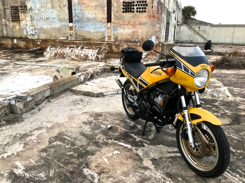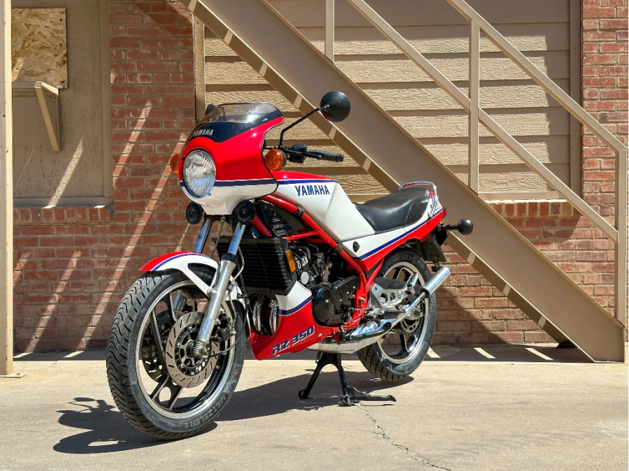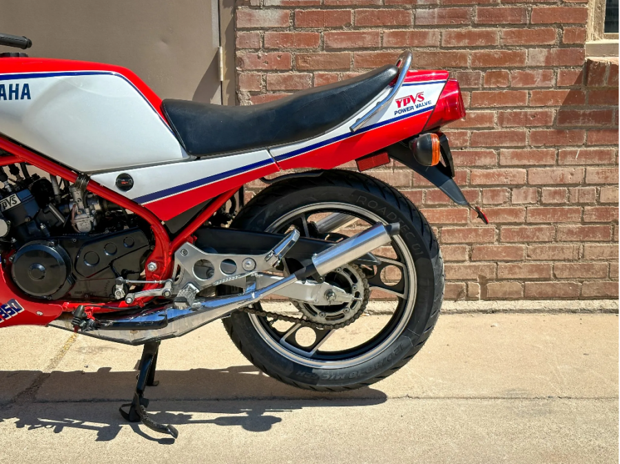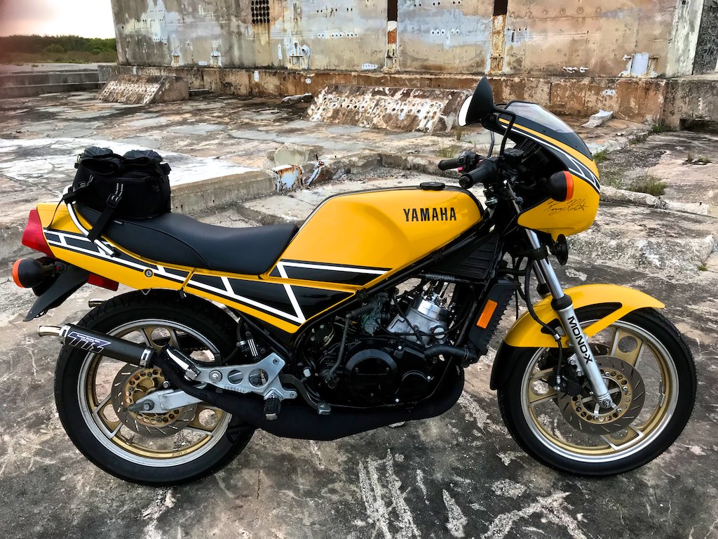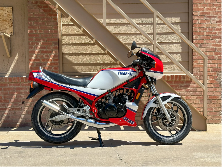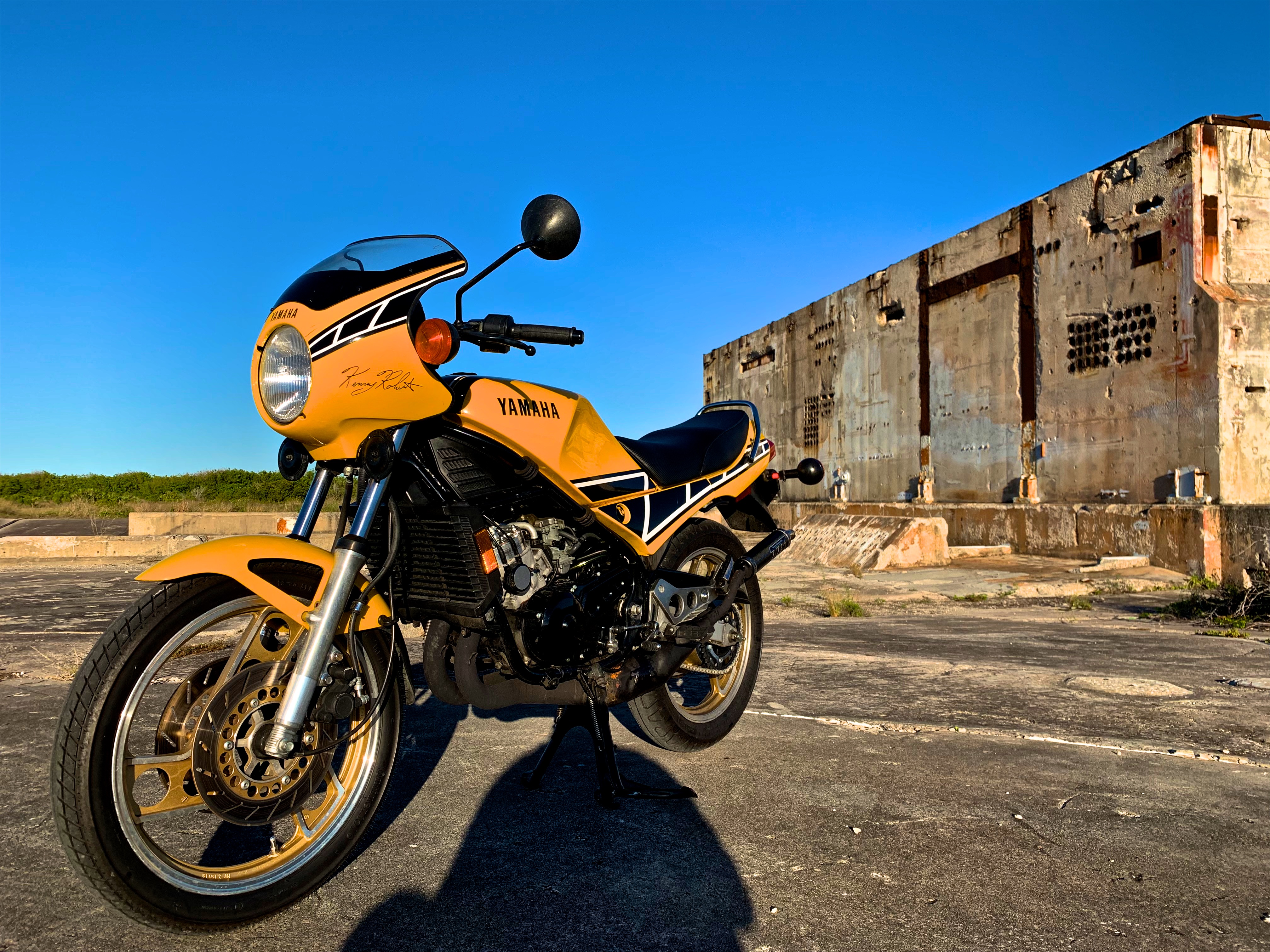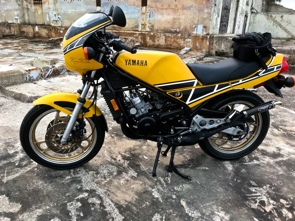 La RZ avait un compagnon d’écurie de 500cm³ appelé RZ500. Il est venu dans une palette de couleurs rouge sur blanc. Il s’agissait d’un V4 à double manivelle (un peu comme les motos GP de l’époque) et c’était une moto assez différente. Certains distributeurs et concessionnaires ont vendu ces motos avec des travaux de peinture personnalisés, ce qui a semé la confusion sur les schémas de peinture des équipementiers.
