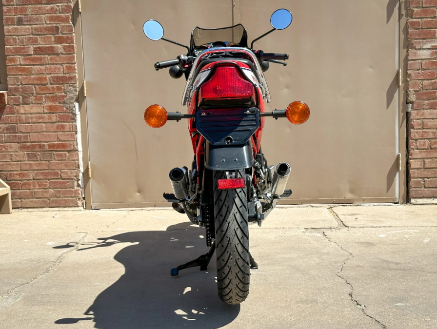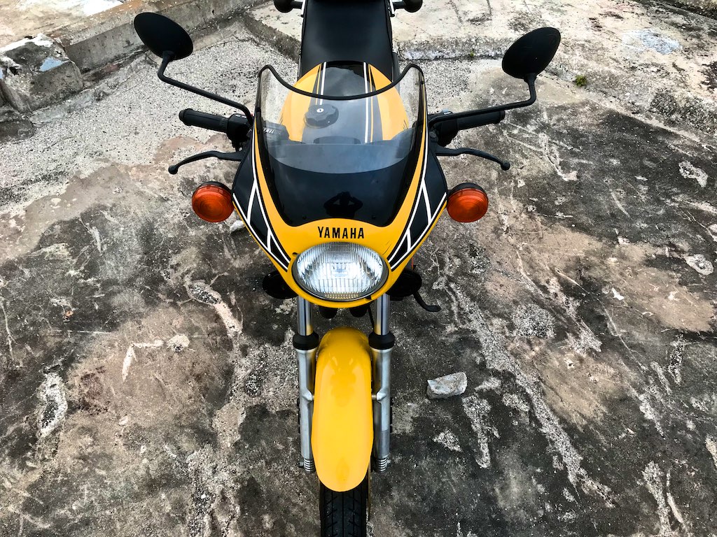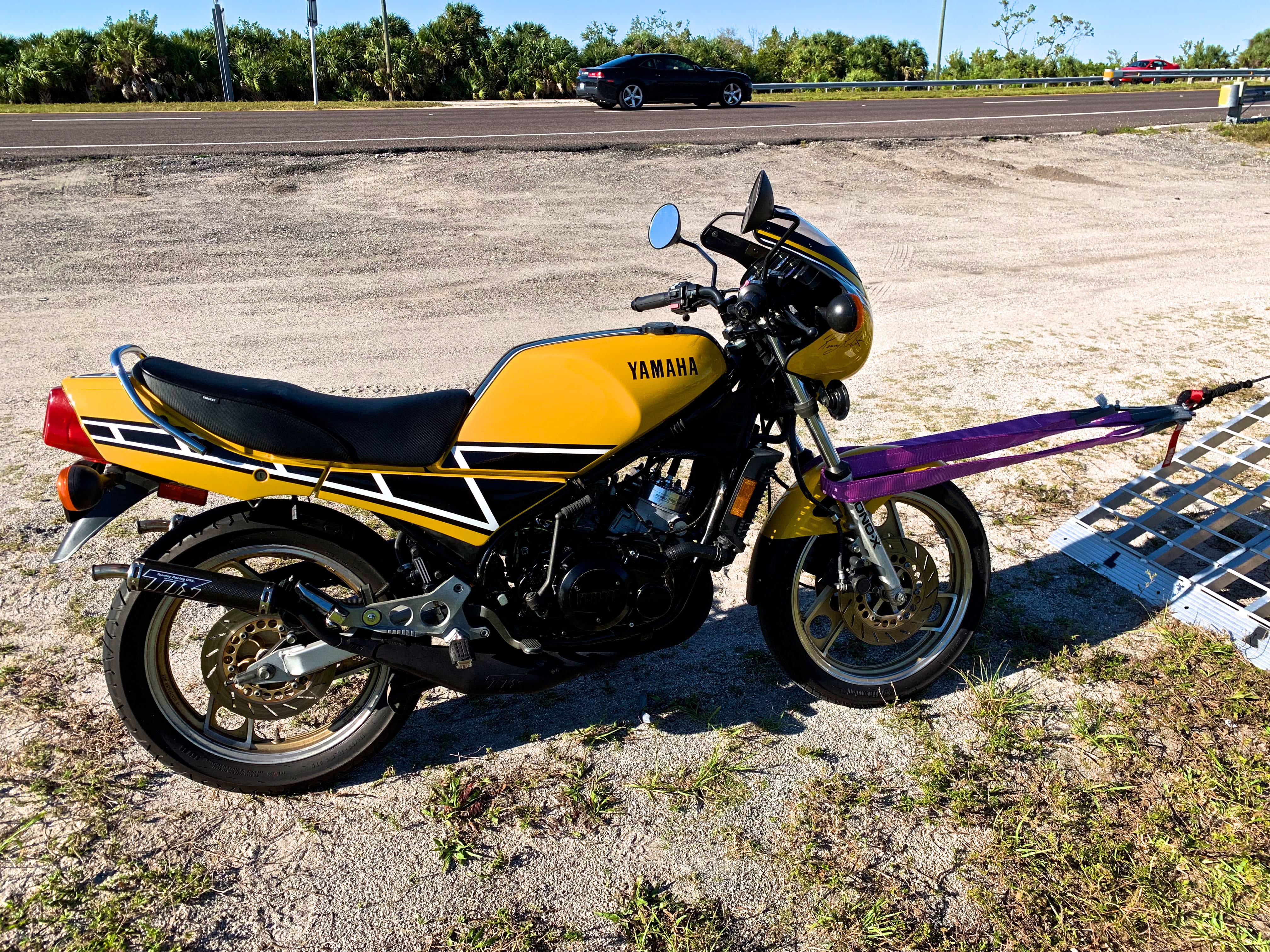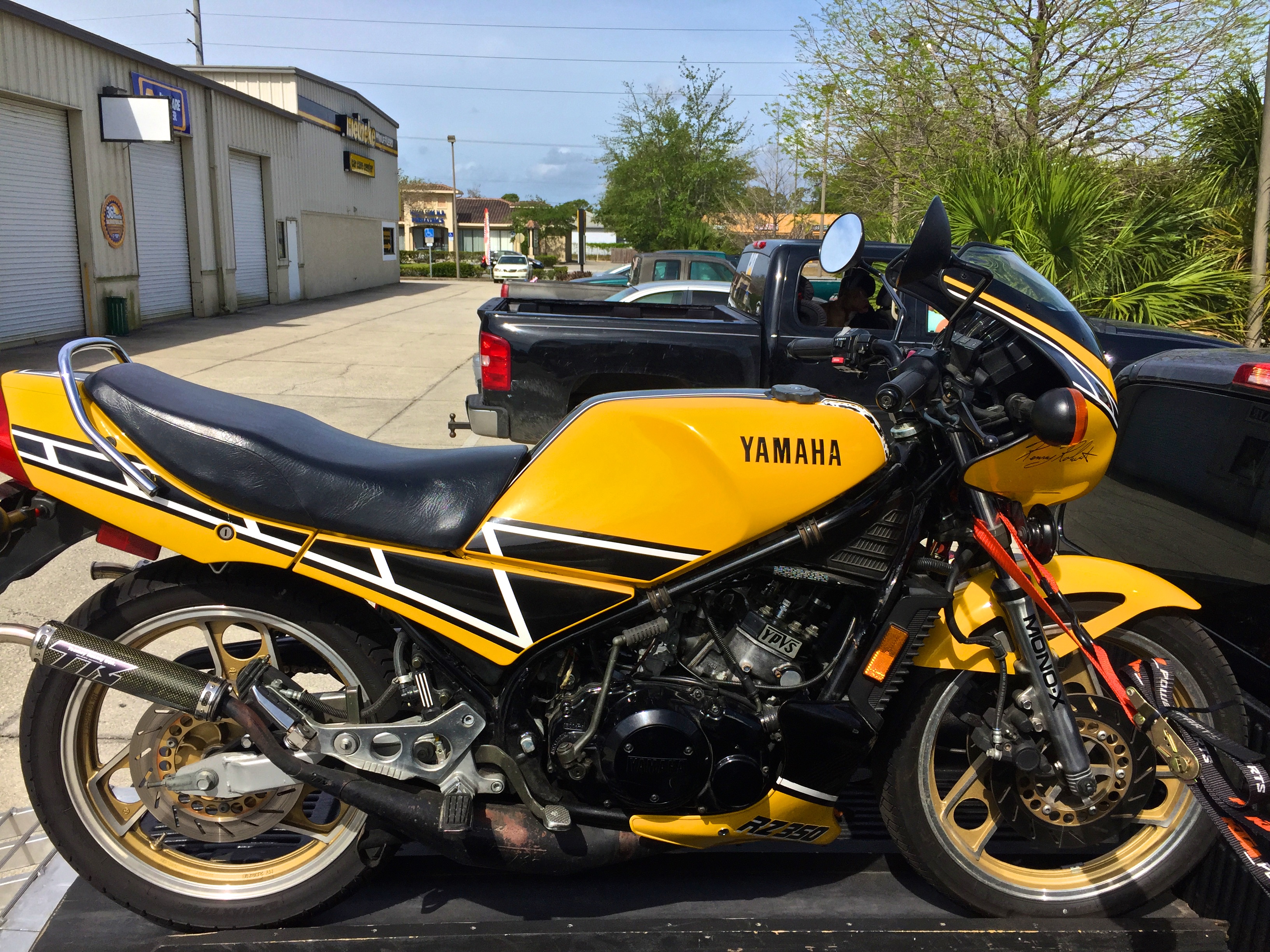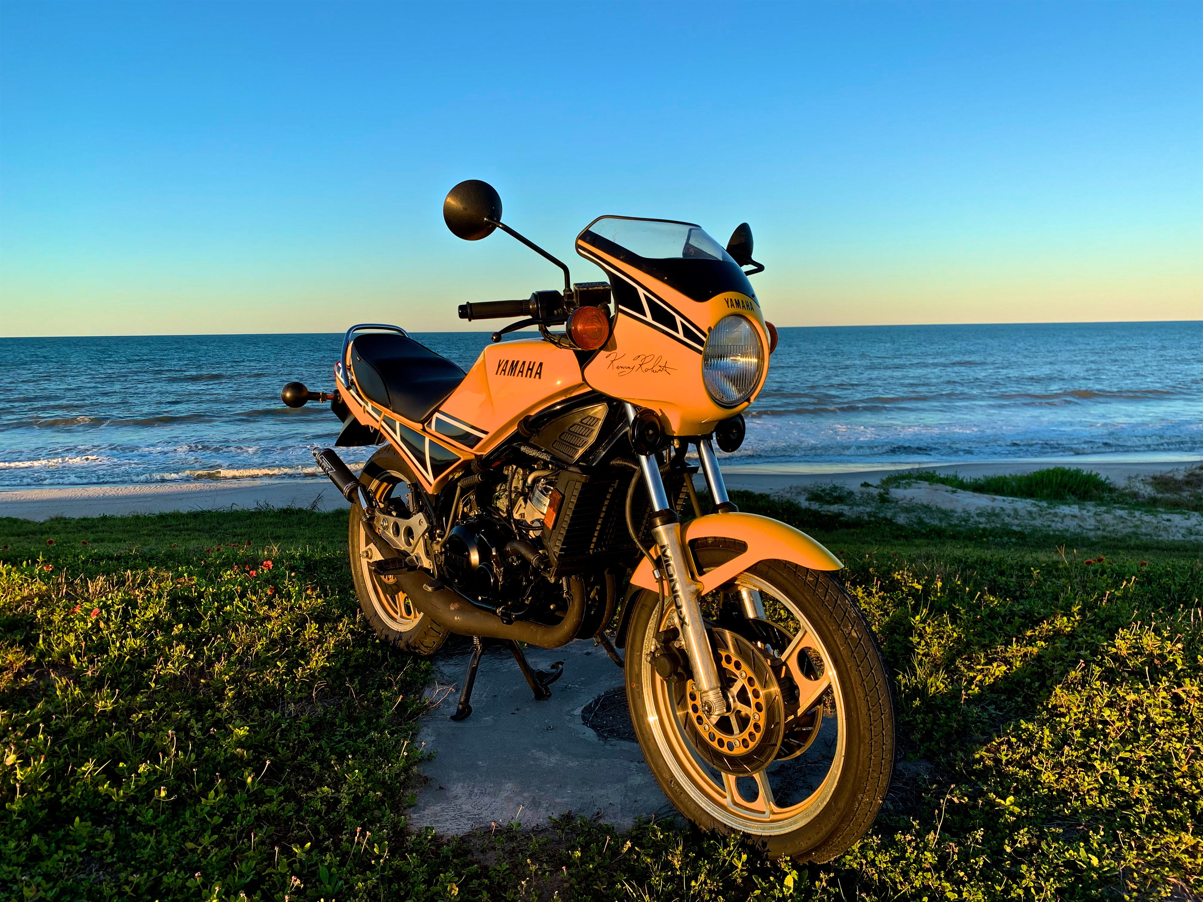 La RZ avait un compagnon d’écurie de 500cm³ appelé RZ500. Il est venu dans une palette de couleurs rouge sur blanc. Il s’agissait d’un V4 à double manivelle (un peu comme les motos GP de l’époque) et c’était une moto assez différente. Certains distributeurs et concessionnaires ont vendu ces motos avec des travaux de peinture personnalisés, ce qui a semé la confusion sur les schémas de peinture des équipementiers.