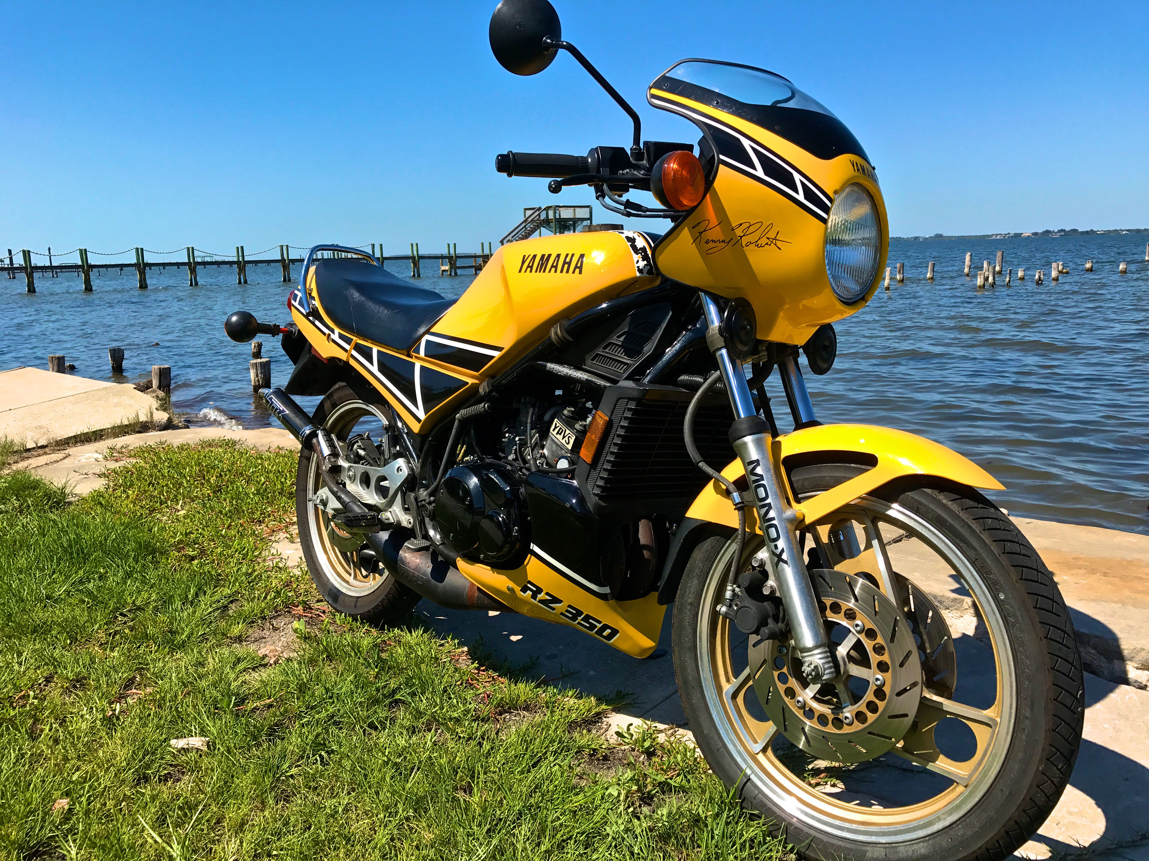 Les modèles américains de 1984 étaient disponibles en jaune et noir (Kenny Roberts Special) et un modèle rouge métallisé, blanc et bleu avec des graphismes différents et aucune signature Kenny Roberts sur le capot supérieur. En 1985, les versions rouges, blanches et bleues avaient des graphismes identiques à celles de la version jaune et noire de Kenny Roberts, avec signature, mais avec un cadre rouge. Des modèles restants avec des graphismes révisés qui ressemblaient quelque peu aux versions britanniques de 1983 ont également été produits. Ceux-ci n’ont été vendus en tant que RZ350NC2 en Californie qu’à partir de la fin de 1985-1986 avec des jantes dorées et une signature Kenny Roberts. La production estimée de RZ350 pour les États-Unis est d’environ 20'000 motos.