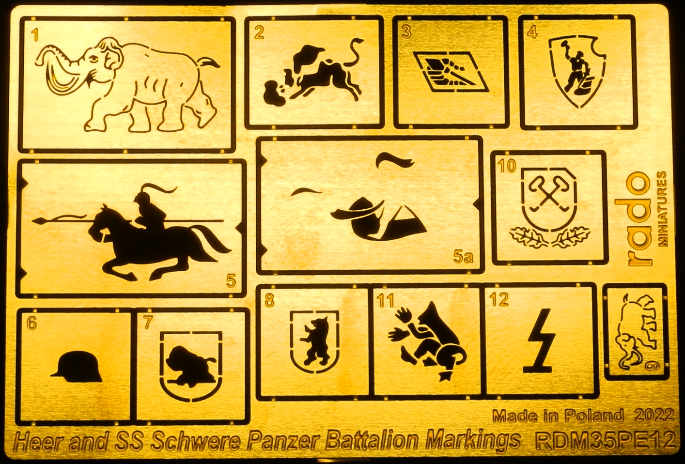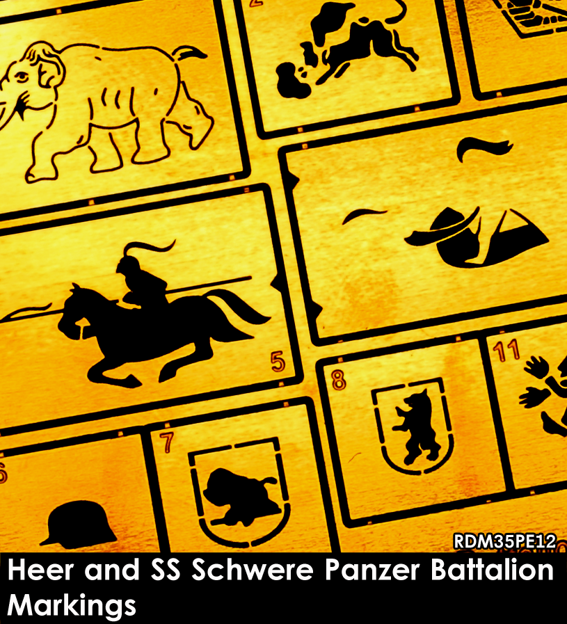 Planche PE taille 40x60mm. Pochoirs des bataillons de chars Heer et SS Tiger I et Tiger II pour le marquage.