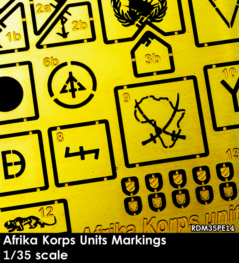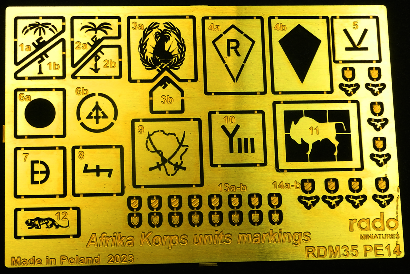 Une planche de photo-découpe avec les marquages pour les unités Afrika Korps.