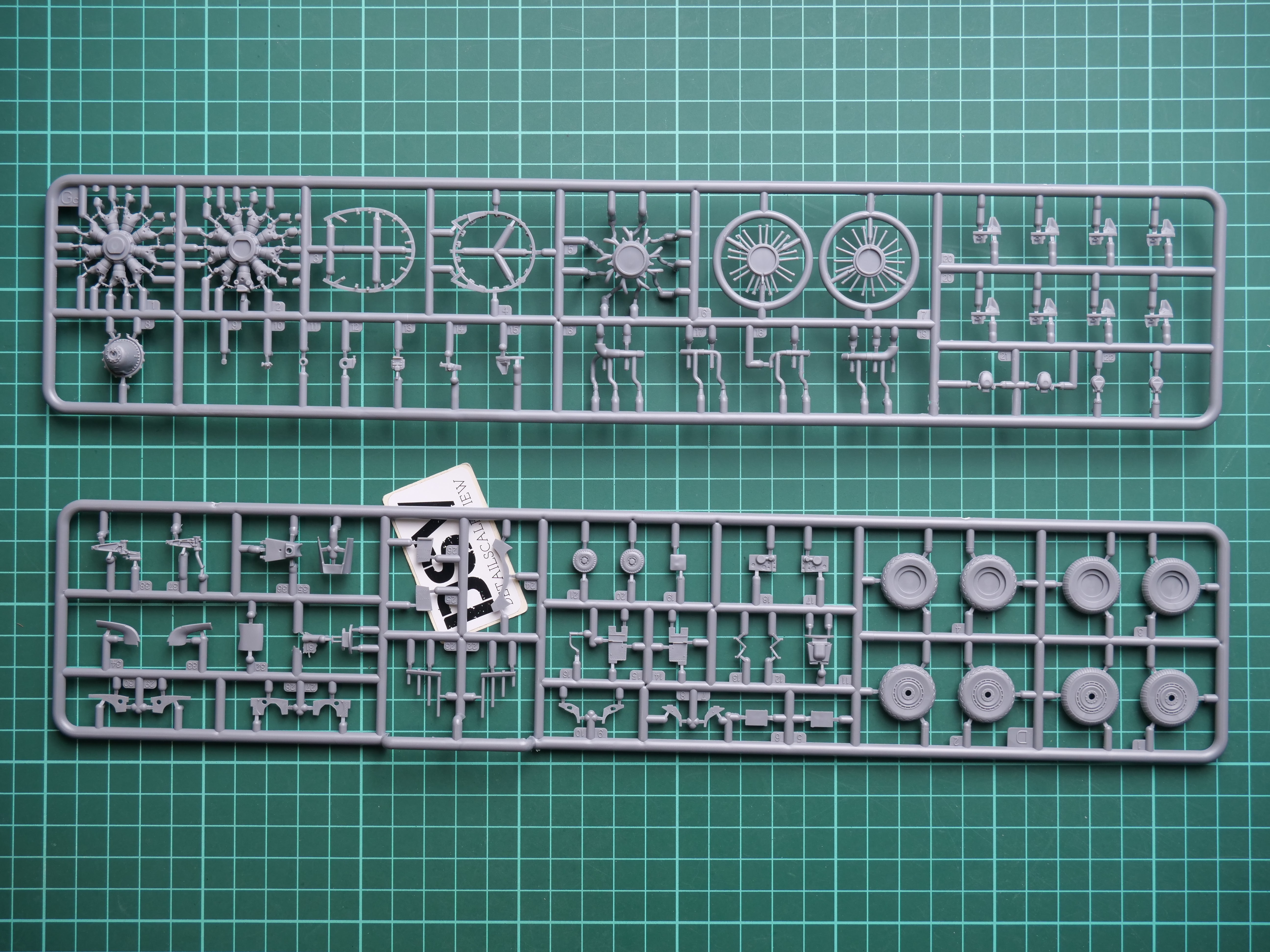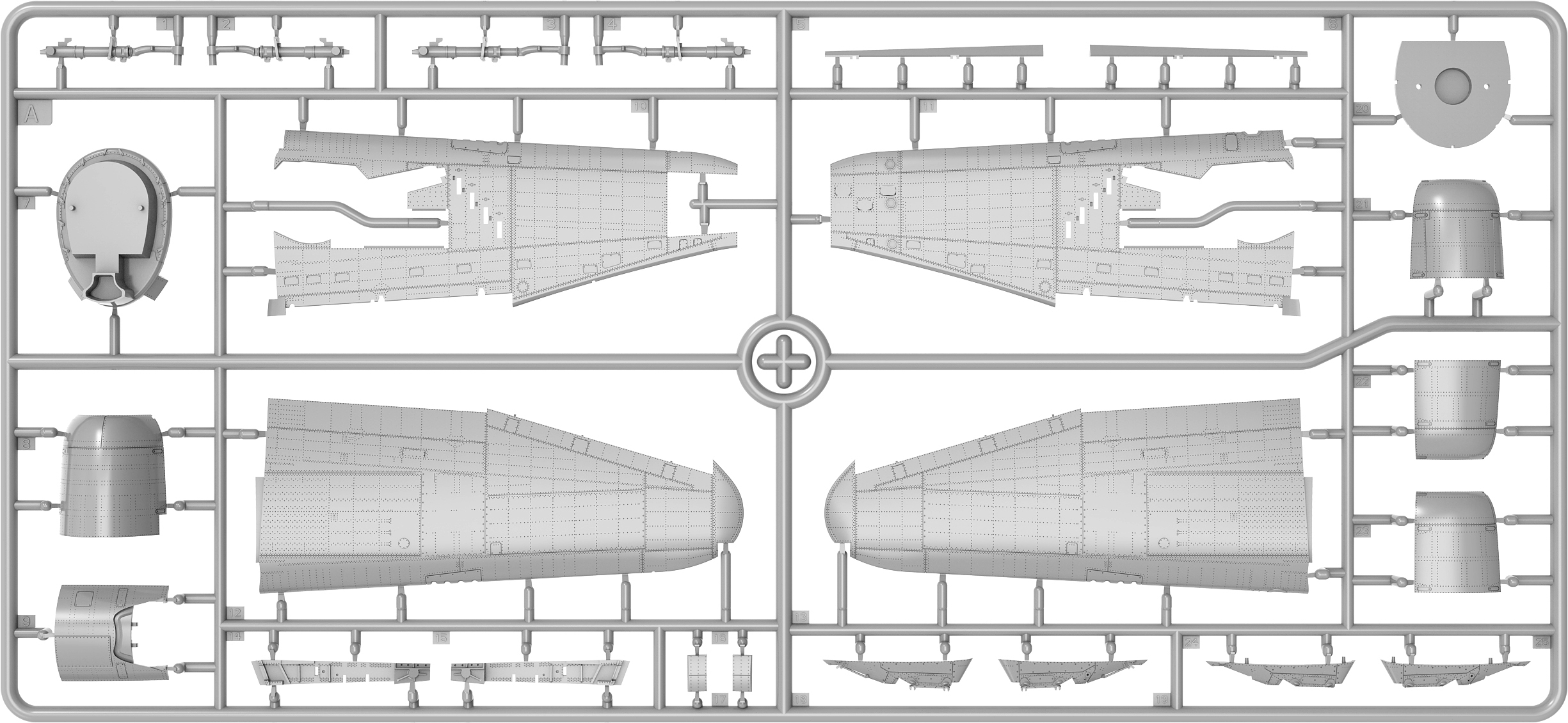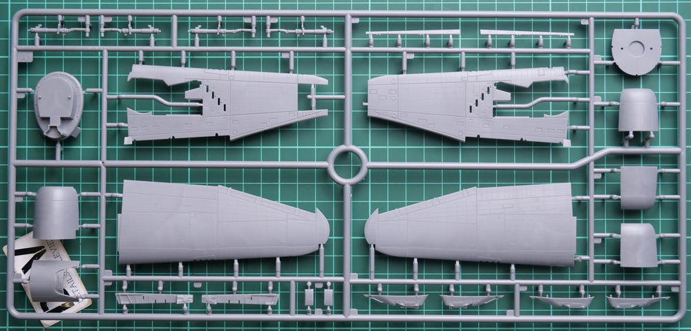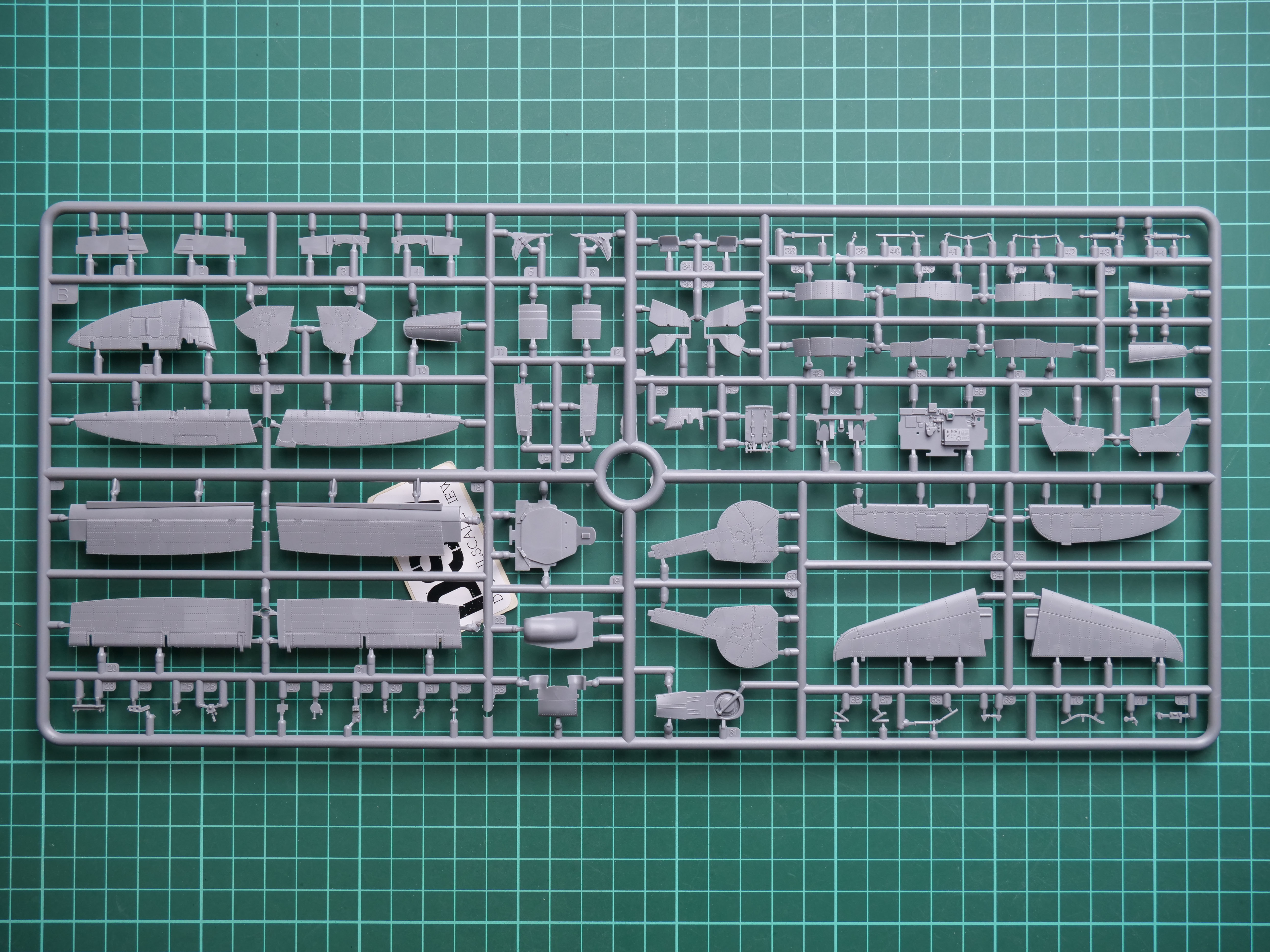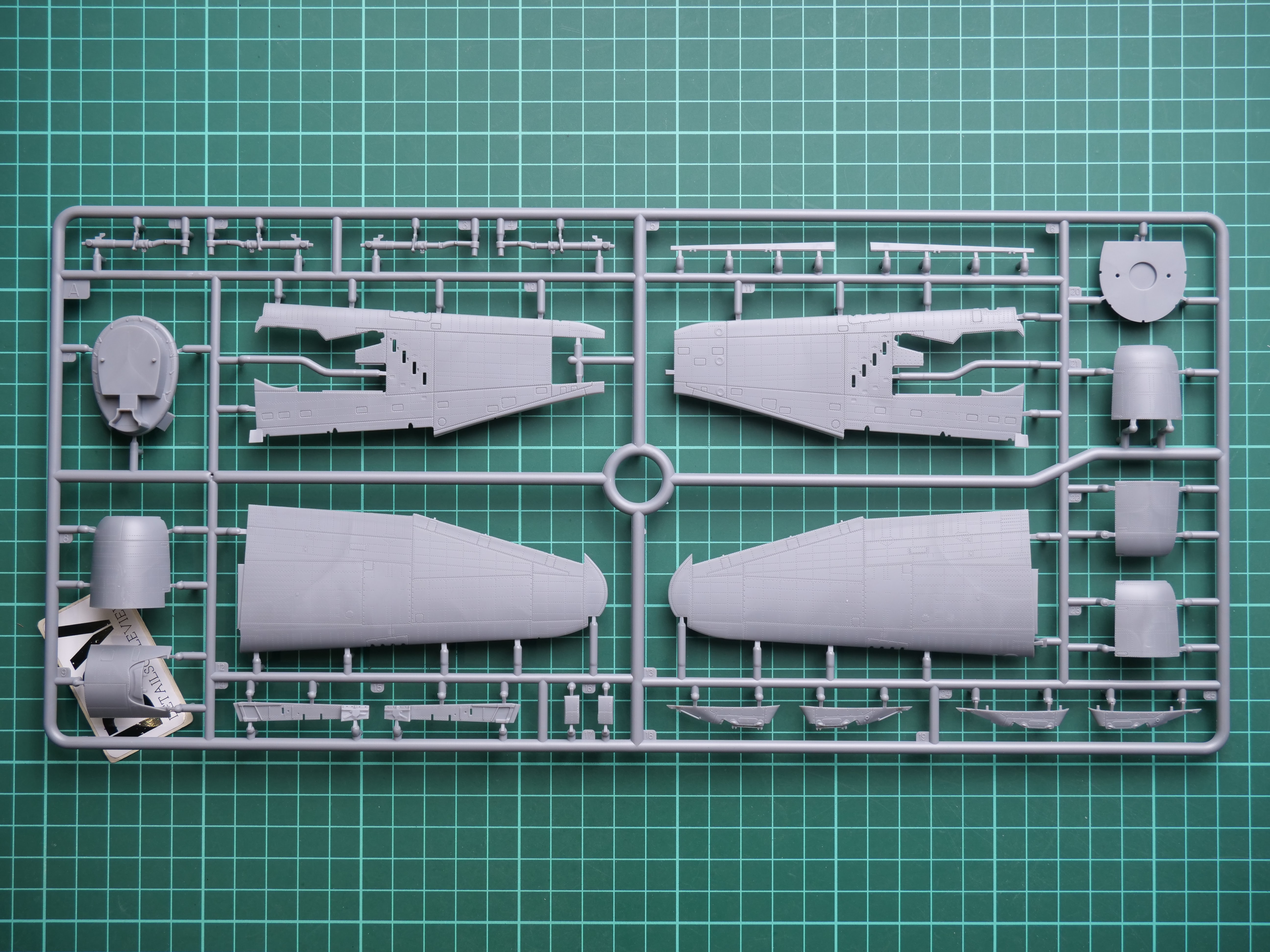 La première grappe est dédié aux pièces d’aile et aux panneaux de capot. Les caractéristiques externes ont fière allure pour cette échelle, et la mécanisation des ailes est moulée séparément.