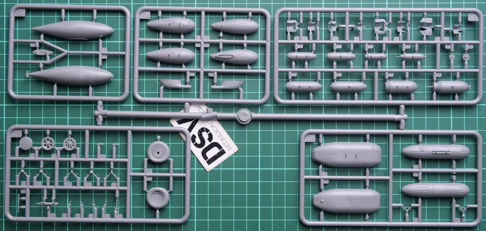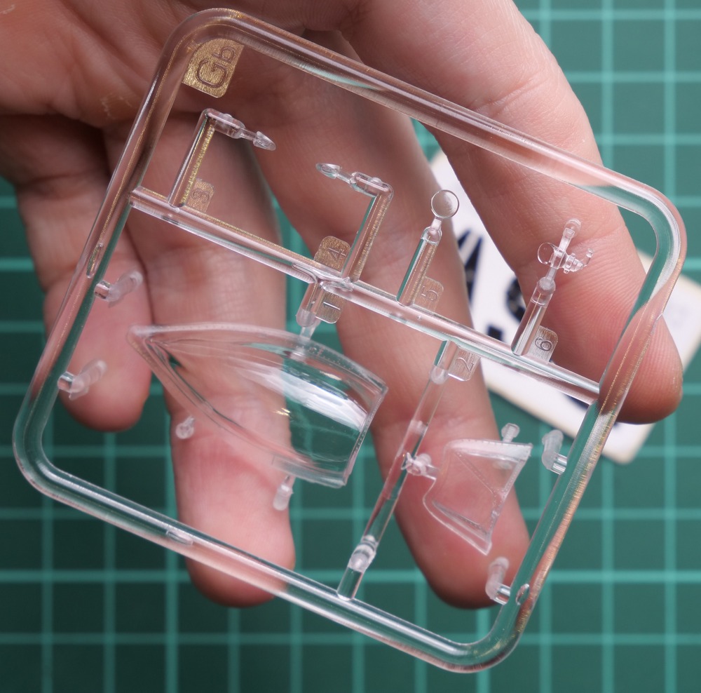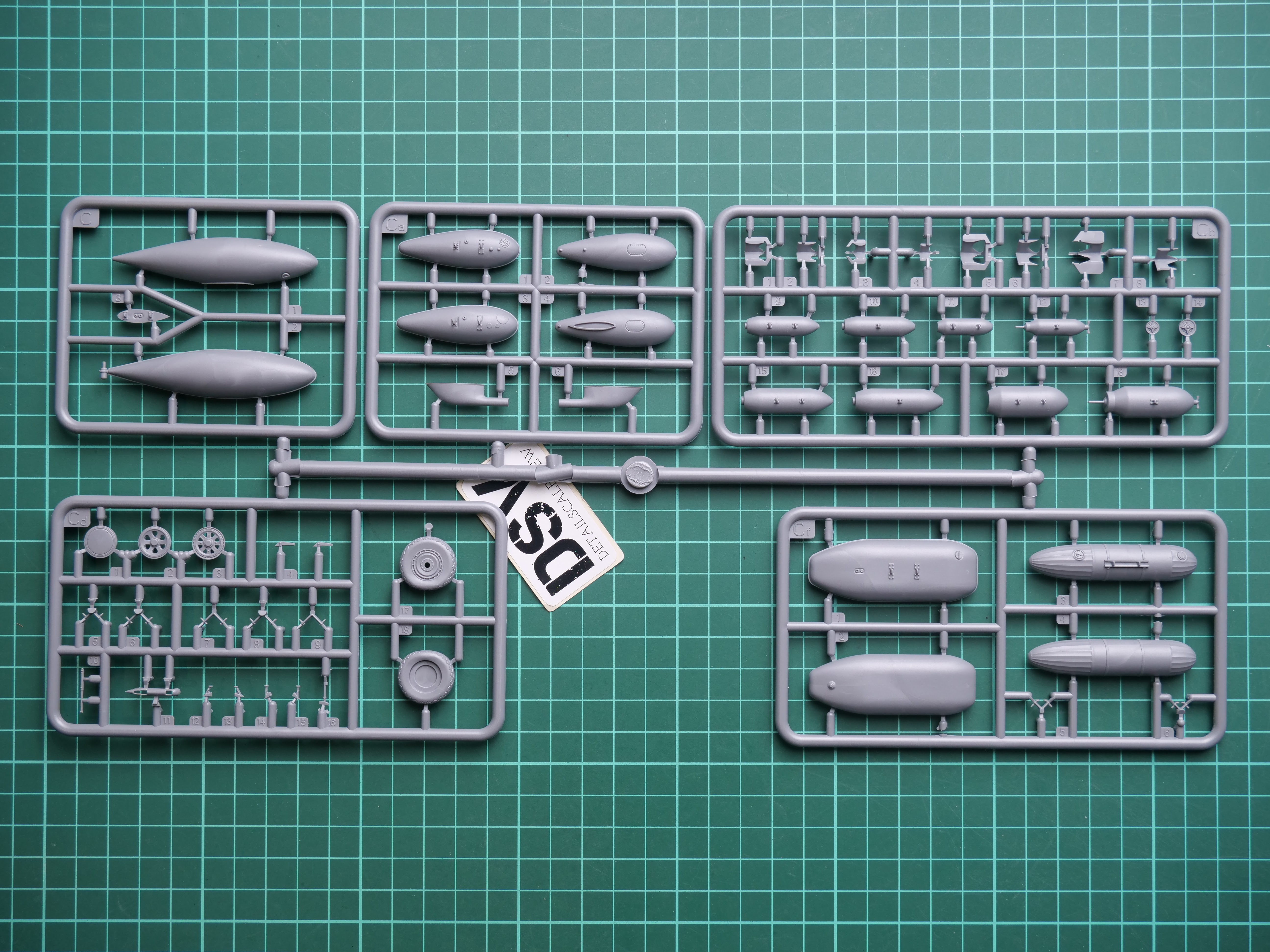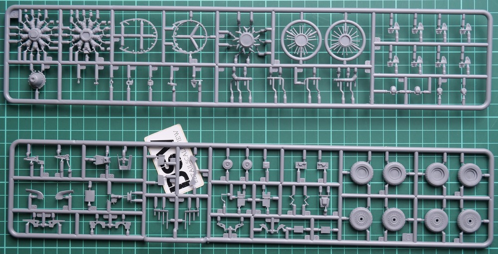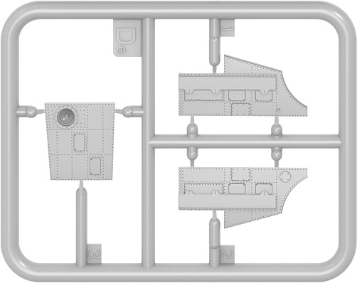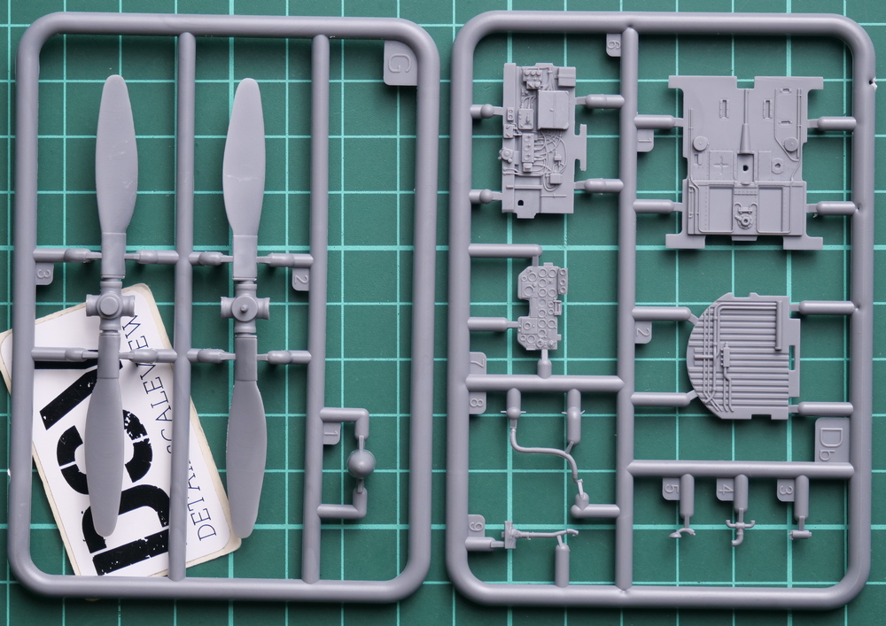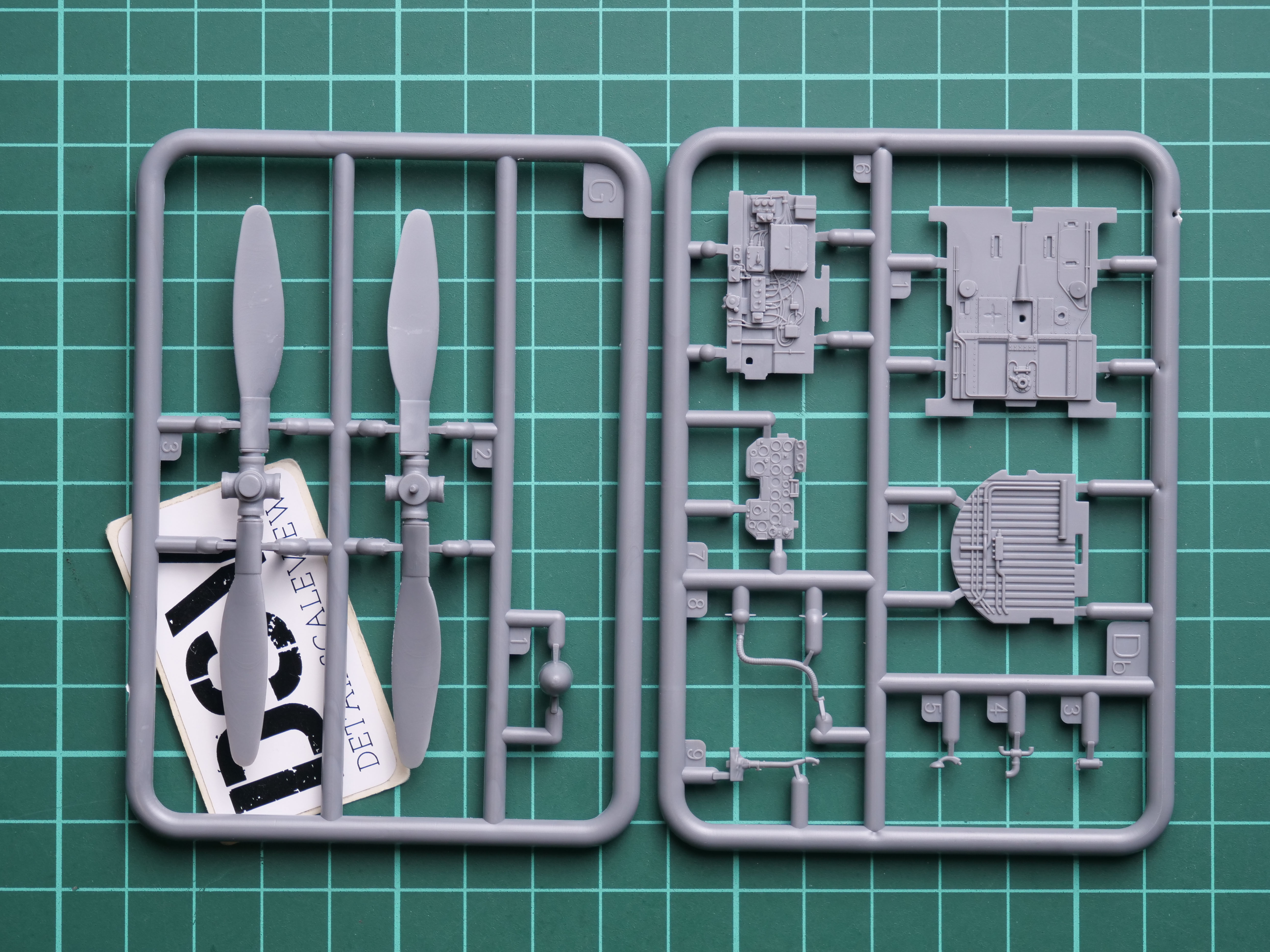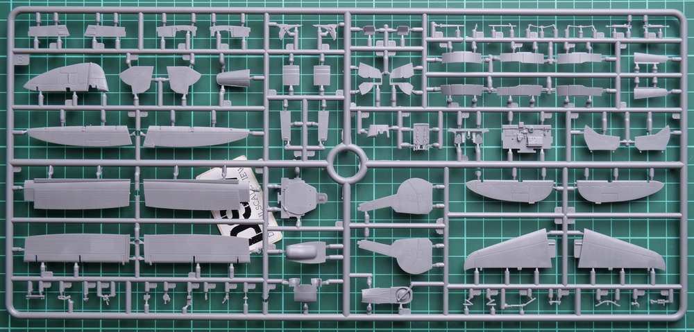 La première grappe est dédié aux pièces d’aile et aux panneaux de capot. Les caractéristiques externes ont fière allure pour cette échelle, et la mécanisation des ailes est moulée séparément.