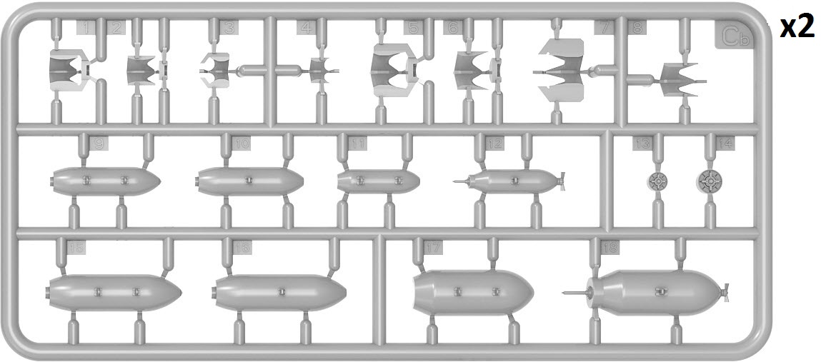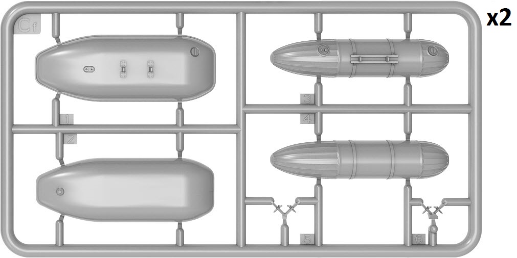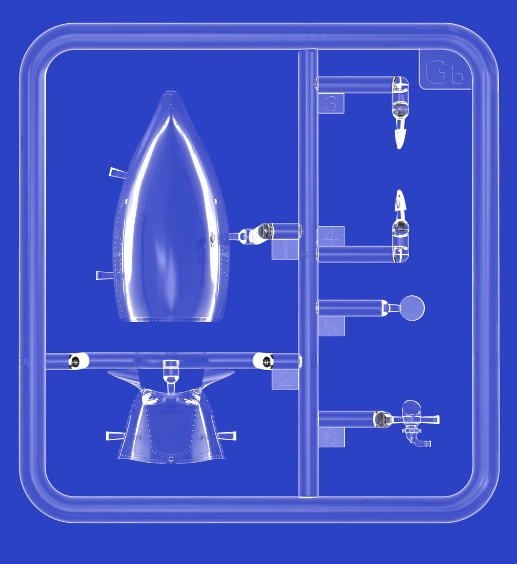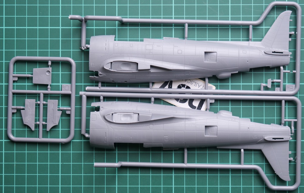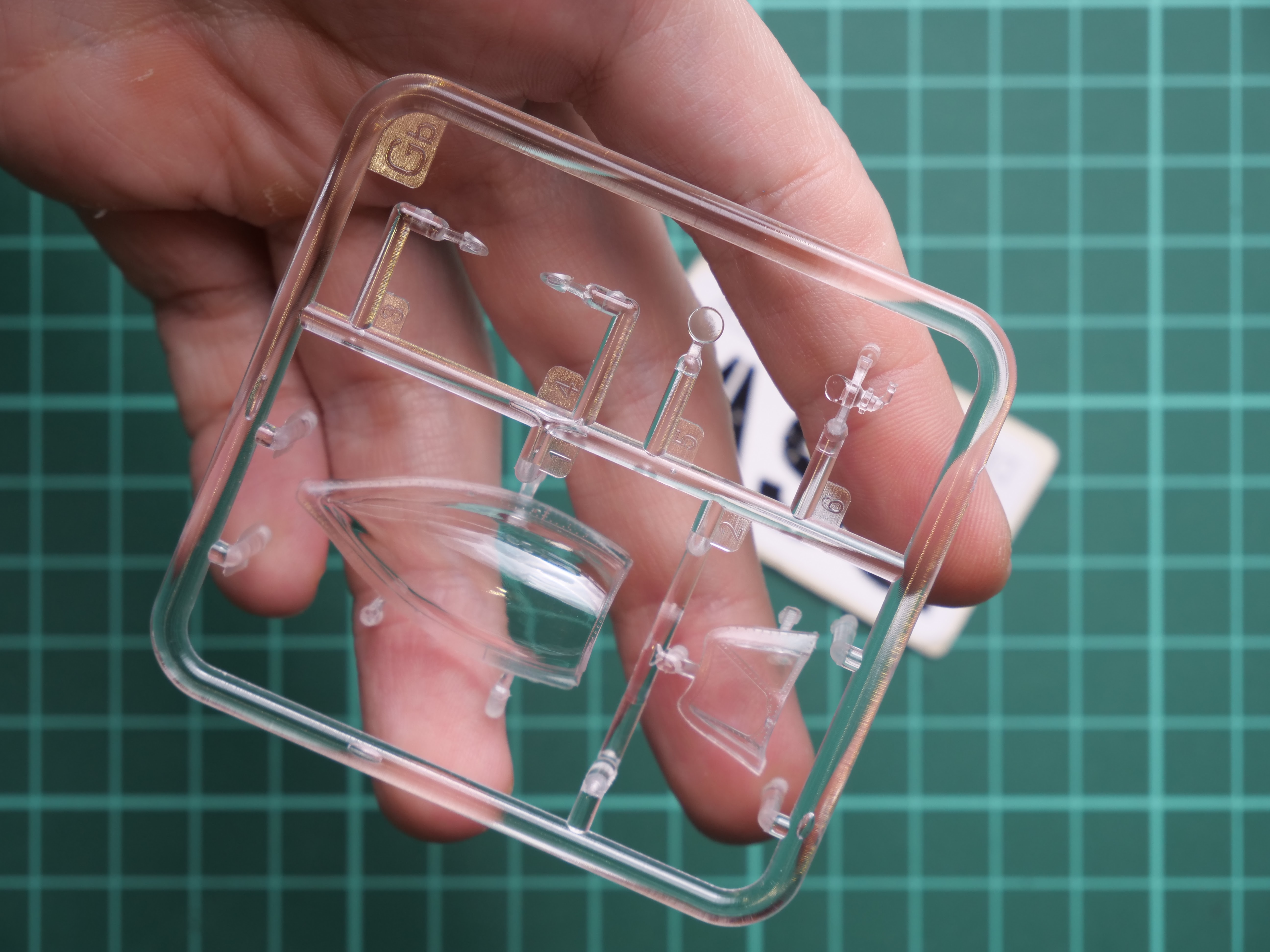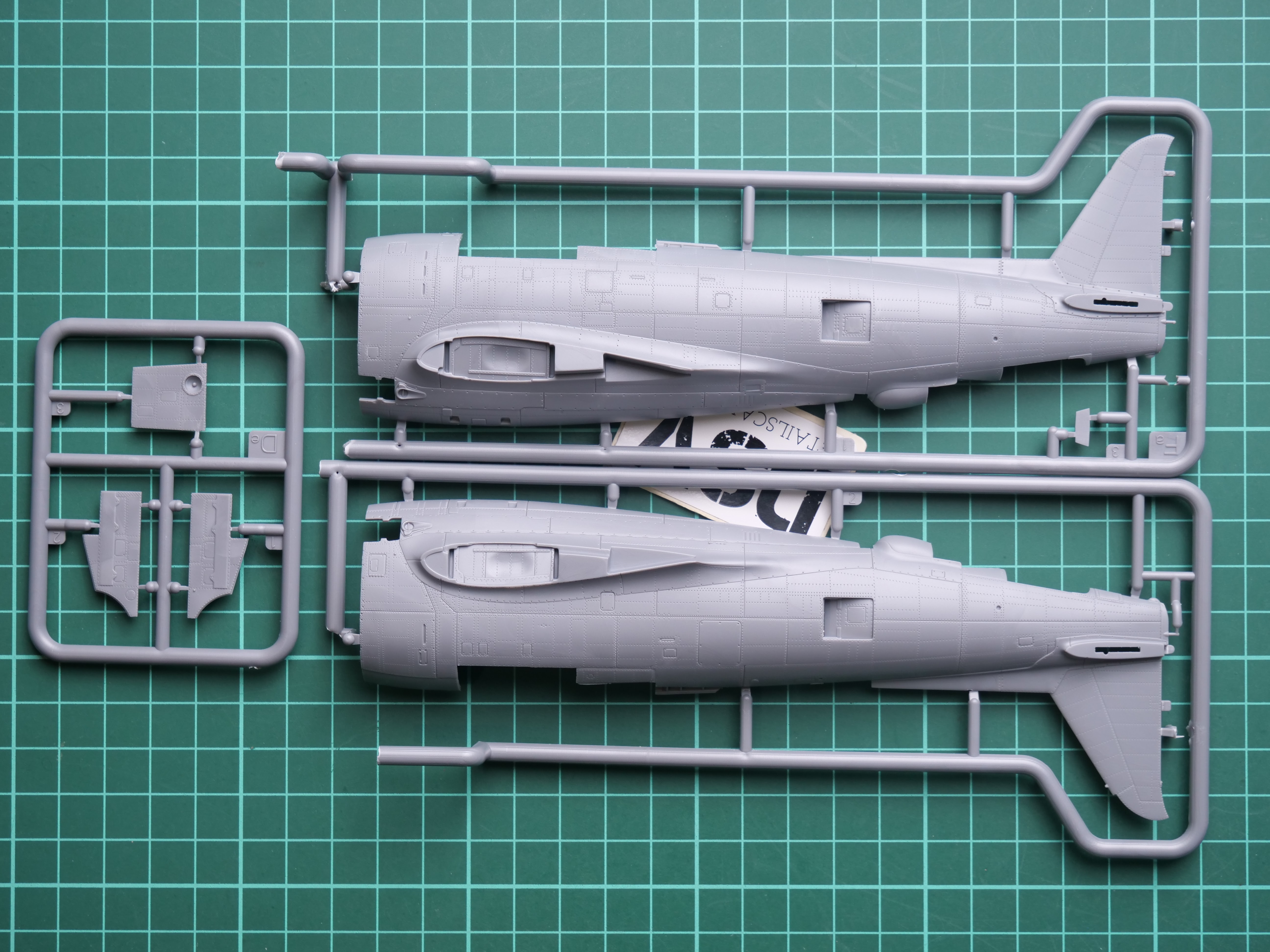 La première grappe est dédié aux pièces d’aile et aux panneaux de capot. Les caractéristiques externes ont fière allure pour cette échelle, et la mécanisation des ailes est moulée séparément.