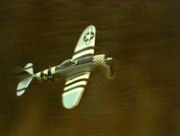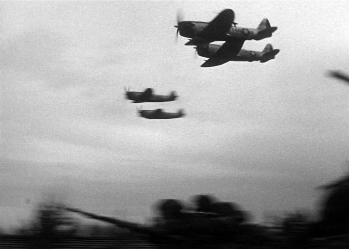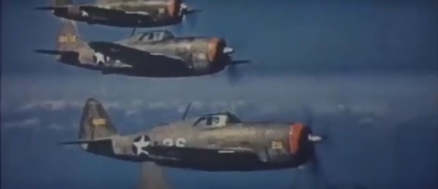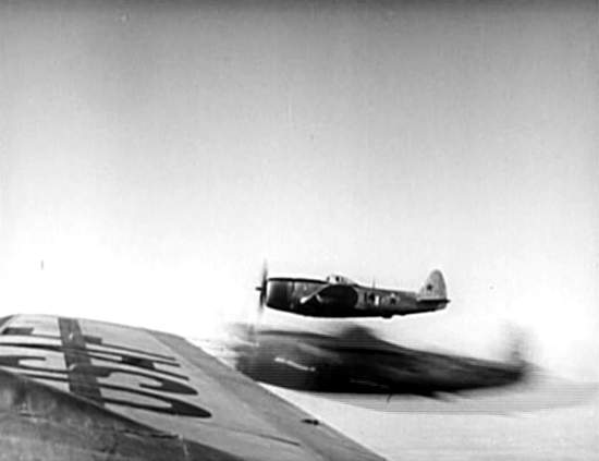 un Republic P-47D Thunderbolt de l'épisode 6 de la saison 1 (Bastogne (Bastogne)). Un P-47 attaque des parachutistes américains par accident.