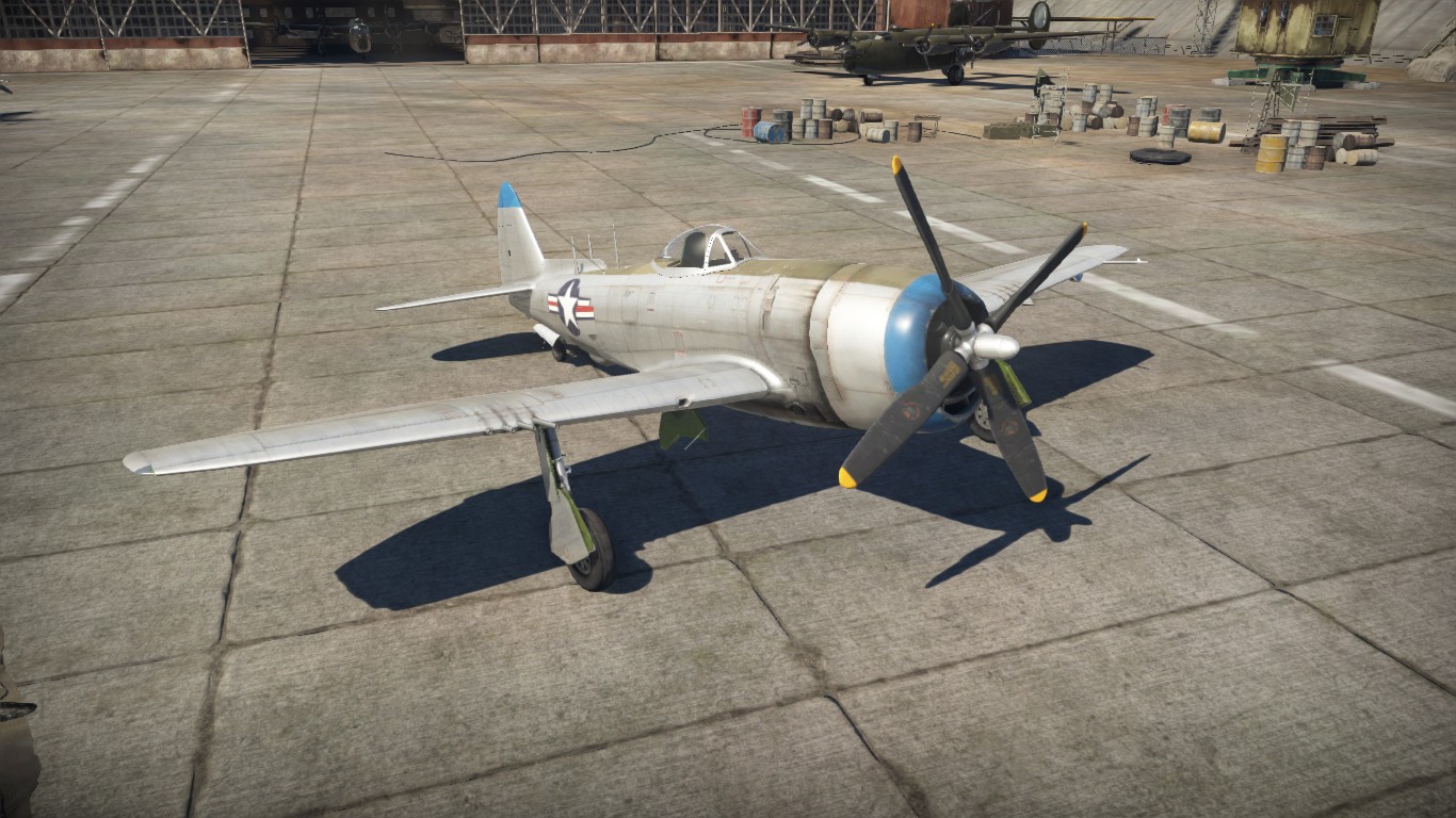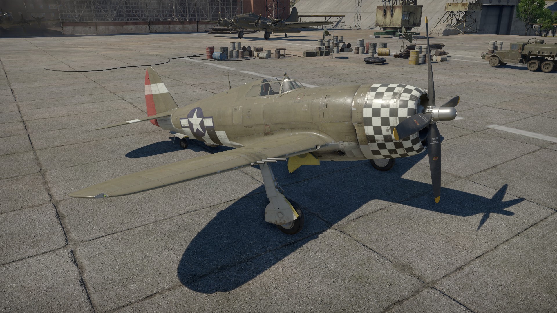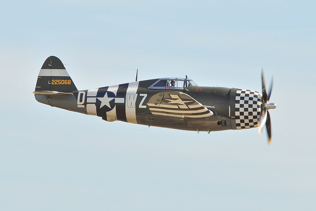 Le Republic P-47 Thunderbolt est un avion de chasse de la Seconde Guerre mondiale produit par la société américaine Republic Aviation de 1941 à 1945. C’était un chasseur à haute altitude réussi, et il a également servi de chasseur-bombardier américain le plus important dans le rôle d’attaque au sol. Son armement principal était de 8 mitrailleuses de calibre .50, et il pouvait transporter des roquettes de 5 pouces ou une charge de bombes de 2'500 lb (1'100 kg). Lorsqu’il était entièrement chargé, le P-47 pesait jusqu’à 8 tonnes, ce qui en faisait l’un des chasseurs les plus lourds de la guerre.