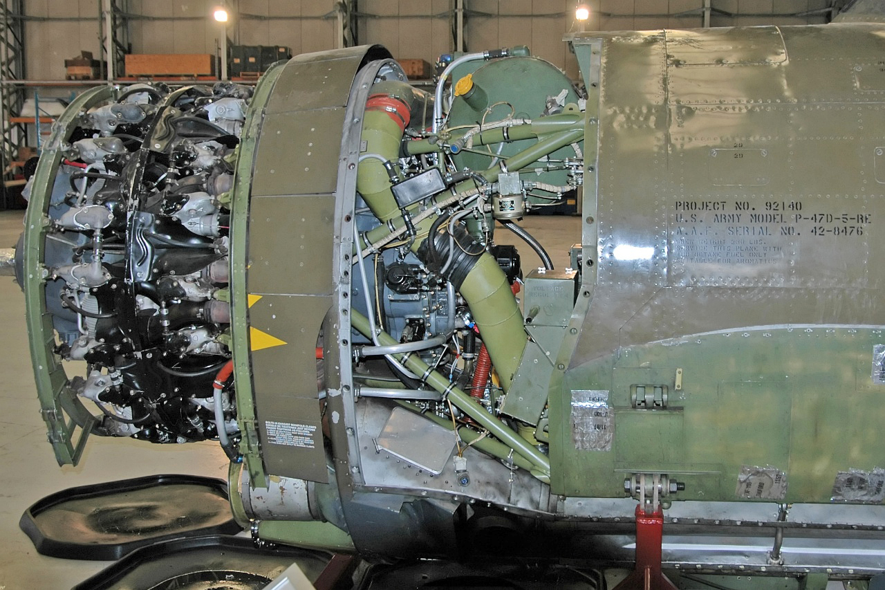 Le Thunderbolt était efficace en tant que chasseur d’escorte à courte et moyenne portée dans le combat air-air à haute altitude et l’attaque au sol sur les théâtres d’opérations en Europe et dans le Pacifique. Le P-47 a été conçu autour du puissant moteur en étoile Pratt & Whitney R-2800 Double Wasp 18 cylindres, qui a également propulsé 2 chasseurs de l’US Navy et de l’US Marine Corps, le Grumman F6F Hellcat et le Vought F4U Corsair. Un système avancé de turbocompresseur a assuré la domination finale de l’avion à haute altitude, tout en influençant sa taille et sa conception.