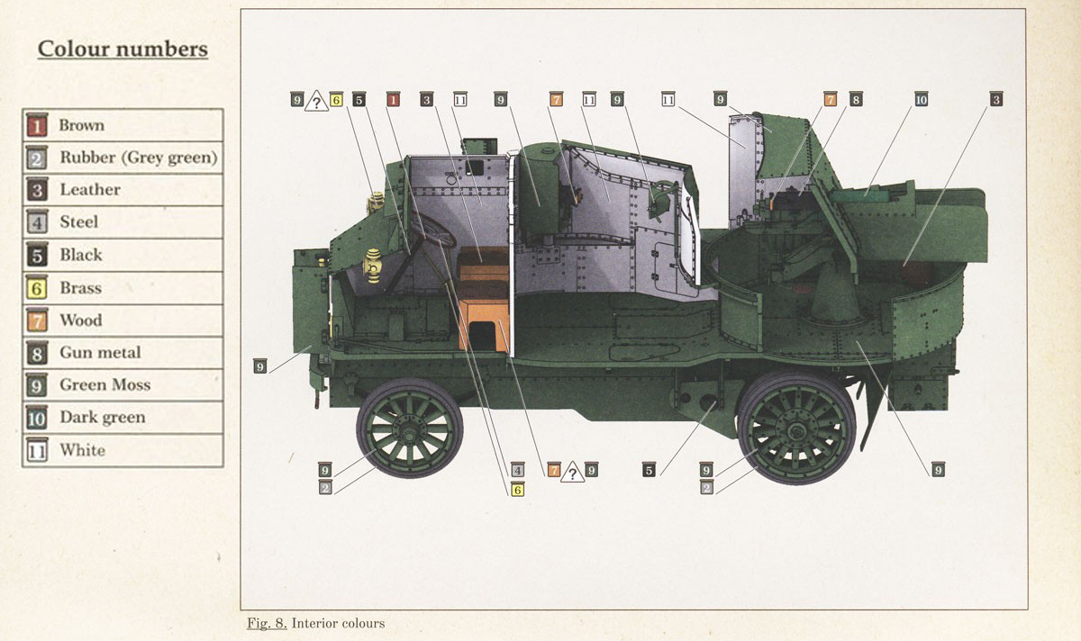 Les commandes arrière consistaient en un siège latéral à un volant amovible ; le conducteur arrière regardant à travers une fente étroite dans le blindage. Un tube de communication était prévu pour la transmission des commandes : changer la vitesse, actionner l’embrayage, casser et accélérer du conducteur arrière vers l’avant. Au cours de l’année 1916, ce travail a été progressivement achevé.