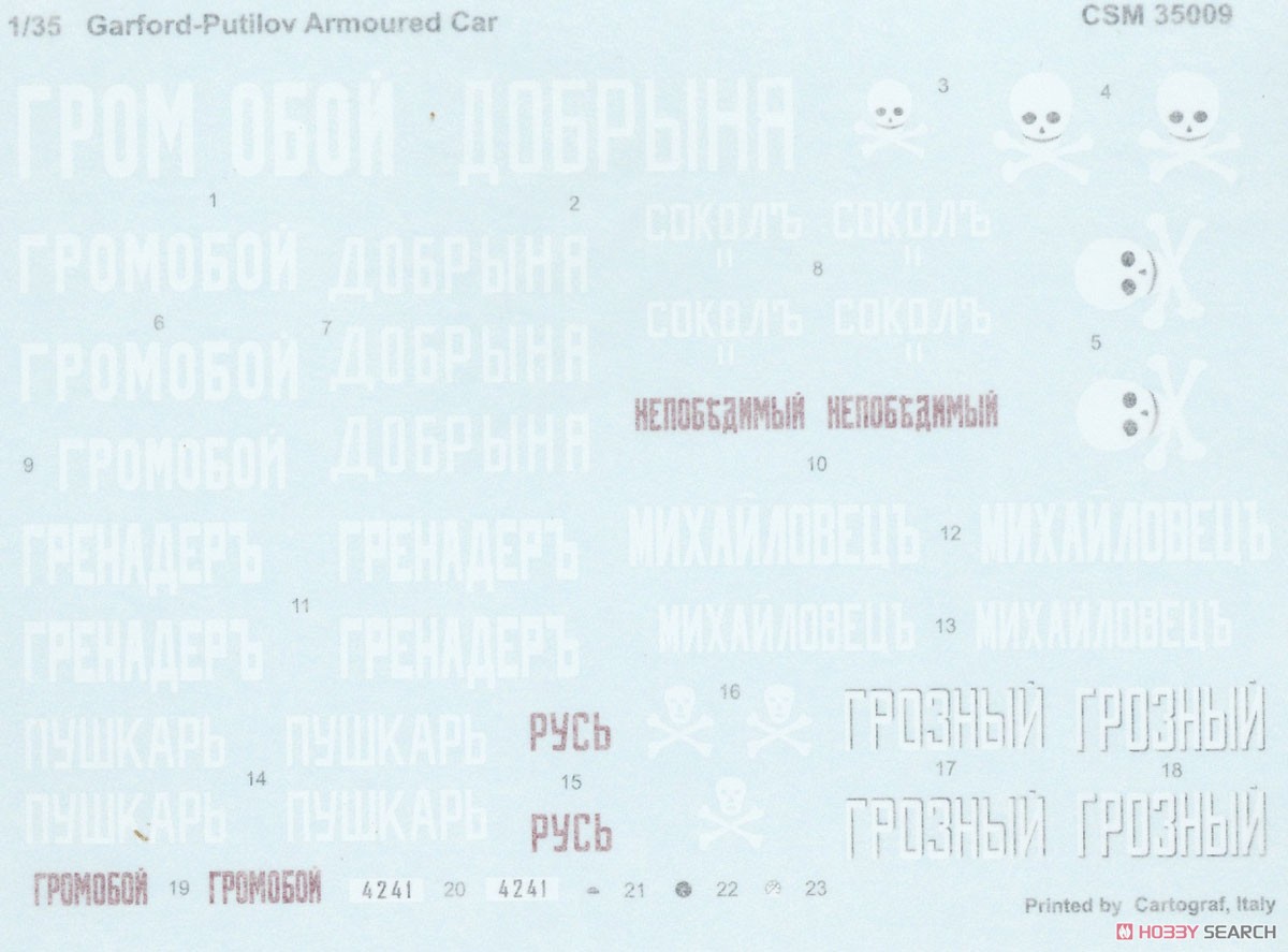 En décembre 1921, seuls 26 de ces 30 Garford sont comptabilisés dans les registres, dont 15 fonctionnaient et 11 étaient en réparation. Pratiquement tous les véhicules blindés étaient usés, en particulier le châssis. Ils ont été particulièrement touchés par l’absence totale de pièces de rechange, qui ne pouvaient être achetées qu’à l’étranger. Compte tenu de cela, la décision a été prise en 1923 de changer complètement le châssis des véhicules pour ceux qui peuvent être utilisés sur les voies ferrées, les transformant ainsi en wagons blindés. Cette tâche a été effectuée à l’usine de construction de machines de Briansk, où 21 Garford ont été envoyés (mais on ne sait pas si tous ont été remis à neuf). En 1931, la commission de la Direction des véhicules blindés a émis un ordre pour la mise hors service de tous les types de véhicules blindés obsolètes, y compris les Garford. Curieusement, la commande contient des informations sur 27 véhicules blindés de type Garford-Putilov, ce chiffre ne correspond pas aux données de 1921 ou 1923 (26 et 21 véhicules existants respectivement). D’une manière ou d’une autre, au cours des années 1930, tous les Garford ont été démantelés, le blindage et les châssis utilisables ont été transférés pour être utilisés par l’Armée rouge et ceux qui ne convenaient pas ont été envoyés au Bureau des fonds militaires. Un certain nombre de publications suggèrent l’utilisation de Garford-Putilov par l’Armée rouge pendant la Seconde Guerre mondiale, ce qui n’est indiqué qu’indirectement par quelques photographies allemandes montrant des Garford « trophées » capturés à la fois en état de service et endommagés. Bien qu’il soit impossible d’établir l’heure et le lieu où les photographies ont été prises, il est raisonnable de croire que les photographies représentent des Garford capturés par l’armée allemande pendant la Première Guerre mondiale.