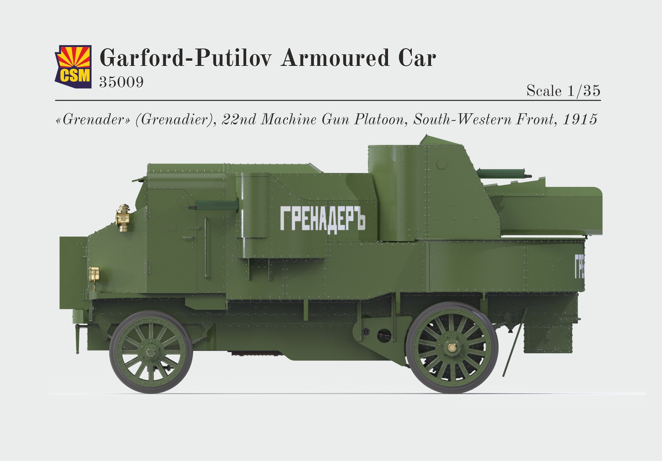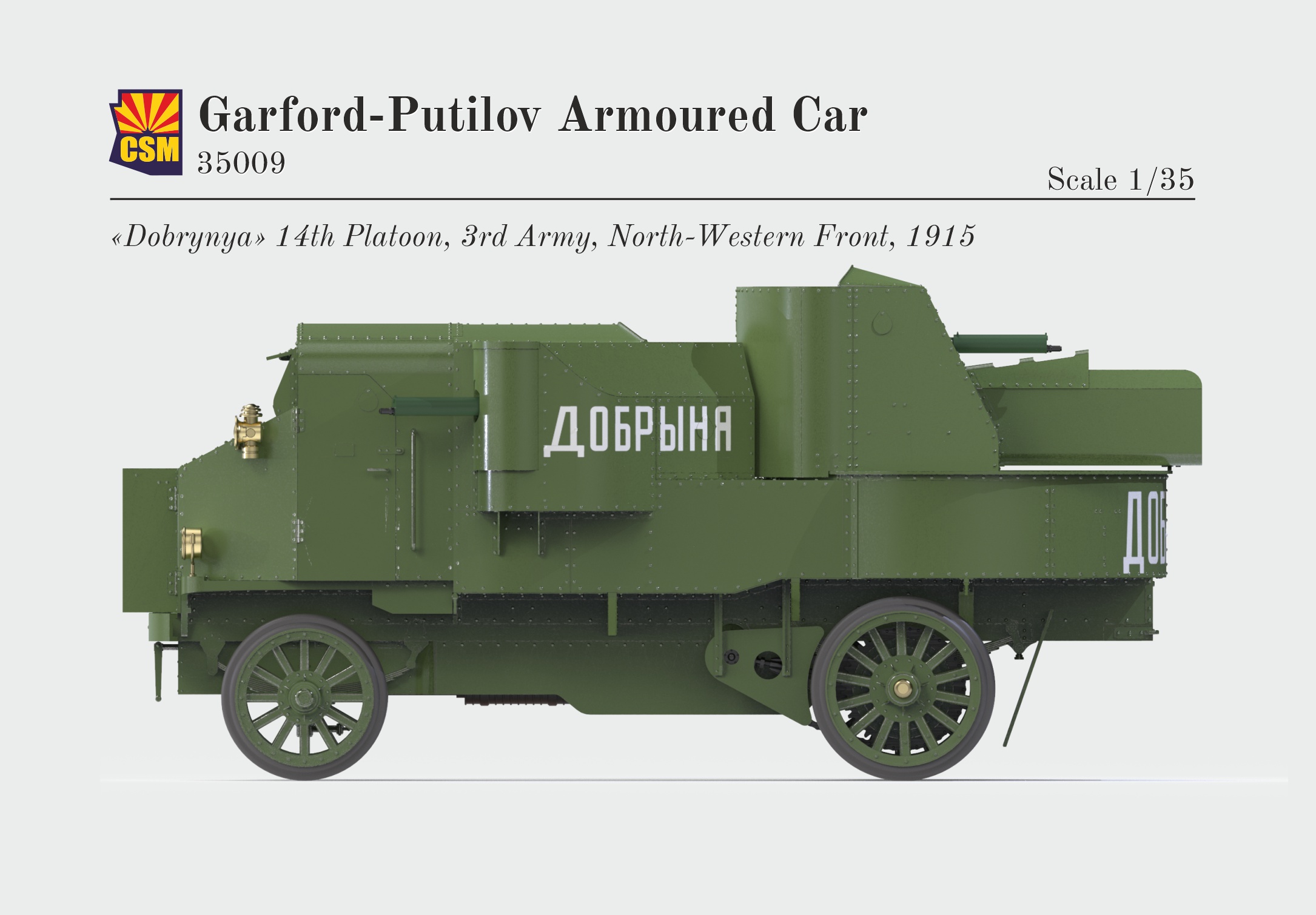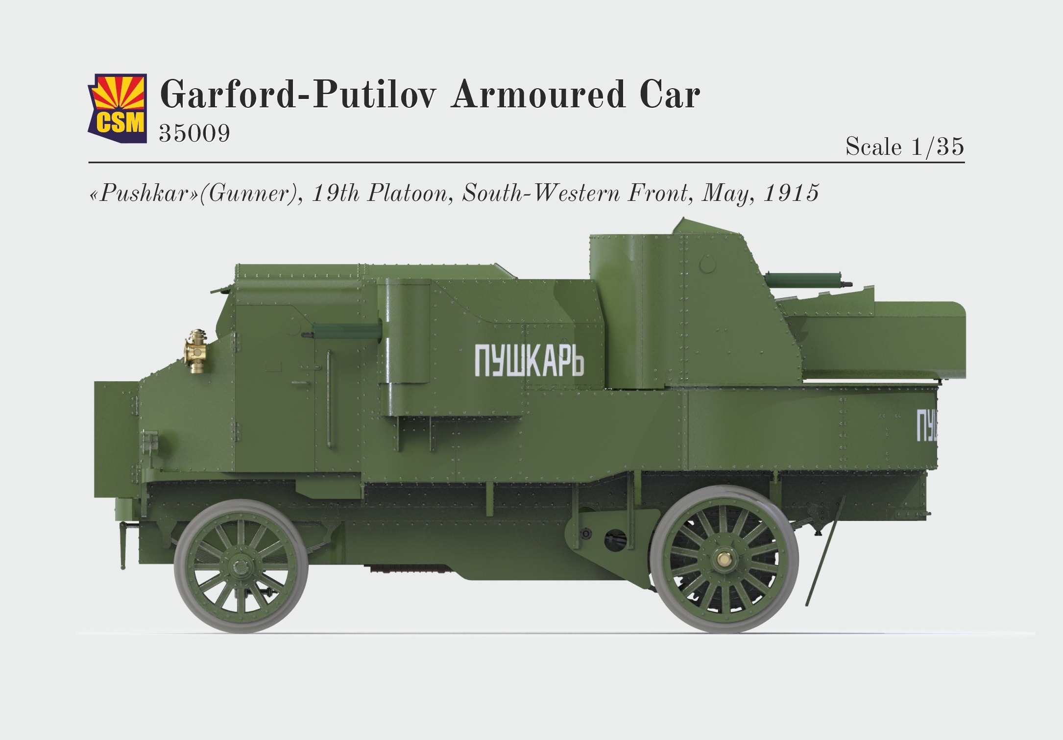 Les travaux de conception se sont poursuivis jusqu’à la fin de 1915, lorsque l’usine Putlilov a reçu une commande pour la construction de 30 voitures blindées. La construction du véhicule blindé commença en mars et, le 16 avril, la première voiture blindée Garford-Putilov fut envoyée à une compagnie blindée. 2 semaines et demie plus tard, le 3 mars 1915, après la formation et l’entraînement de l’équipage, la nouvelle voiture blindée a été envoyée sur le front sud-ouest dans la composition du 5e peloton automobile.