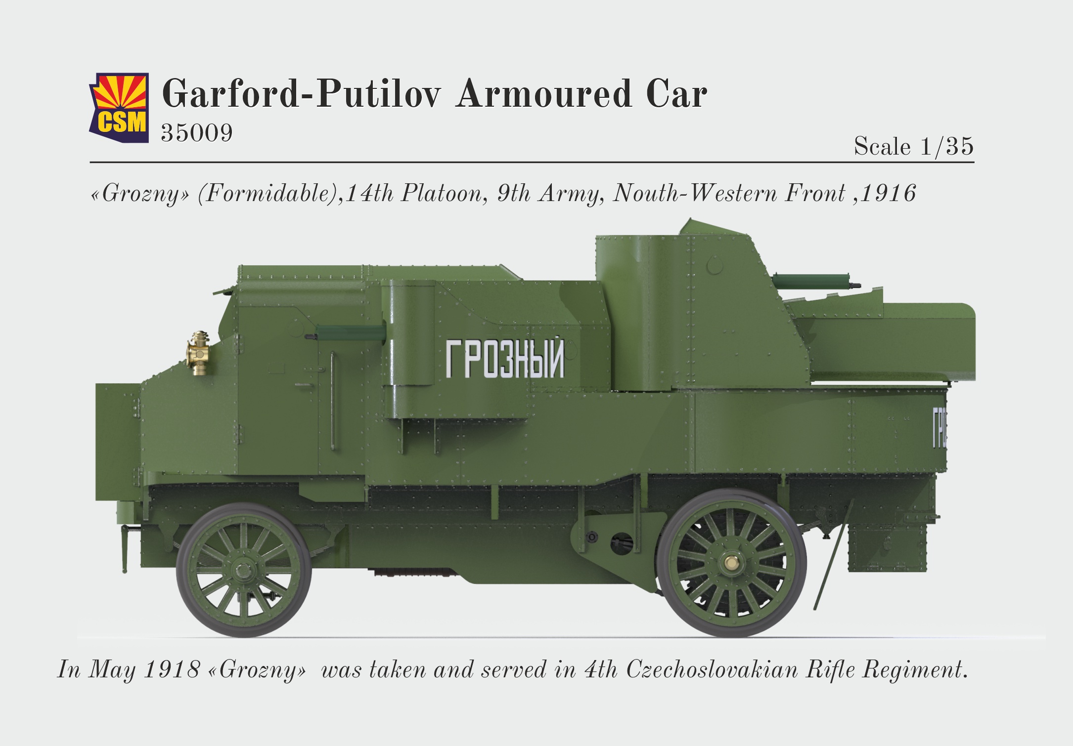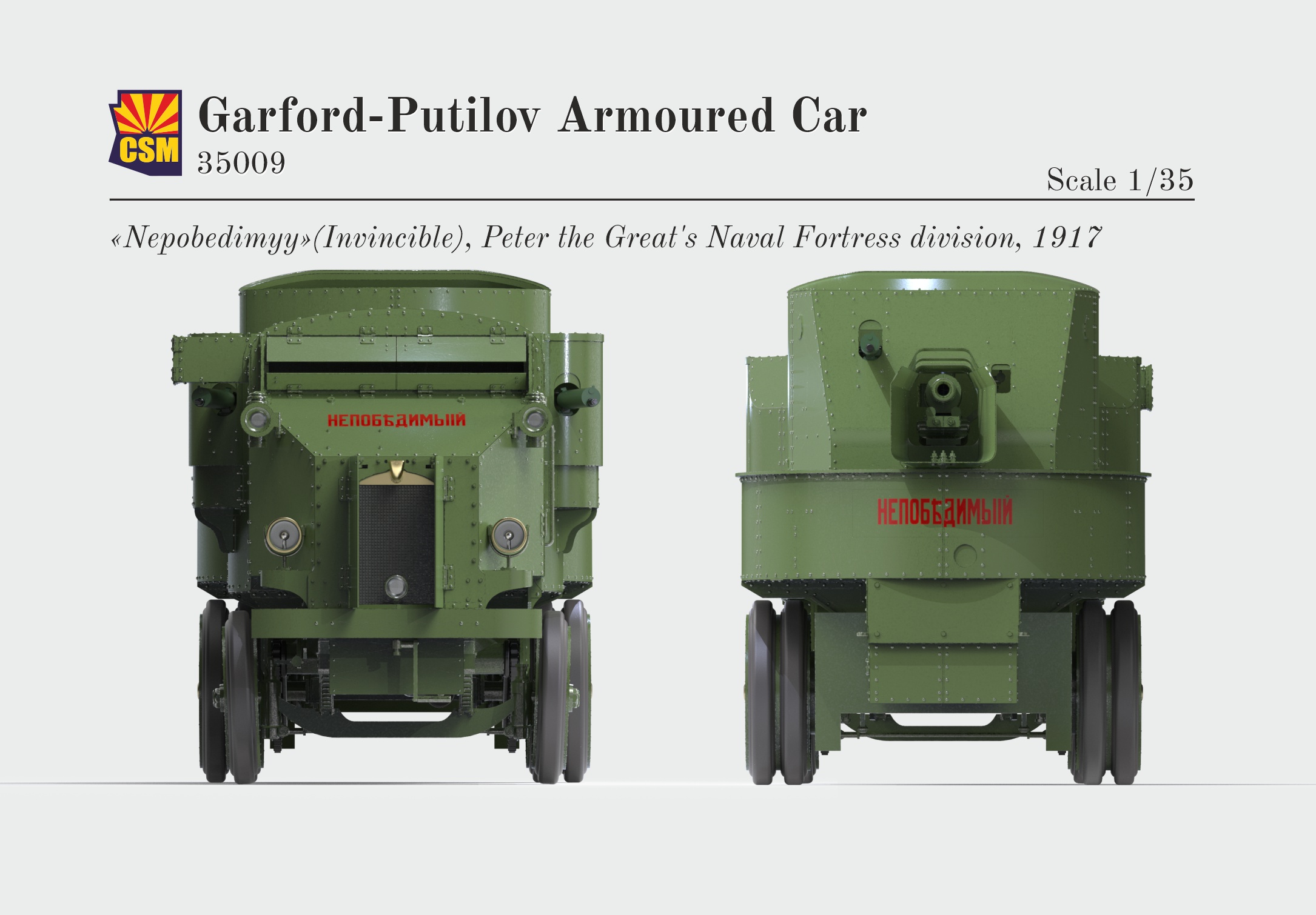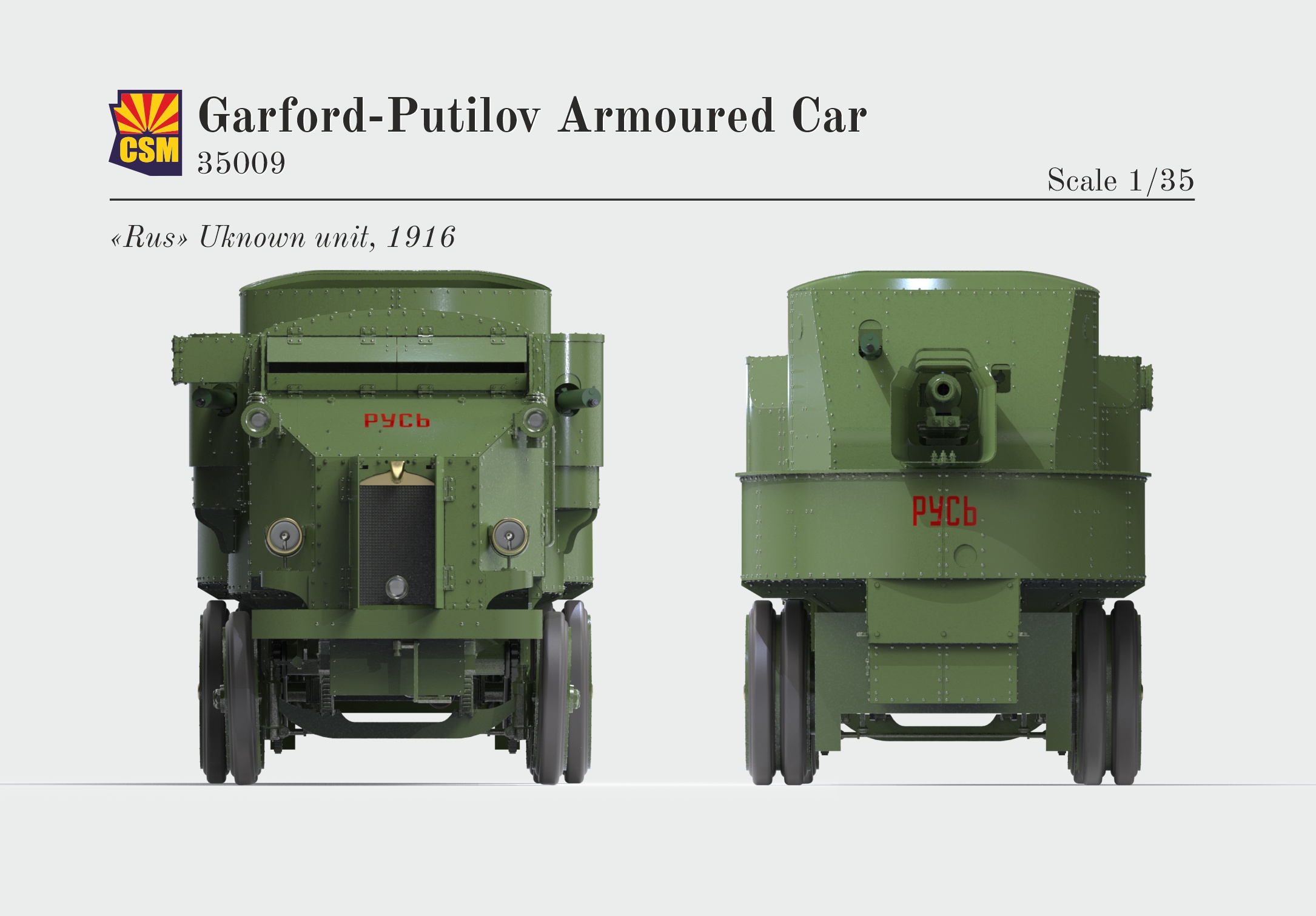Les travaux de conception se sont poursuivis jusqu’à la fin de 1915, lorsque l’usine Putlilov a reçu une commande pour la construction de 30 voitures blindées. La construction du véhicule blindé commença en mars et, le 16 avril, la première voiture blindée Garford-Putilov fut envoyée à une compagnie blindée. 2 semaines et demie plus tard, le 3 mars 1915, après la formation et l’entraînement de l’équipage, la nouvelle voiture blindée a été envoyée sur le front sud-ouest dans la composition du 5e peloton automobile.
