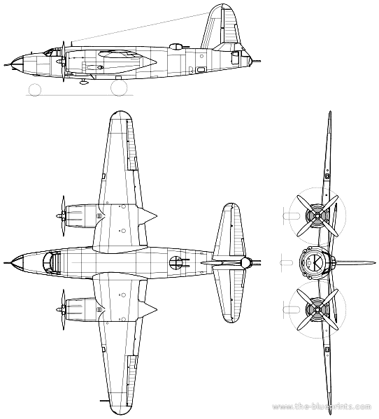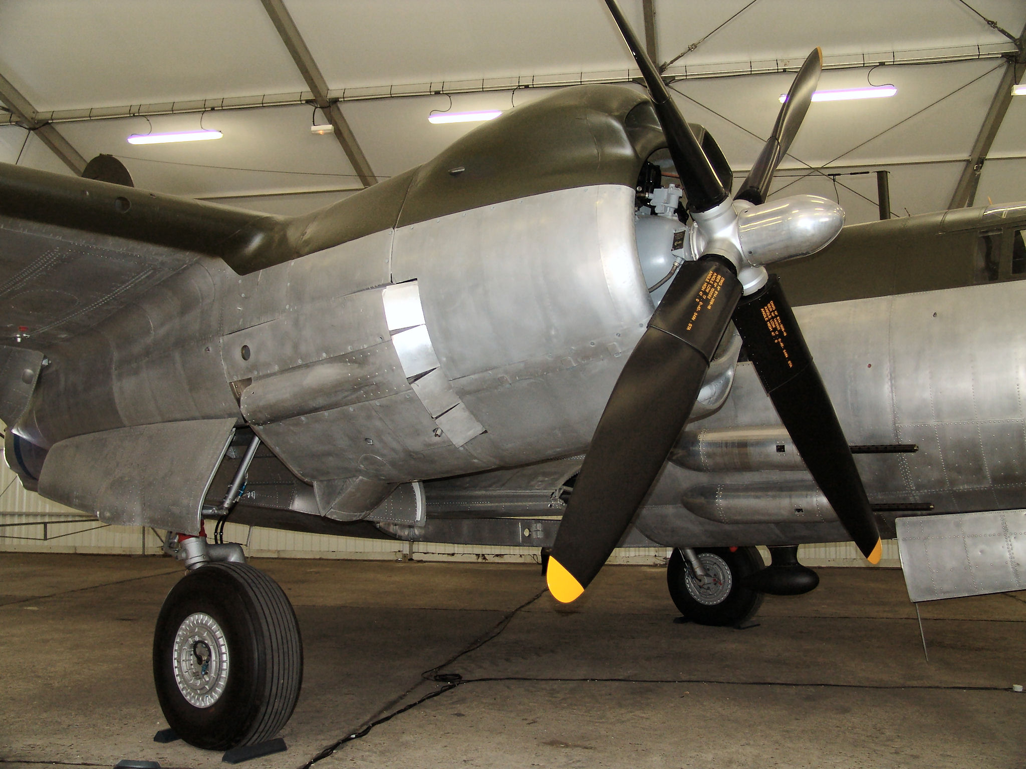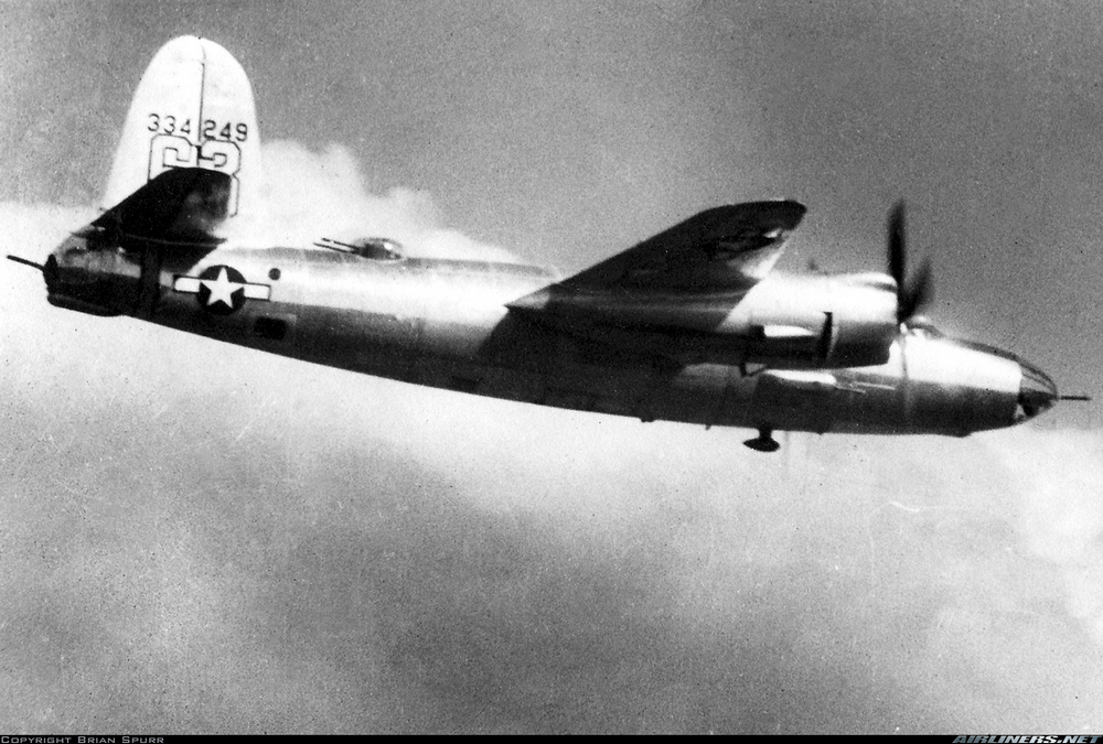 2 soutes à bombes étaient installées au milieu du fuselage, capables de transporter 2'600 kg de bombes, bien qu’en pratique une telle charge de bombes réduisît trop la portée, et la soute à bombes arrière était généralement équipée de réservoirs de carburant supplémentaires au lieu de bombes. L’avion était propulsé par 2 moteurs radiaux Pratt & Whitney R-2800 Double Wasp dans des nacelles suspendues sous l’aile, entraînant des hélices à 4 pales. Les moteurs ont été fabriqués à l’usine Ford Dearborn Engine à Dearborn, Michigan. Les ailes étaient de faible allongement et relativement petites en surface pour un avion de son poids, donnant les hautes performances requises, mais résultant également en une charge alaire de 53 lb/sq ft (260 kg/m2) pour les versions initiales, ce qui était à l’époque le plus élevé de tous les avions acceptés pour le service par l’USAAC, jusqu’à l’introduction du Boeing B-29 Superfortress, avec l’étonnante charge alaire de 69,12 lb/sq ft (337,5 kg/m2) (bien que les 2 soient considérés comme légèrement chargés par rapport à la norme des avions de combat de la décennie suivante).