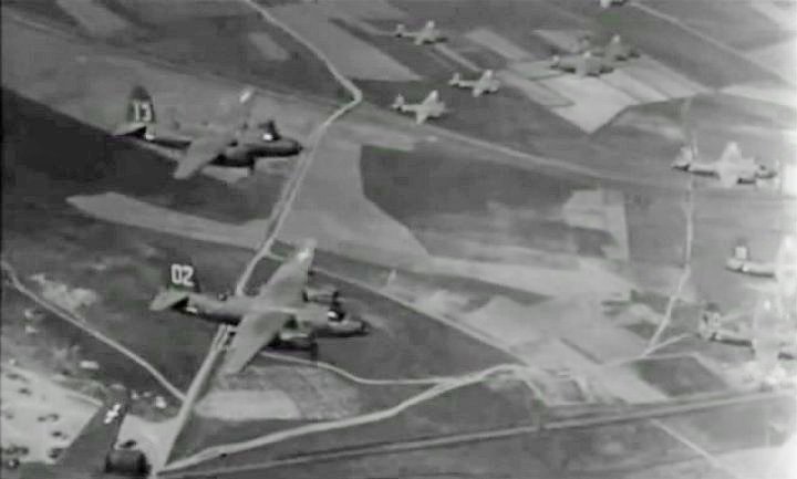 des Martin B-26 Marauder, d’après une séquence d’archive vue au tout début du film.