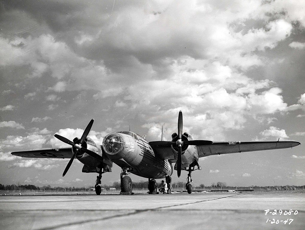 un Martin B-26B Marauder. Un modèle qui a été rapidement abandonné après la fin de la Seconde Guerre mondiale. Surprenant de le trouver dans un film 9 ans plus tard.