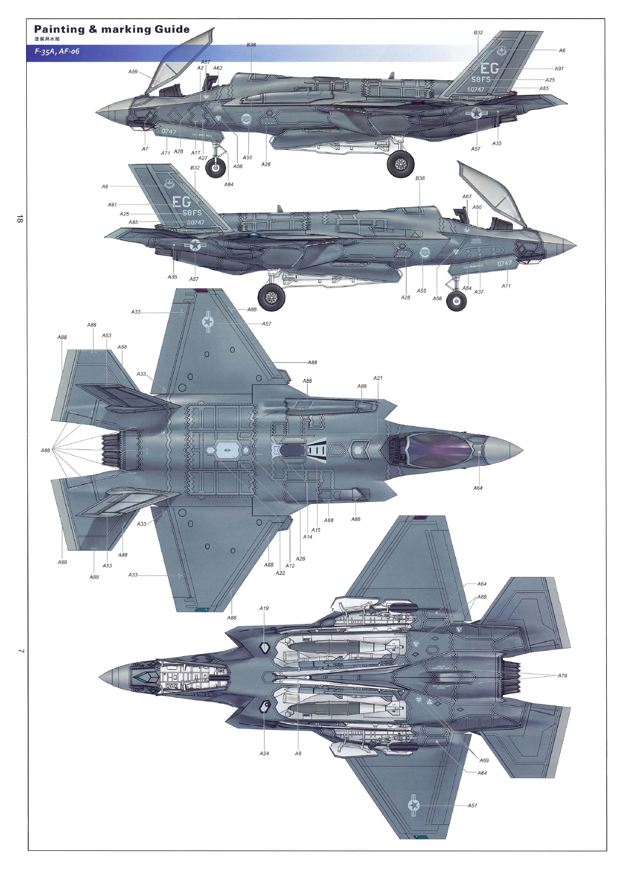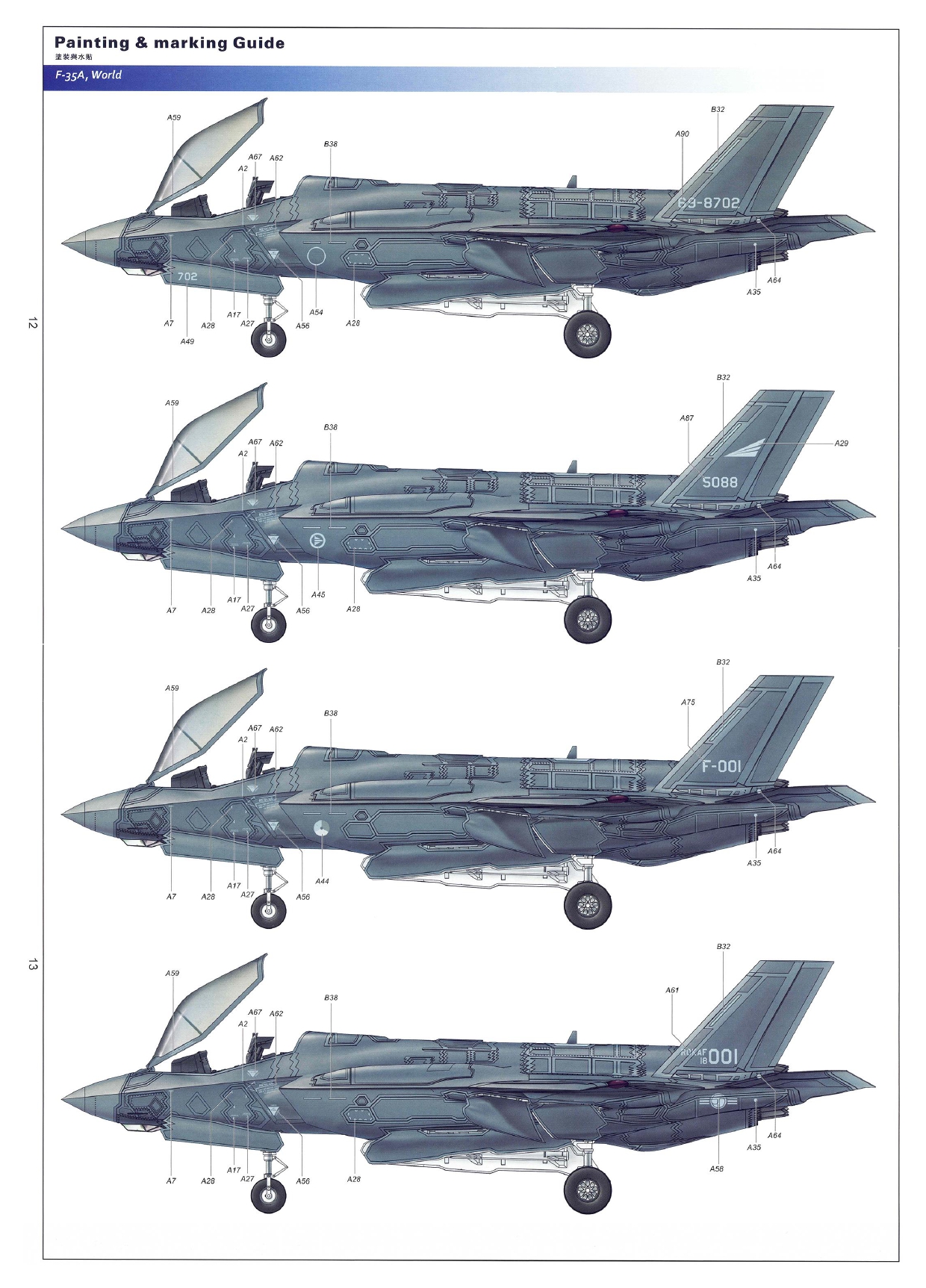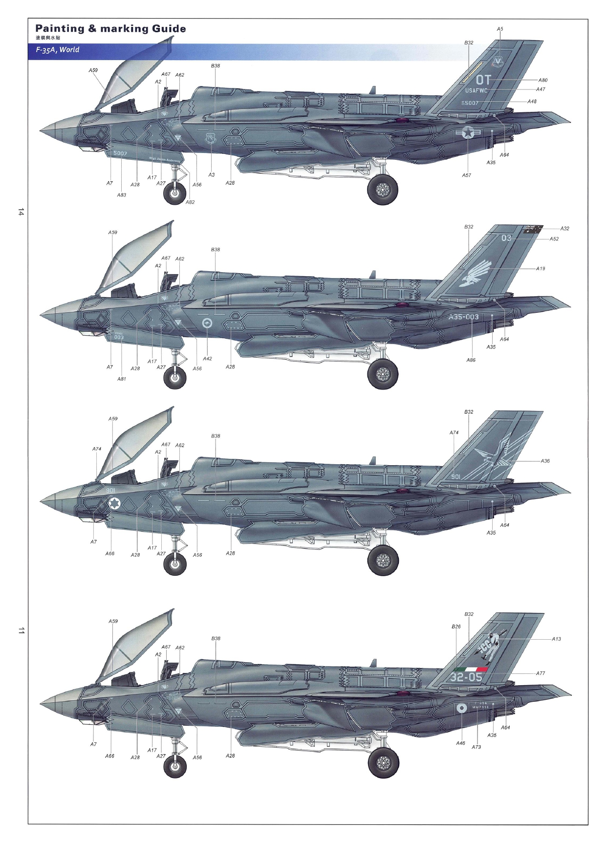 Modèle Kitty Hawk au 1/48 F - 35 B & F - 35 A version renouvellement 2 points d'information. Les deux sont livrés avec une nouvelle feuille de décalcomanies. Il y a 12 nouveaux marquages inclus.