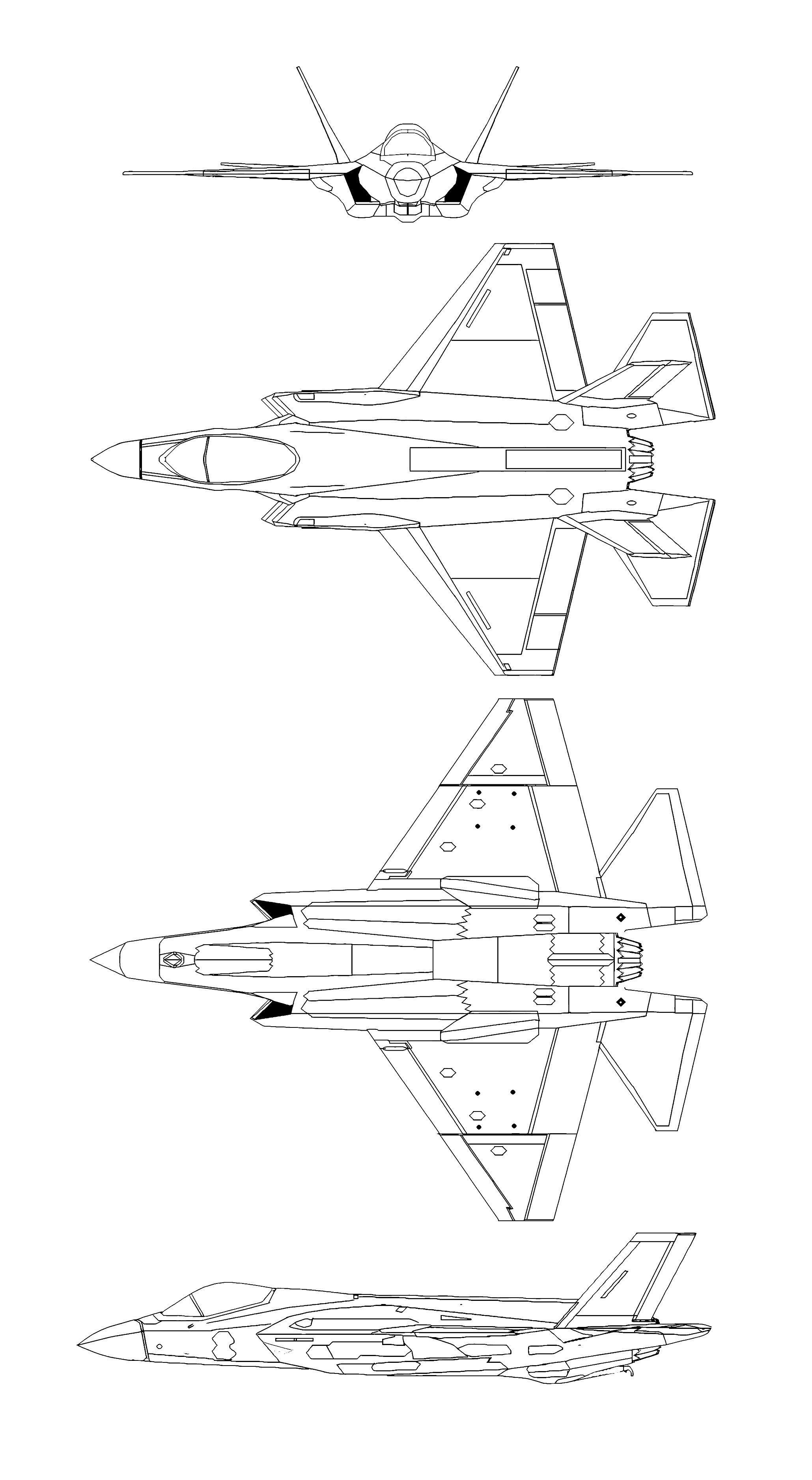 La stratégie commune de Lockheed Martin consistait à remplacer le SDLF de la variante STOVL par un réservoir de carburant et la tuyère pivotante arrière par une tuyère de vectorisation de poussée bidimensionnelle pour la variante CTOL. Le fonctionnement STOVL est rendu possible grâce à un système de propulsion LiftFan breveté entraîné par l’arbre. Cela permettrait une configuration aérodynamique identique pour les variantes STOVL et CTOL, tandis que la variante CV aurait une aile élargie pour réduire la vitesse d’atterrissage pour la récupération du porte-avions. En raison des caractéristiques aérodynamiques et des exigences de récupération du porte-avions de la fusion JAST, la configuration de conception s’est statuée sur une queue conventionnelle par rapport à la conception canard delta de l’ASTOVL/CALF ; notamment, la configuration conventionnelle de la queue offre un risque beaucoup plus faible pour la récupération du porteur par rapport à la configuration canard ASTOVL/CALF, qui a été conçue sans tenir compte de la compatibilité avec le porteur. Cela a permis une plus grande similitude entre les 3 variantes, car l’objectif de communalité était important à ce stade de la conception. Les prototypes de Lockheed Martin consisteraient en le X-35A pour la démonstration du CTOL avant de le convertir en X-35B pour la démonstration du STOVL et du X-35C à aile plus grande pour la démonstration de la compatibilité CV.