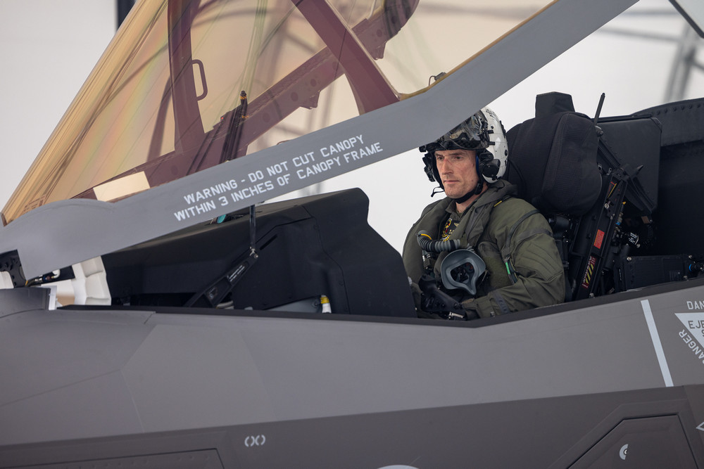 un la Première ministre Berit Moberg. Ørland flystasjon (Ørland Main Air Station (IATA : OLA, OACI : ENOL)). Cellule Lockheed Martin F-35A Lightning II AM-28 (no18-5389) de Luftforsvaret (Royal Norwegian Air Force /RNoAF), 332 skv (332 skvadron / 332 Squadron)