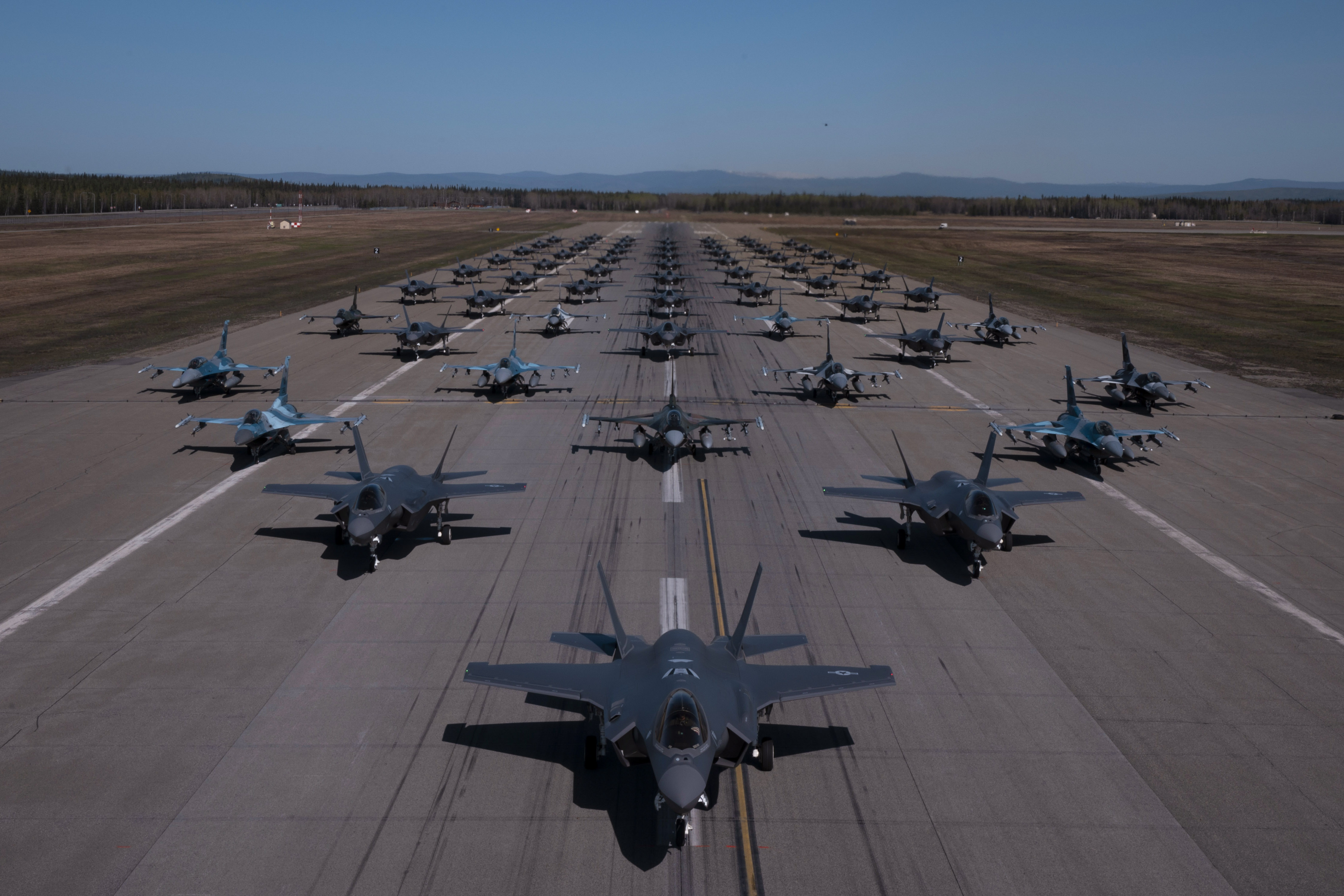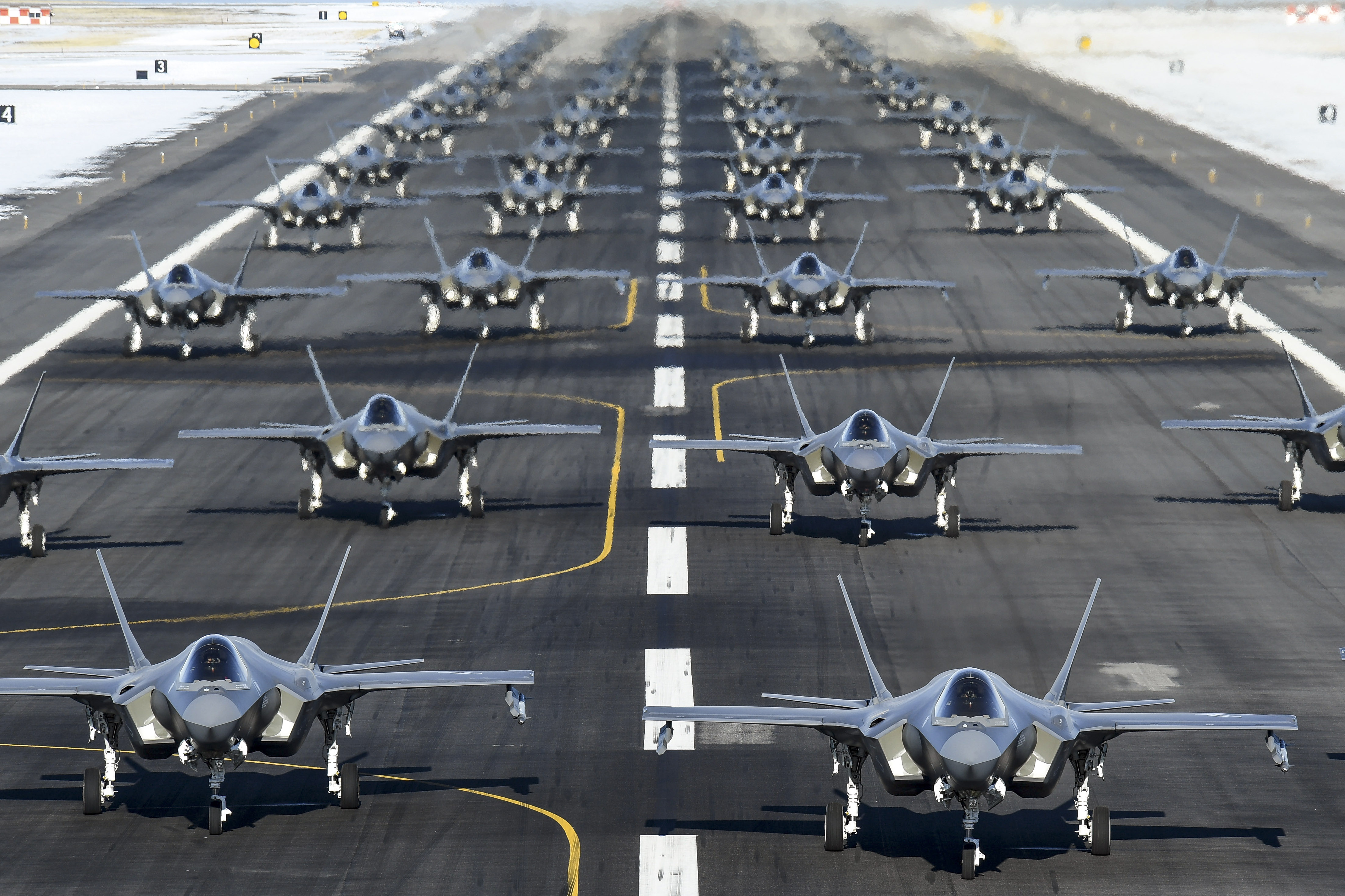 Le F-35 est une famille de chasseurs monomoteurs, supersoniques et furtifs multirôles. Le F-35, 2e chasseur de 5e génération à entrer en service aux États-Unis et premier chasseur furtif supersonique opérationnel STOVL, le F-35 met l’accent sur les faibles observables, l’avionique avancée et la fusion de capteurs qui permettent un haut niveau de connaissance de la situation et une létalité à longue portée ; l’USAF considère l’avion comme son principal chasseur d’attaque pour mener des missions de suppression de la défense aérienne ennemie (SEAD), en raison des capteurs et des systèmes de mission avancés.