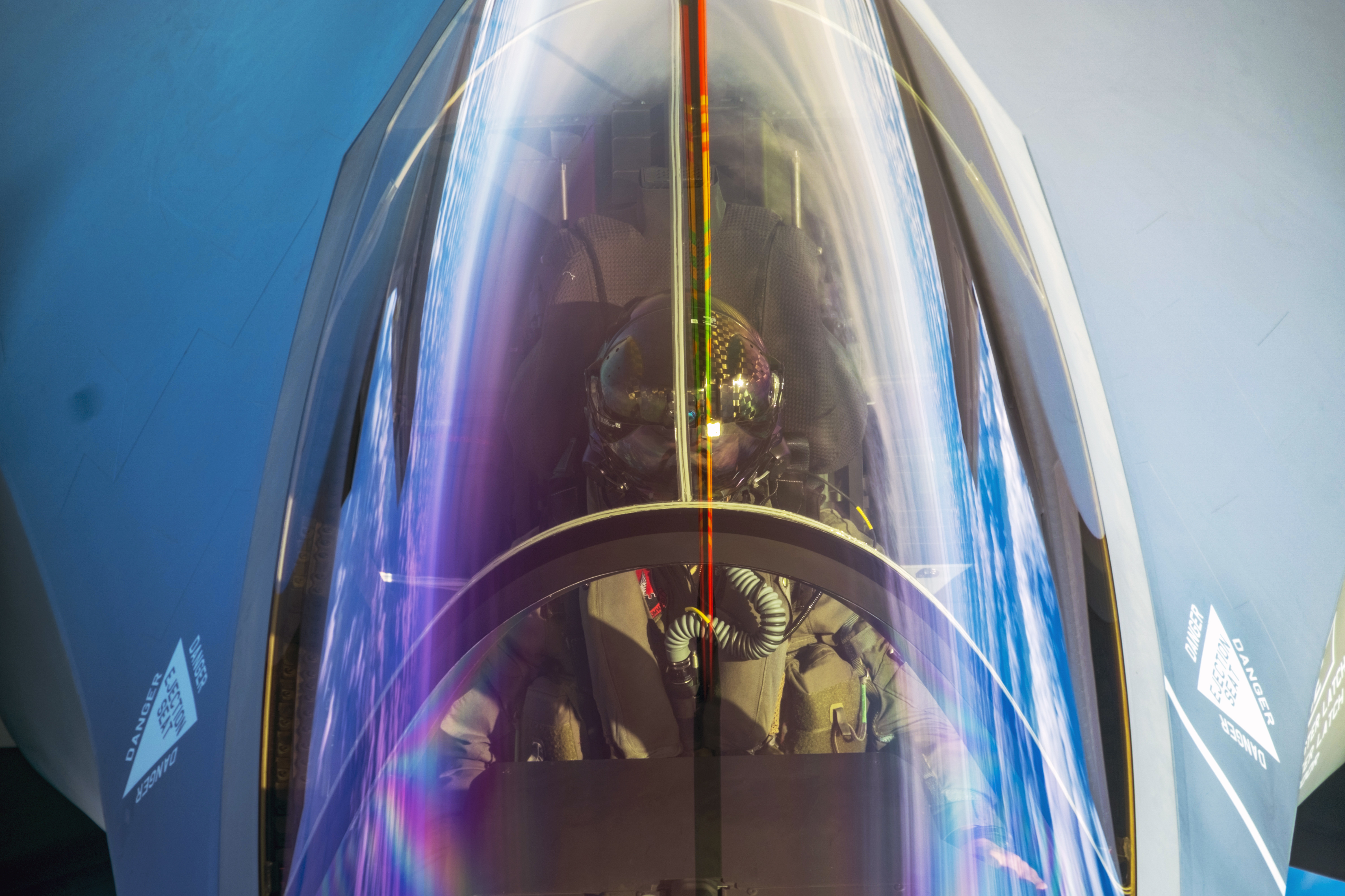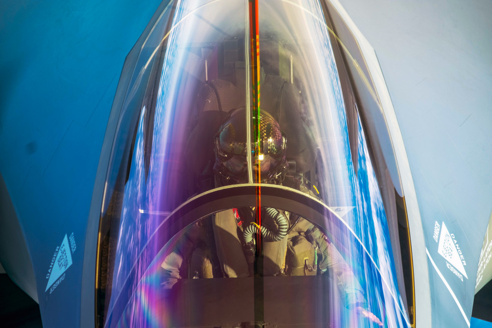 Le poste de pilotage en verre a été conçu pour donner au pilote une bonne connaissance de la situation. L’écran principal est un écran tactile panoramique de 20x8 pouces (50x20 cm), qui affiche les instruments de vol, la gestion des magasins, les informations CNI et les mises en garde et avertissements intégrés. Le pilote peut personnaliser la disposition des informations. Sous l’écran principal se trouve un écran de veille plus petit. [148] Le poste de pilotage est équipé d’un système de reconnaissance vocale mis au point par Adacel. Le F-35 n’est pas doté d’un affichage tête haute ; au lieu de cela, les informations de vol et de combat sont affichées sur la visière du casque du pilote dans un système d’affichage monté sur casque (HMDS). L’auvent teinté d’une seule pièce est articulé à l’avant et a un cadre interne pour plus de résistance structurelle. Le siège éjectable Martin-Baker US16E est lancé par un système de double catapulte logé sur des rails latéraux. Il y a un manche du côté droit et un système d’accélérateur et de manette. Pour le maintien en vie, un système de génération d’oxygène embarqué (OBOGS) est installé et alimenté par l’Integrated Power Package (IPP), avec une bouteille d’oxygène auxiliaire et un système d’oxygène de secours en cas d’urgence.