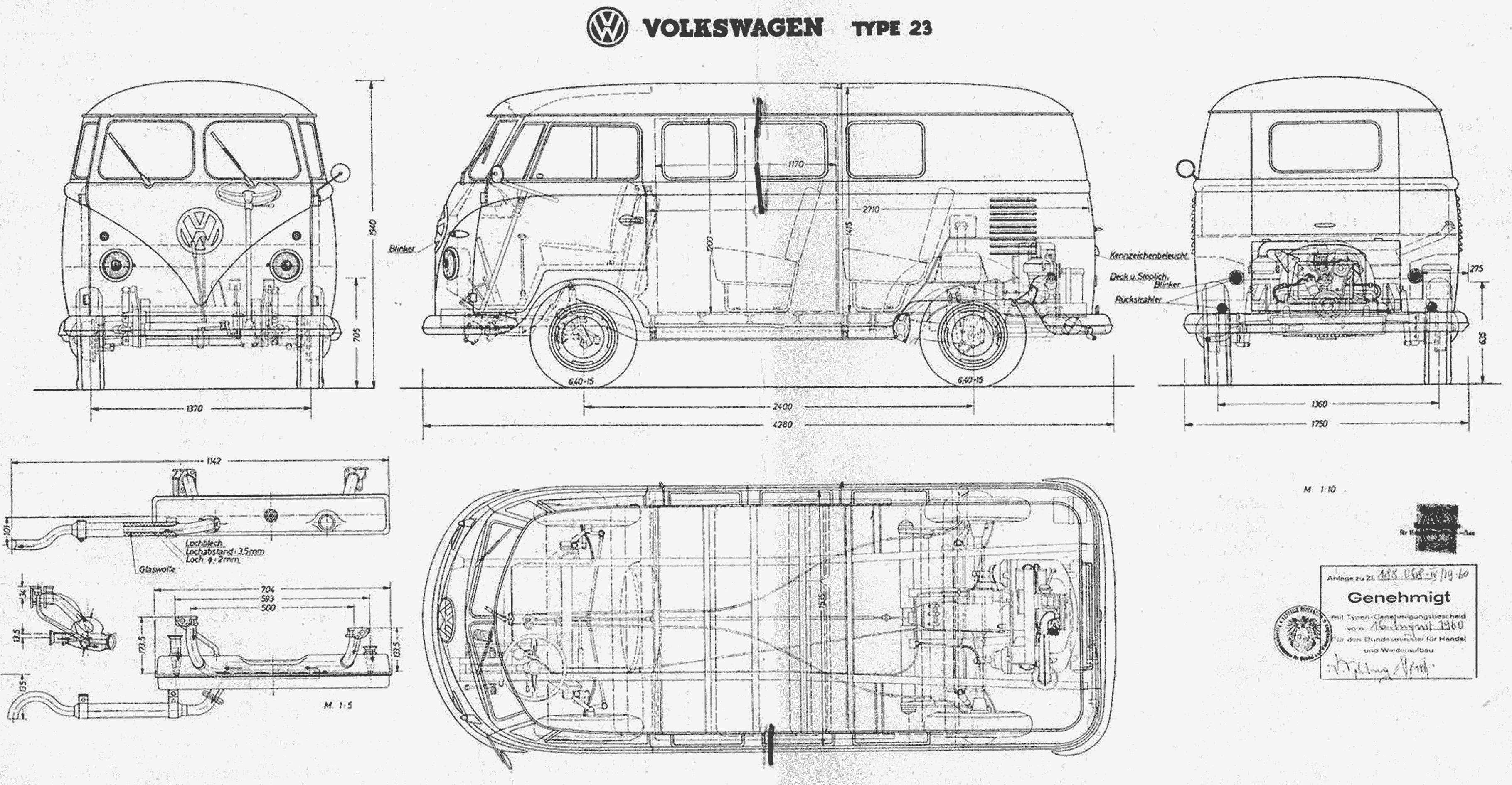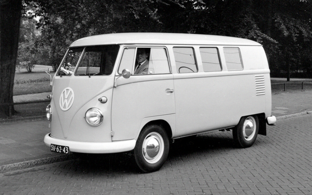 Lors d’une visite à Wolfsburg au début de 1947, le futur importateur général néerlandais Ben Pon a vu les camions à plate-forme et a proposé une ramification commerciale pour le marché néerlandais, qui serait basée sur le châssis de la VW Coccinelle. Cependant, la planification a échoué en raison des autorités néerlandaises, qui ne voulaient pas délivrer de permis de conduire pour un véhicule dont le conducteur est assis derrière le chargement. Pon rencontra le colonel Charles Radclyffe de la division du commerce et de l’industrie de l’administration militaire britannique à Minden le 23 avril 1947. Lors de la réunion, Pon a réalisé le croquis d’un fourgon fermé pour une charge utile de 750 kg, dans lequel le conducteur devait s’asseoir à l’avant et le moteur devait être installé à l’arrière sous le plancher de la zone de chargement. L’esquisse se trouve actuellement au Rijksmuseum.
