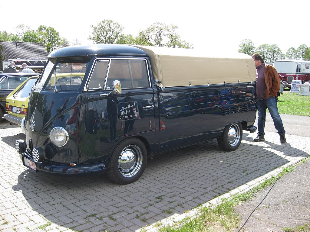 À partir de 1951, des camions à plateau ont été proposés en plus des fourgons à panneaux, initialement avec une cabine à 3 places. La zone de chargement était continue à la hauteur du compartiment moteur. Les parois latérales pouvaient être rabattues, tout comme le hayon. Entre le compartiment moteur et la cabine du conducteur, il y avait un compartiment de chargement protégé sous la zone de chargement, que l’on pouvait atteindre derrière un rabat latéral. Le plateau pouvait être recouvert d’une bâche et d’un arc. D’un point de vue commercial, le camion à plateau a été un succès et ne s’est classé que légèrement en dessous du fourgon en termes de chiffres de vente. Le camion à plateau était également disponible avec un plateau agrandi en construction en bois. En 1955, le camion à plateau coûtait 5'725 DM.