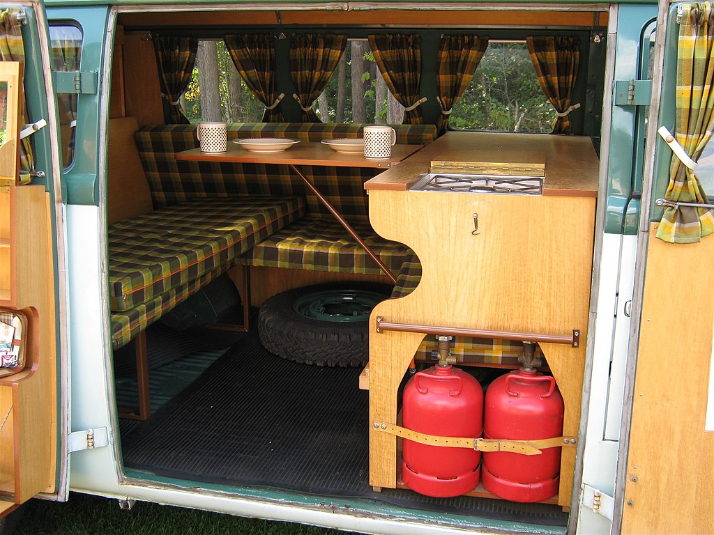 Le constructeur automobile Westfalia a proposé une boîte de camping pour le T1 à partir de 1950. Cela devrait équiper le bus pour un week-end sur la route. La boîte contenait une cuisinière à gaz, de la place pour 2 bouteilles de gaz et une table pliante. Une armoire supplémentaire a été prévue pour l’espace au-dessus du compartiment moteur. Des étagères pouvaient être accrochées aux doubles portes. Toutes les pièces ont été conçues pour être amovibles afin d’offrir la combinaison d’un outil de travail et d’un véhicule récréatif.
