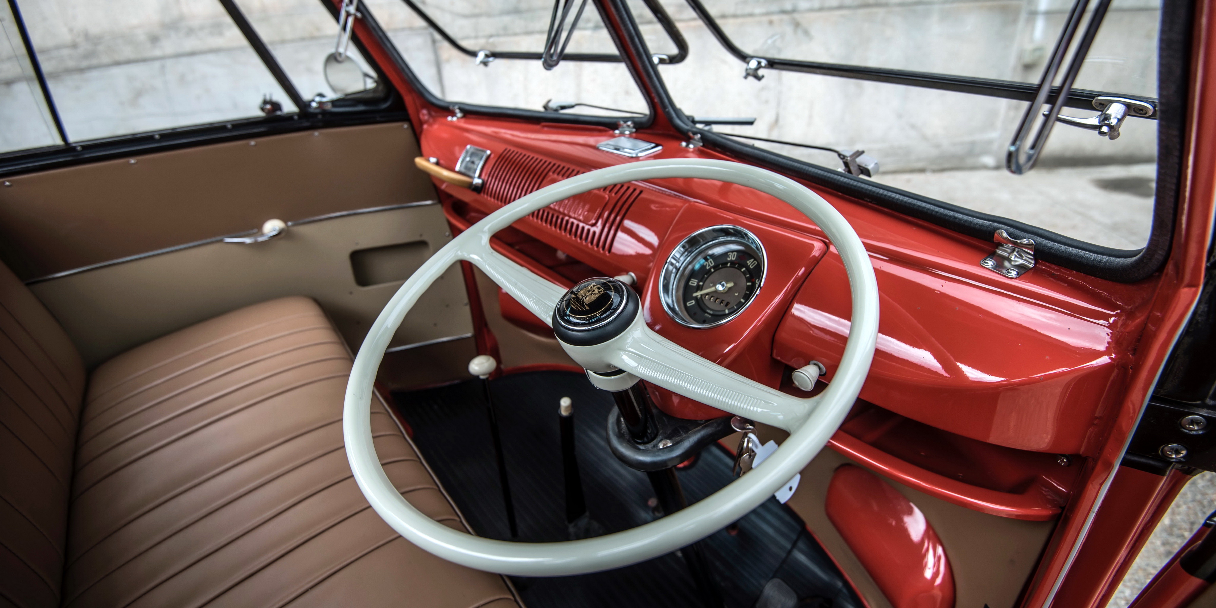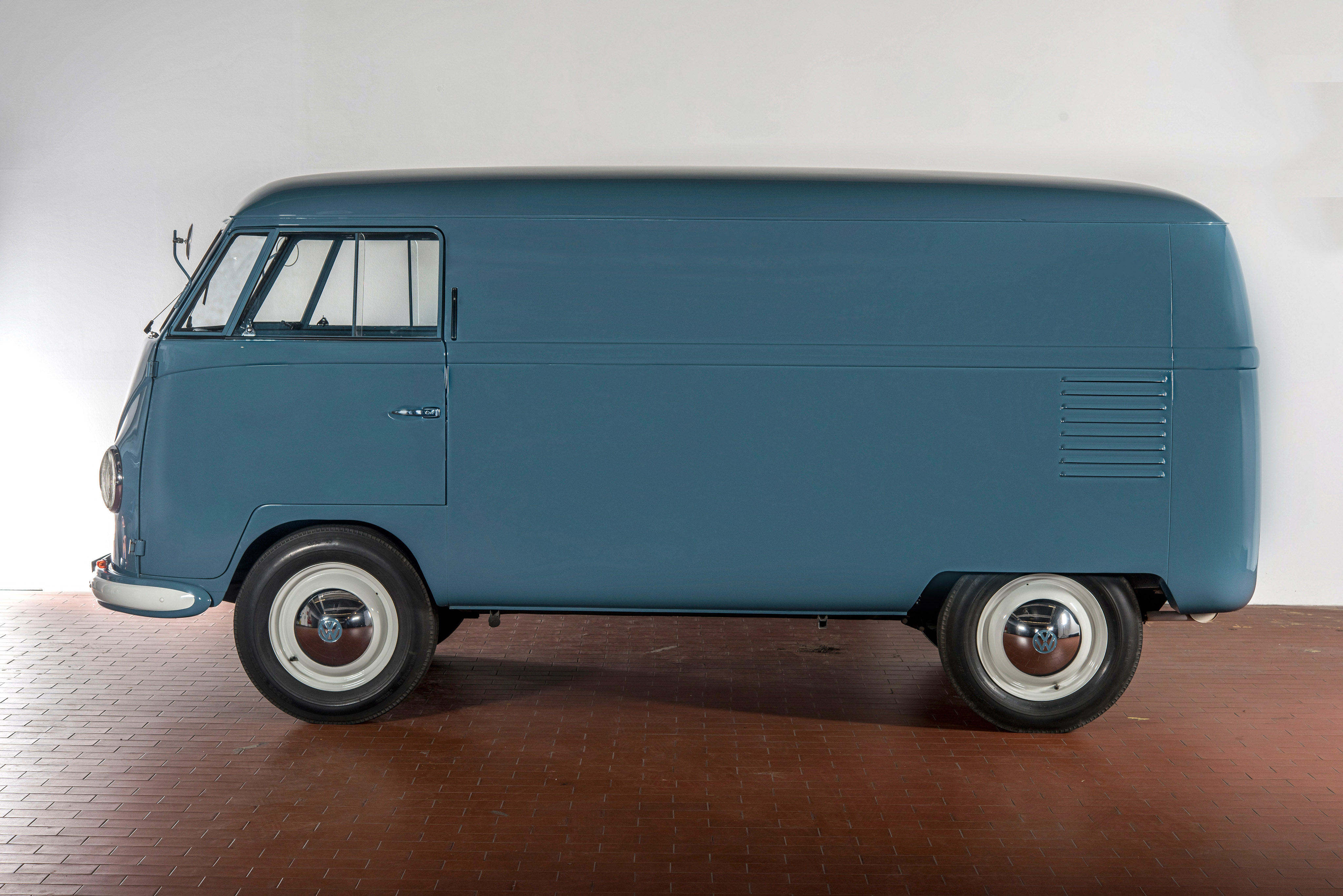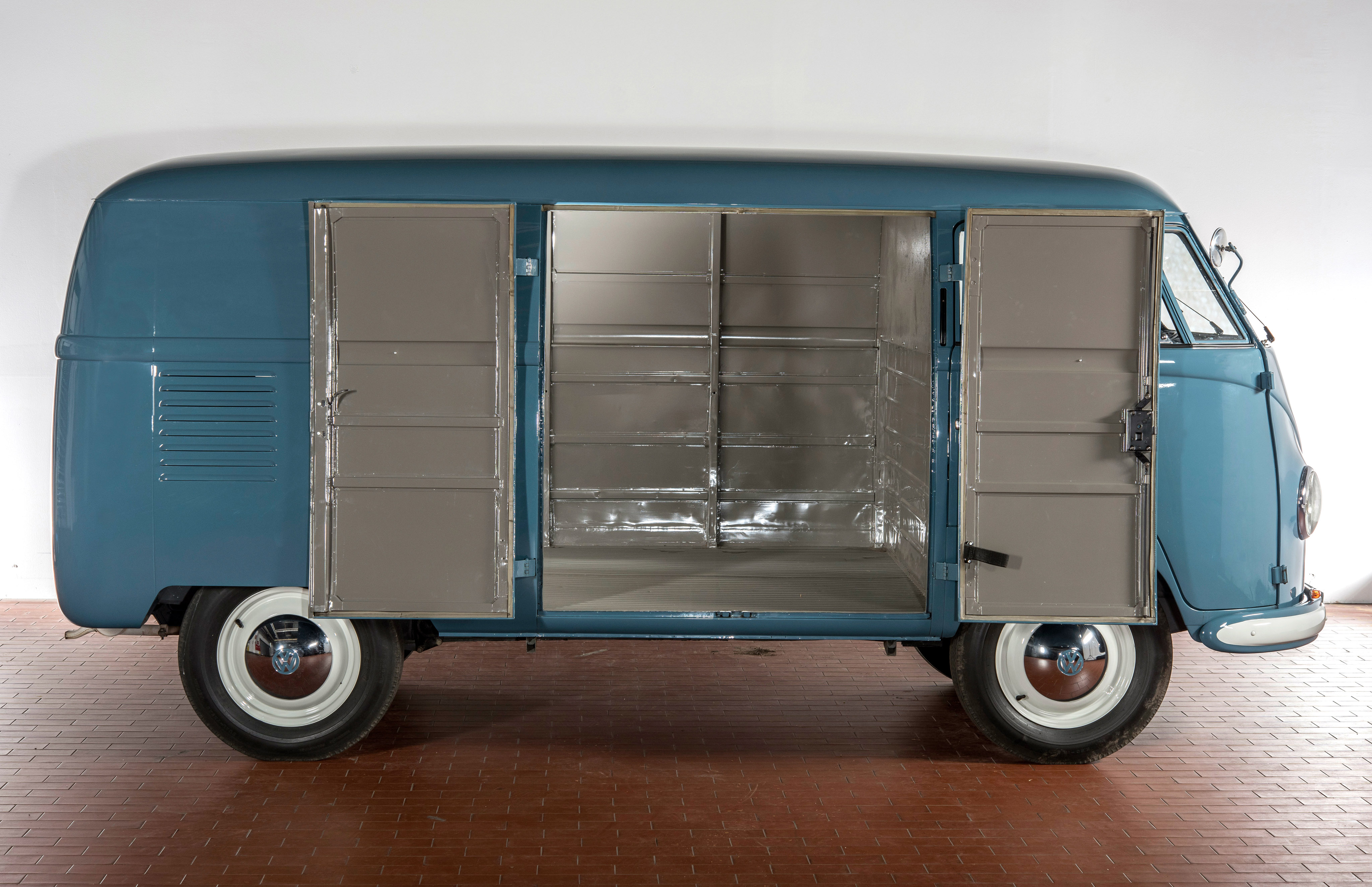 La carrosserie a également subi des changements au fil du temps. La plupart des innovations sont arrivées en 1963 : le hayon a été élargi et a obtenu une fenêtre plus grande. Au lieu de la porte de soute à 2 vantaux, une porte coulissante pouvait être commandée, et avec un châssis renforcé, le VW Transporteur était disponible avec une charge utile d’une tonne.