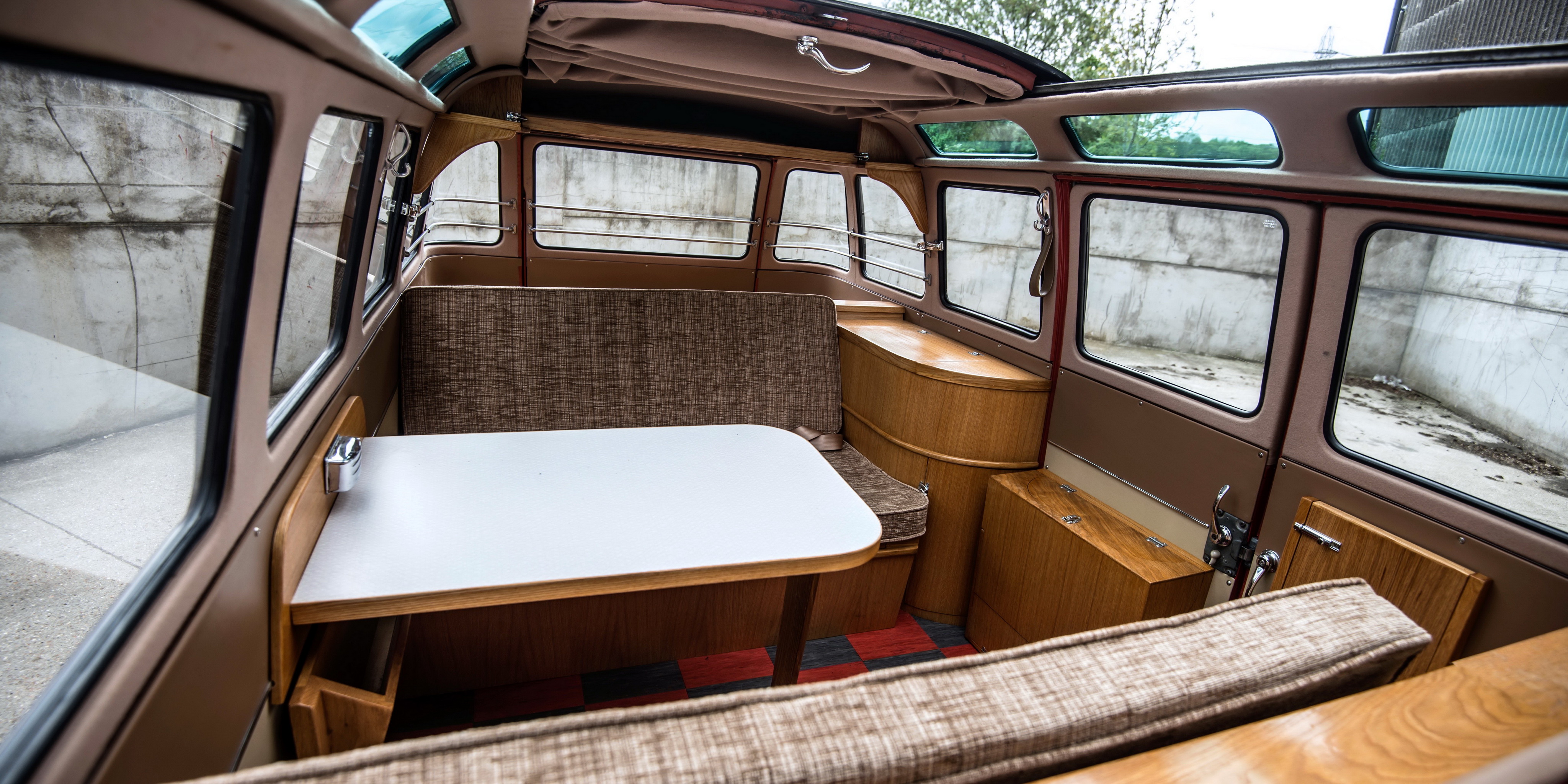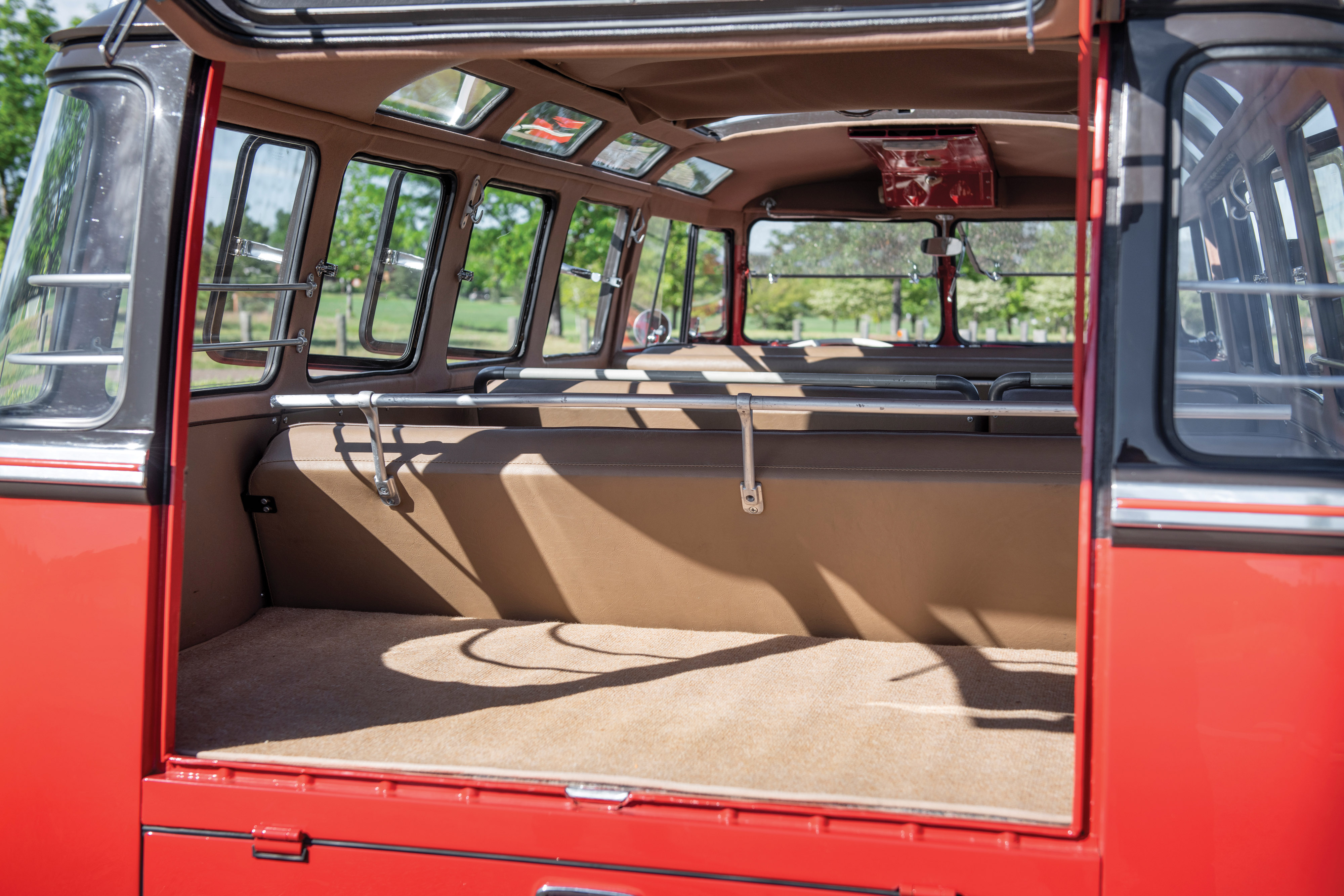 L’autobus de 8 à 12 places avait 23 fenêtres. Jusqu’au changement de modèle en 1955, un hayon à l’intérieur n’était disponible qu’en tant qu’équipement supplémentaire moyennant un supplément. Les 2 fenêtres d’angle arrière et les 8 fenêtres de toit étaient initialement en plexiglas de 4 mm d’épaisseur. La lunette arrière était plus grande que sur les autres T1. Le Samba avait un tableau de bord de la largeur du véhicule, qui a été produit en série en 1955 sous une forme modifiée. L’accès à la rangée arrière était facilité par un dossier rabattable du siège droit de la rangée du milieu. À partir d’août 1963, les vitres d’angle arrière ont cédé la place à un hayon modifié avec une fenêtre plus grande. Dans les modèles avec sièges avant individuels, la roue de secours était montée sur la gauche au-dessus du compartiment moteur.